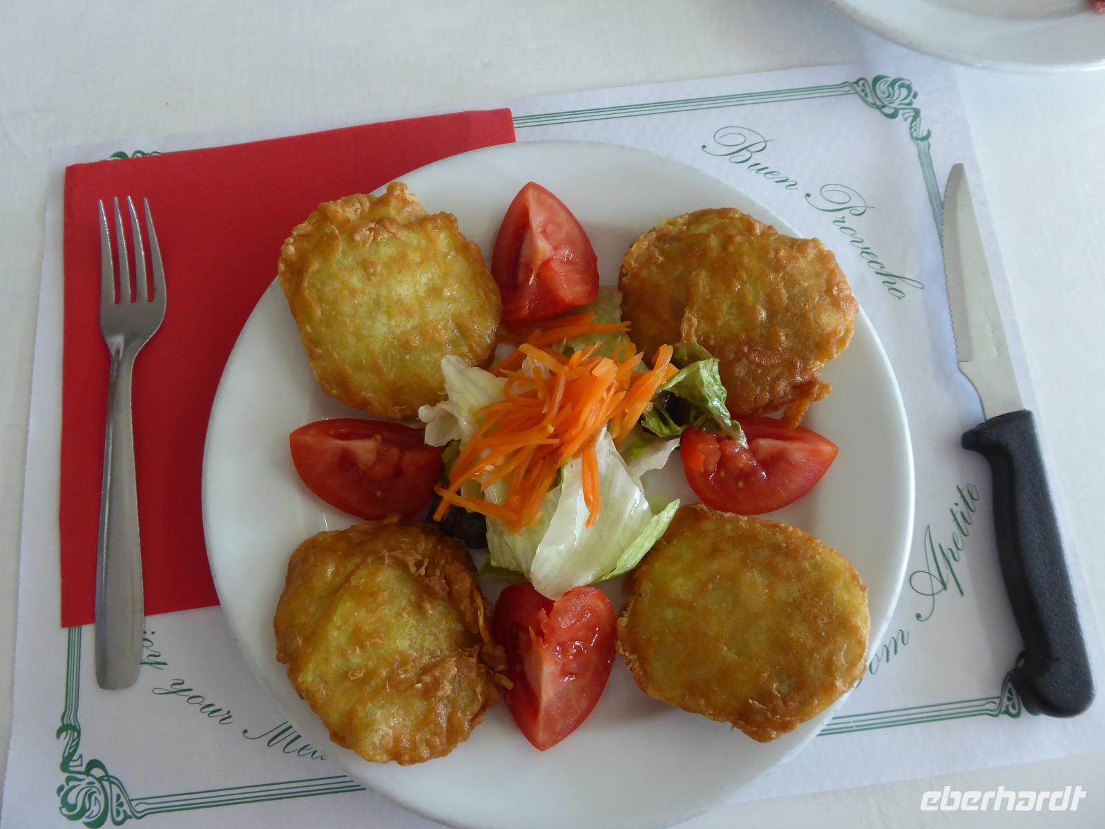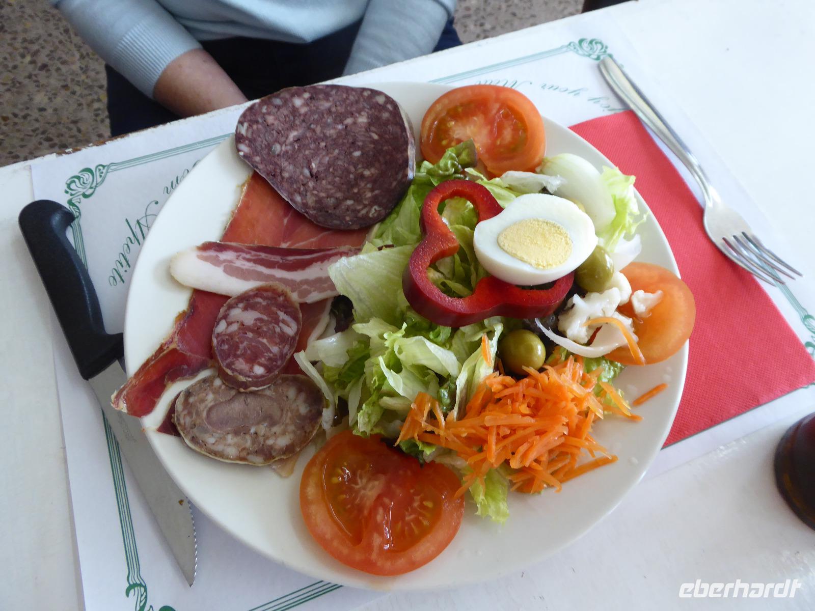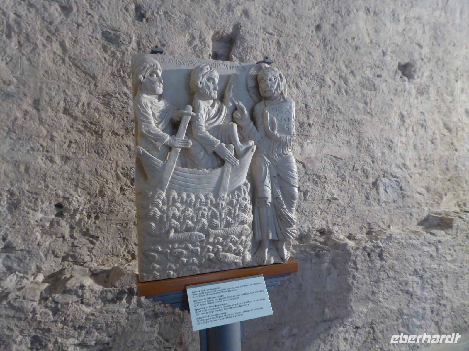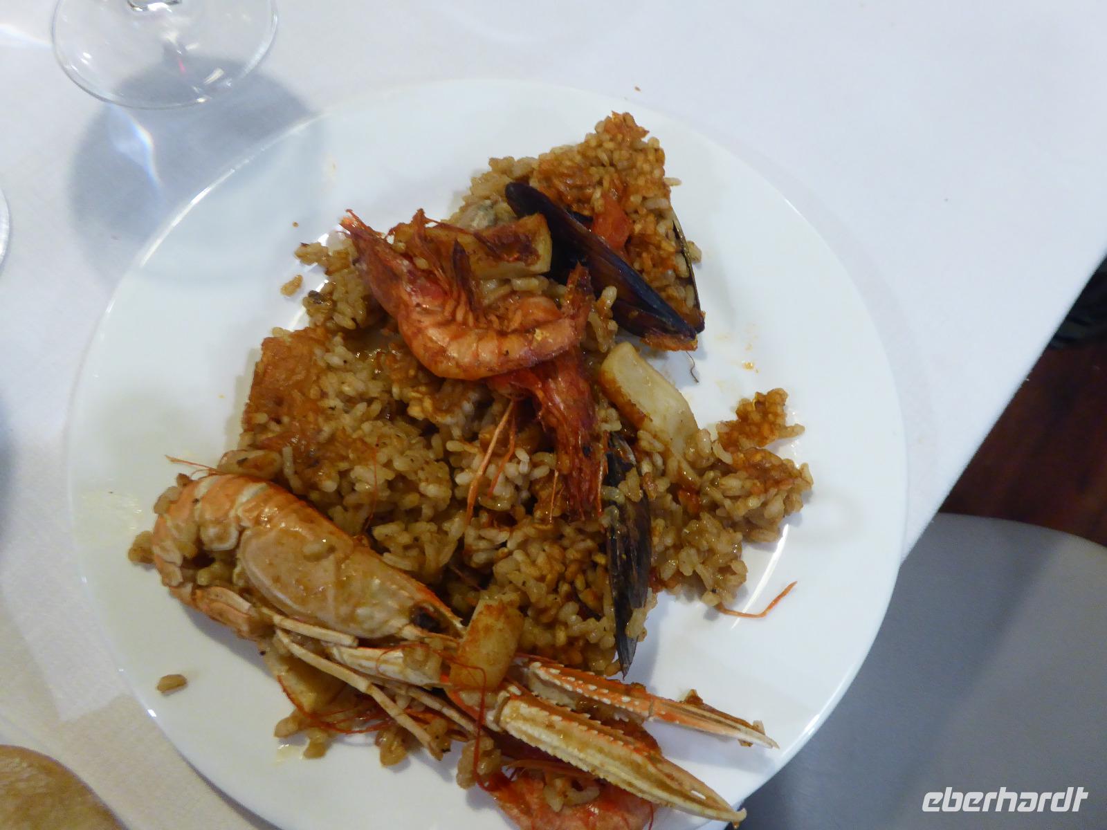 Am letzten Tag gibt es noch ein Sahnehäubchen auf das bisher schon absolvierte Programm. Wir fahren in das ehemalige Benediktinerkloster Sant Pere. Der Himmel ist blau mit Schäfchenwolken und die Sonne lacht. Fast eineinhalb Stunden fahren wir durch die beeindruckende Landschaft des Naturparks Cap de Creus. Nach einer Stunde Autobahn schraubt sich unser Bus die Serpentinen hoch bis auf 600 Meter. Vom Parkplatz ist es etwa noch einen Kilometer zu laufen. Das macht aber nichts, denn die Aussicht ist einfach zauberhaft. Lorenzo weiß natürlich auch hier wieder Spannendes zu erzählen. Warum wohl wurde in dieser Gegend ein so großes Kloster gebaut? Das Wahrscheinliche ist, dass Mönche ca. im Jahr 600 n.Chr. über das Meer aus Rom flohen, um die Gebeine des Heiligen Petrus in Sicherheit zu bringen und hier landeten. Archäologisch ist belegt, dass sich hier um diese Zeit ein bedeutendes Anwesen befand. Die ersten schriftlichen Nachweise gibt es aus dem 10. Jahrhundert. Lorenzo führt uns durch die gewaltigen Mauern, in denen man sich fast verlaufen könnte. Überall sind steinerne Bögen, Kreuzgänge und Kuppeln zu bewundern. Wie haben die das damals bloß gemacht? Am Ende der Besichtigung sehen wir einen kleinen Film über die Geschichte des Klosters und hier wird klar, es wurde Jahrhunderte hier gebaut. Dennoch fielen das Kloster und damit auch seine Bewohner der Geschichte zum Opfer. Wie so oft vertrieben auch hier Hungersnöte, Epidemien und vor allem kriegerische Auseinandersetzungen, Piratenüberfälle aber auch Politik, die Bewohner. Heute ist das Kloster nur noch eine Ruine, wenn auch eine liebevoll gepflegte. Nach einem zweistündigen Rundgang verlassen wir den Ort und fahren zurück zum Hotel. Der Nachmittag steht ganz im Zeichen von Sonne, Strand und Meer. Im Restaurant L'Antic nehmen wir unser Abschiedsessen ein. Wie der gibt es Tappas - Salat, Miesmuscheln, Kroketten und rohen Schinken, eine große Portion Reise mit Meeresfrüchten und zum Nachtisch Mousse Chocolat oder Zitronenschaum. Wein, Wasser und Bier gibt es je nach Geschmack dazu.