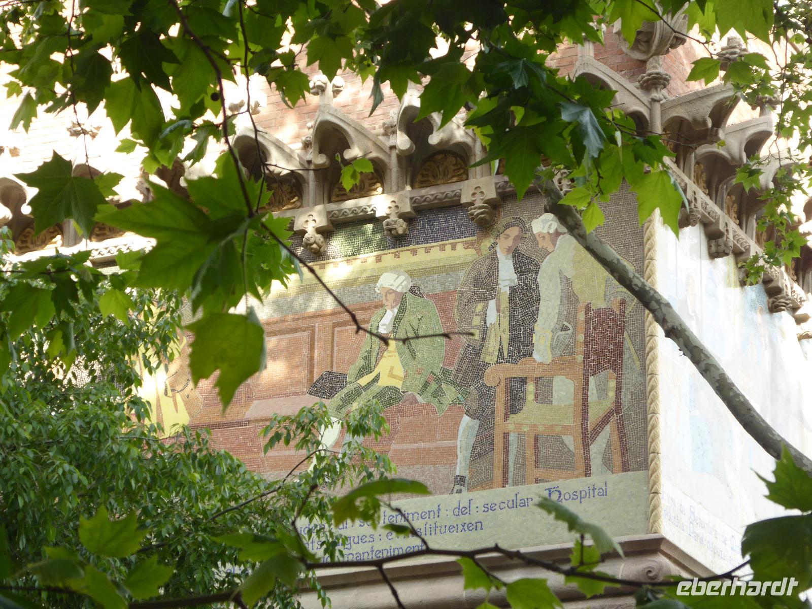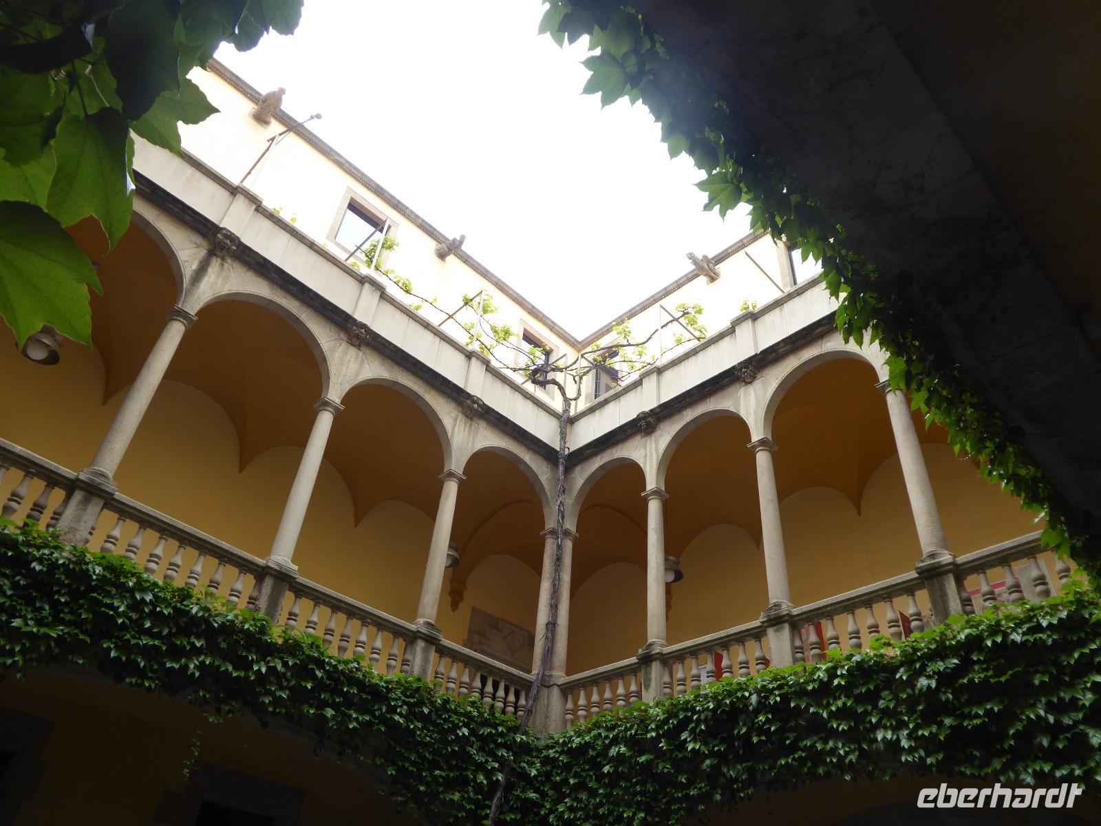 Wieder starten wir um Neun. Da das Hospital de la Santa Creu i Sant Pau gestern geschlossen hatte, steht es heute als erstes auf unserem Programm. Wir fahren ein paar Stationen mit der U-Bahn. Bevor wir jedoch in diese einsteigen können, müssen wir erst einmal ein Stück laufen. Das Hospital wurde von 1902 bis 1930 erbaut. Es war zu damaliger Zeit eine Stadt in einer Stadt. 48 Pavillons gab es für verschiedene medizinische Abteilungen und eine weitläufige Gartenanlage. Uns kommt es vor wie ein Märchenschloss. Heute steht das Hospital unter dem Schutz der UNESCO. Dass Antonio Gaudi hier seinen letzten Lebenstag verbrachte, wird allerdings nirgendwo erwähnt. Nun fahren wir in die Altstadt - in das Gotische Viertel. Wir besichtigen die Kathedrale. Dann kehren wir in eine Tapasbar ein und lassen es uns gut schmecken. Nach einer Stunde setzen wir unseren Rundgang fort. Wir kommen zum Stadtarchiv, in dem der Originalvertrag ausgestellt ist, den Christoph Columbus unterschrieben hat, bevor er nach Amerika aufbrach. Wir spazieren die berühmte La Ramblas entlang. An der Königin der Markthalle haben wir eine dreiviertel Stunde Zeit, diese für uns selbst zu erobern. Anschließend bewundern wir die Fassade des Palau Güell. Nun geht es zum letzten Highlight des Tages. Wir besuchen das Picasso-Museum. Obwohl die Füße platt sind und so mancher Rücken schmerzt, gelingt es Lorenzo, den Museumsbesuch durch das Erzählen von Geschichten, interessant zu gestalten. Noch einmal fahren wir mit der U-Bahn. Dann lassen wir den Abend hoch über Barcelona in einer exklusiven Tapasbar - Quinto Quinta, ausklingen.
