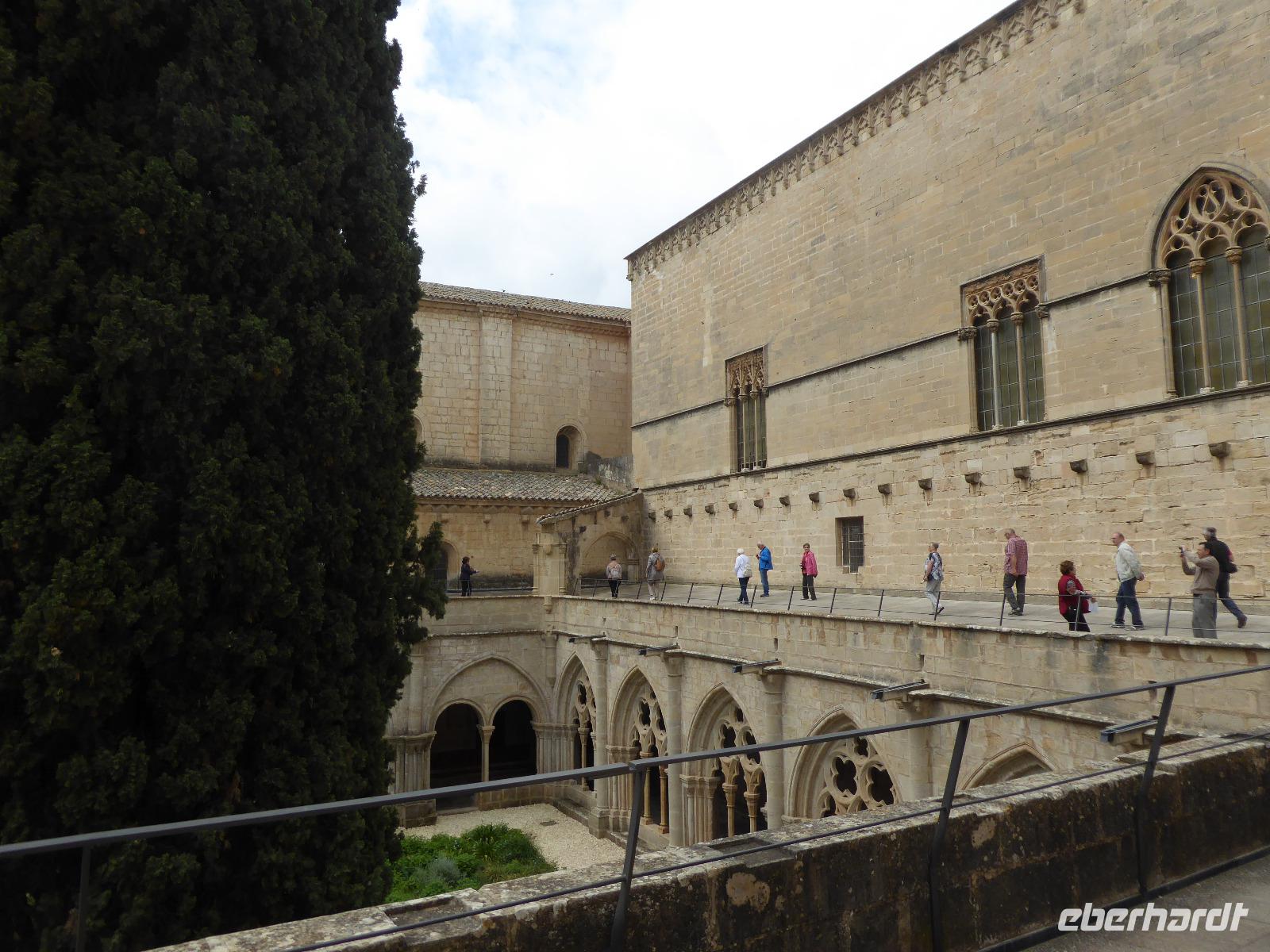 Wir verlassen Barcelona und fahren durch die grandiose Landschaft Kataloniens. Unser erstes Ziel ist das Kloster Poblet. Es gehört, wie zwei andere Klöster, zur Zisterzienserroute, die ein bedeutendes Kunst- und Kulturerbe dieser Region bewahrt. Das Kloster Poblet ist das größte der drei Klöster und als einziges noch bewohnt. Im Königreich Aragonien spielte Poblet eine bedeutende Rolle. Hier wurden Könige begraben. Es wurde 1150 gegründet und 1853 geschlossen. Erst 1940 kehrten wieder Mönche zurück. Und damit begann die Restaurierung der geschichtsträchtigen Anlage. Poblet ist das größte bewohnte Zisterzienserkloster Europas. Nach so viel Geschichte und Kultur ist es Zeit für die irdischen Dinge des Lebens. Wir besuchen die Sektkellerei Codorniu, wo wir nicht nur rasant mit einem Züglein durch die Keller sausen, sondern auch den köstlichen Tropfen probieren dürfen. Am Abend erreich wir Montserrat. Was für eine Stille. Außer uns scheinen alle die Anlage verlassen zu haben. Dass dem nicht so ist, erfahren wir mit den festgelegten Zeiten für das Abendessen und das Frühstück, bei denen wir uns hübsch einordnen müssen. Das macht aber nichts, denn der Besonderheit und der Abgeschiedenheit dieses Ortes tut das keinen Abbruch. Die Kirchenglocken läuten uns durch die Nacht. Viertel 1x, Halb 2x, dreiviertel 3x und Voll - je nachdem.