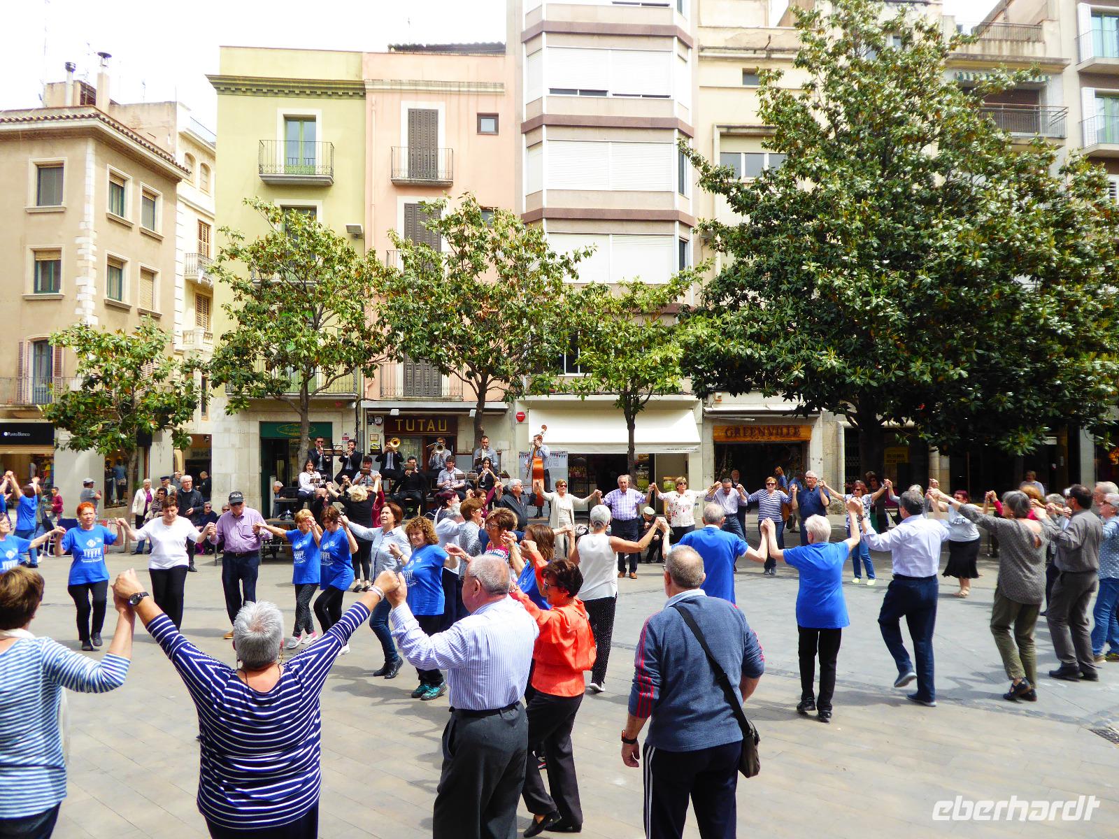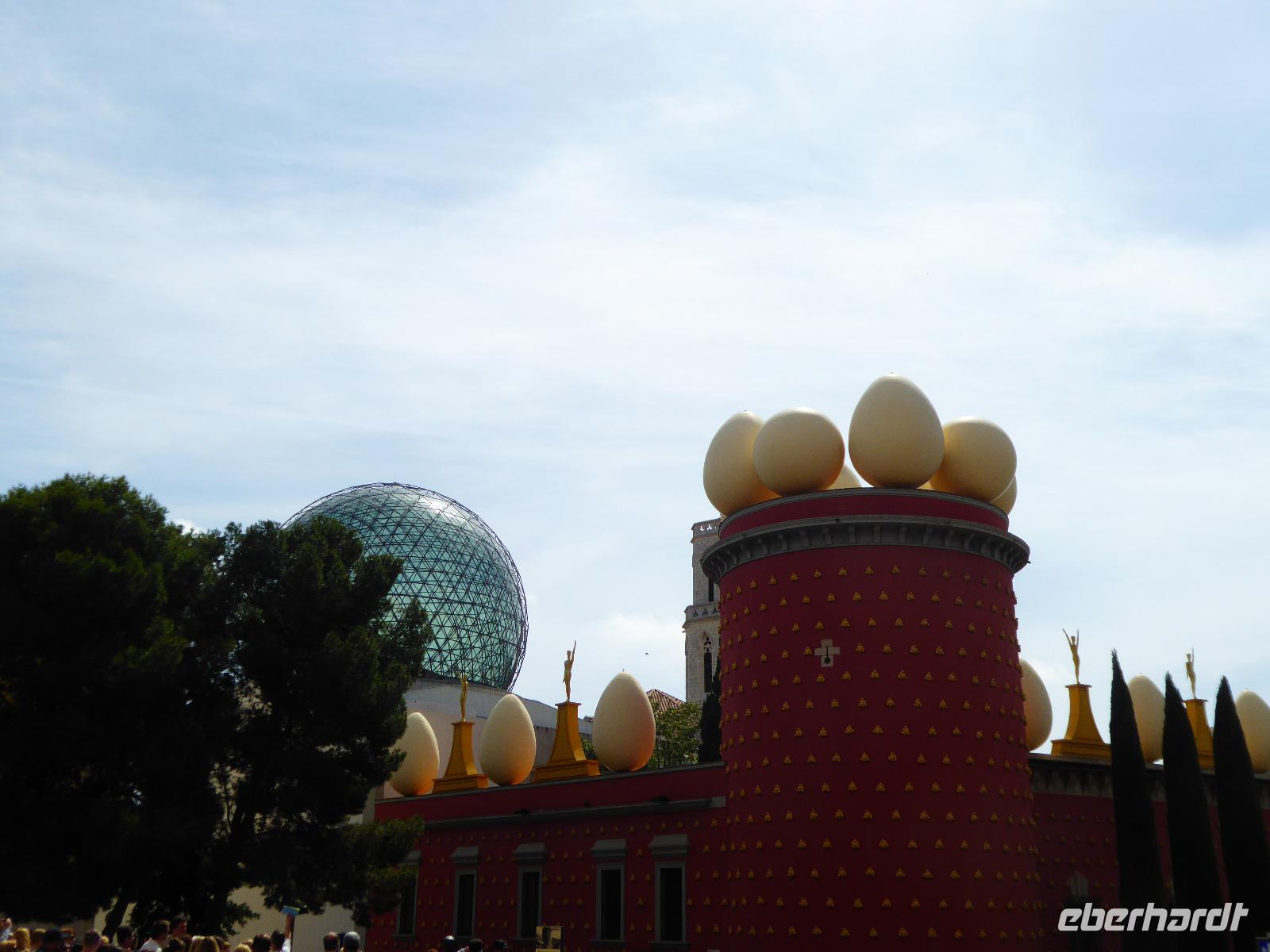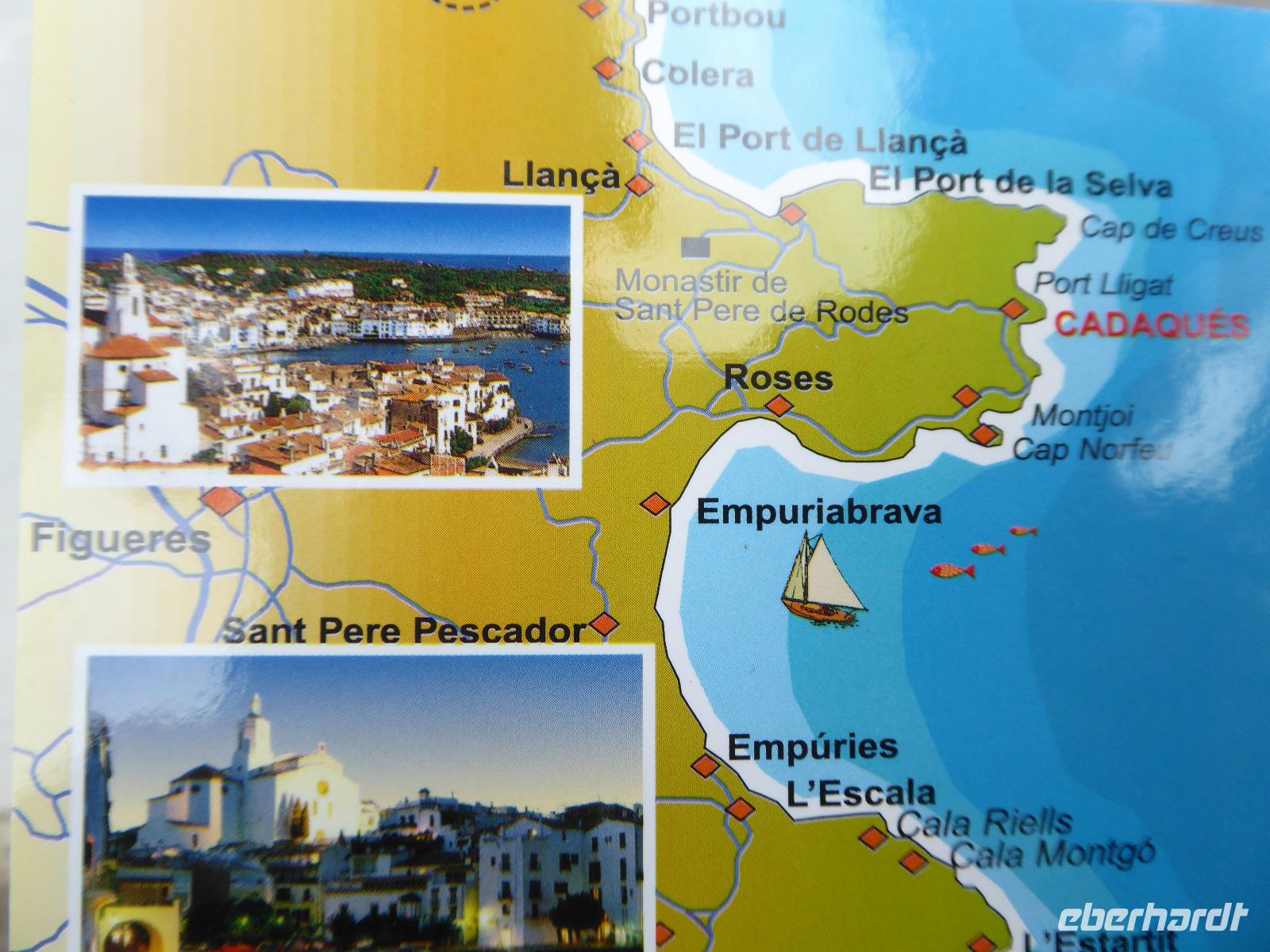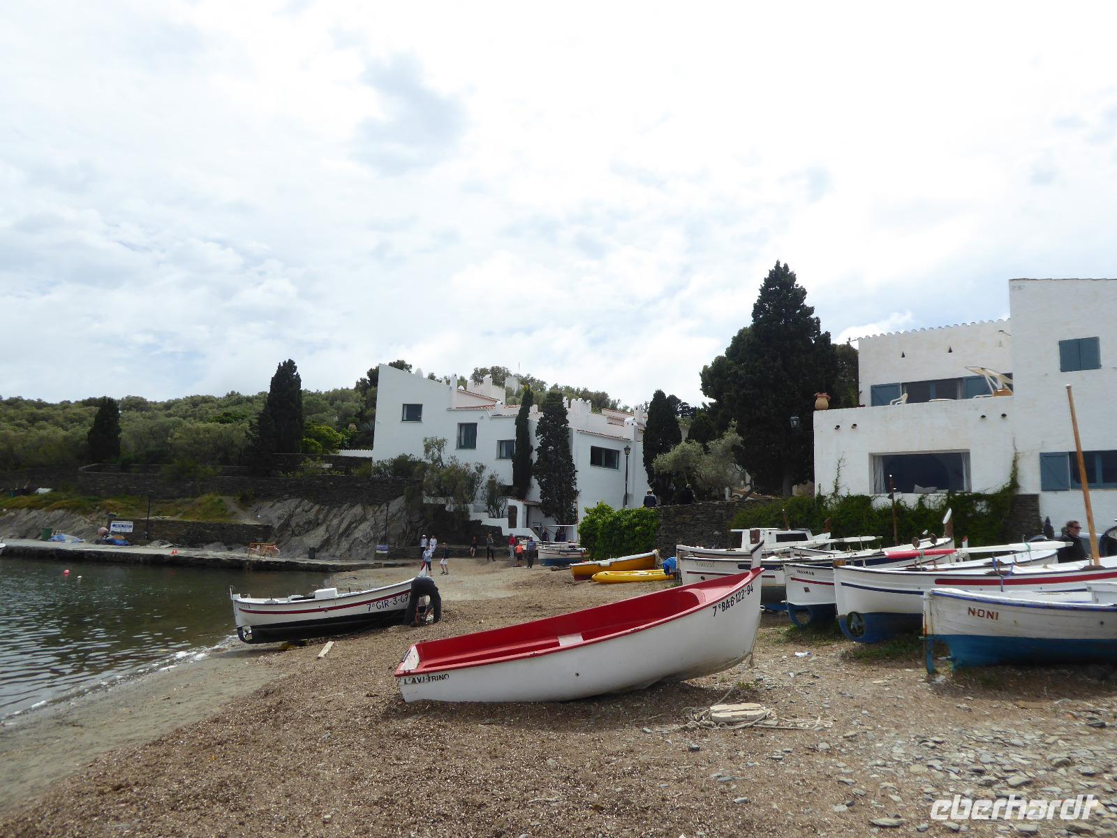 Was muss das für eine große Liebe gewesen sein. Und wie reich muss dieser Mann gewesen sein. Die Rede ist von Salvador Dali, der seiner Frau ein kleines Schloss eingerichtet hat und das wir heute als erstes besuchen. Ehrfürchtig betreten wir das mittelalterliche Schloss aus dem 11. Jahrhundert. Wir bewundern, wie stilvoll alle Zimmer eingerichtet sind. Wunderschön ist das blaue Bett mit dem Baldachin und den daneben stehenden blauen Sesselchen vor der ebenso blauen Gardine. Der Blick durch einen Glastisch fällt auf einen darunter stehenden Schimmel. Eine Fotogalerie berichtet über das Leben der beiden Künstler. Wir besuchen anschließend das Dali-Museum. Dieses befindet sich in einem Theater, das schon von außen durch überdimensionale Eier auf dem Dach auffällig ist. Und Innen erst! Man kommt aus dem Staunen nicht heraus. Zum Glück haben wir Lorenzo dabei, der uns wieder viele interessante Informationen gibt. Mit einem Euro bringen wir den Schirm dazu, sich aufzuspannen und lassen es im Cadillac regnen. Wunderbar. Wer während der Mittagspause durch die Straßen schlendert, hat vielleicht das Glück, den katalanischen Reigentanz zu erleben. Eine kleine Kapelle macht Musik und Passanten, die zufällig in der Nähe sind, bilden einen Kreis und tanzen miteinander. In Port Lligat besuchen wir das ehemalige Wohnhaus von Dali. Da es nur von außen besichtigt werden kann, ist es eher unspektakulär, hat aber eine wunderschöne Lage. Eine ganze Stunde haben wir Zeit, das in der Nähe liegende Örtchen Cadaques zu erobern. Hier spazieren wir am Strand entlang und gönnen uns einen Kaffee oder ein Gläschen Wein. Ein erlebnisreicher Tag geht zu Ende.
