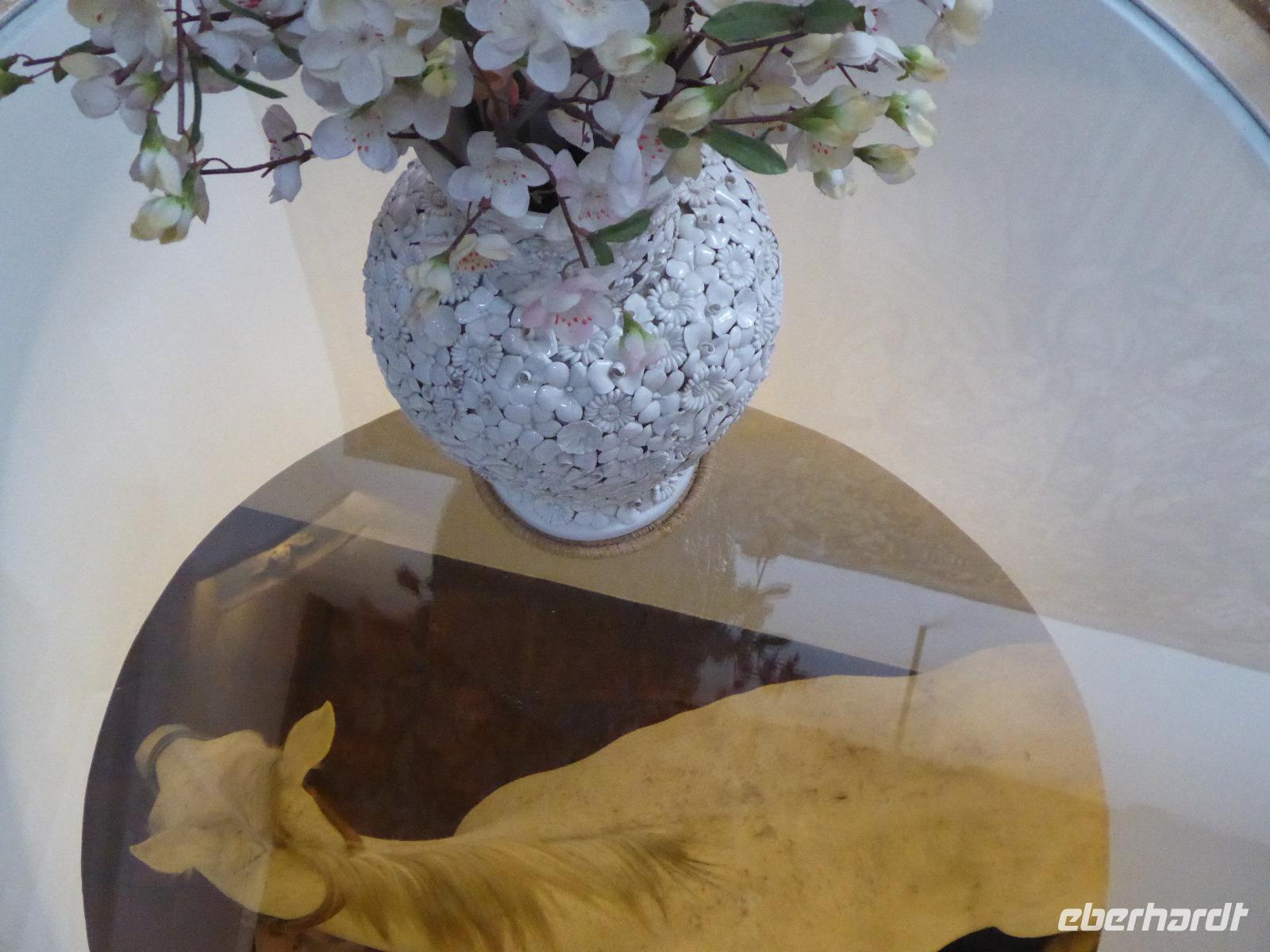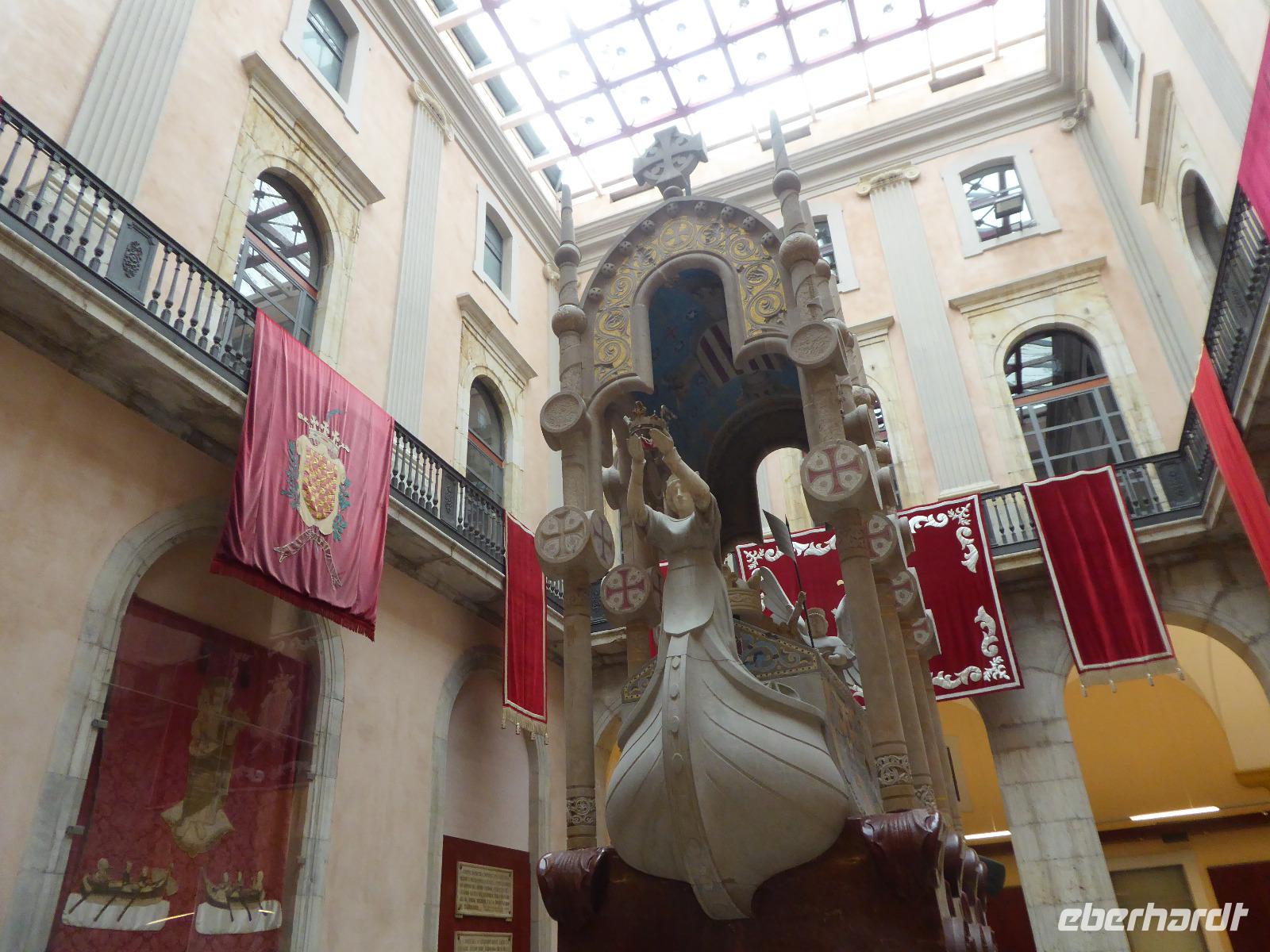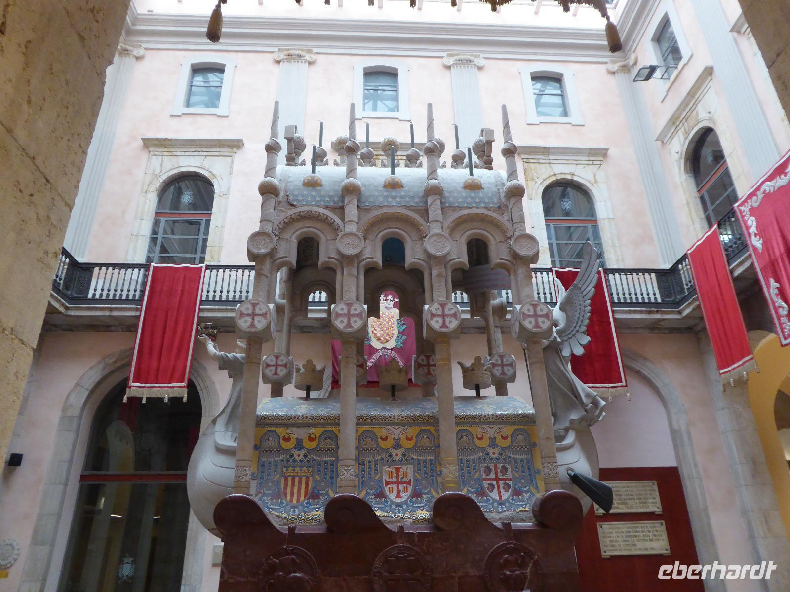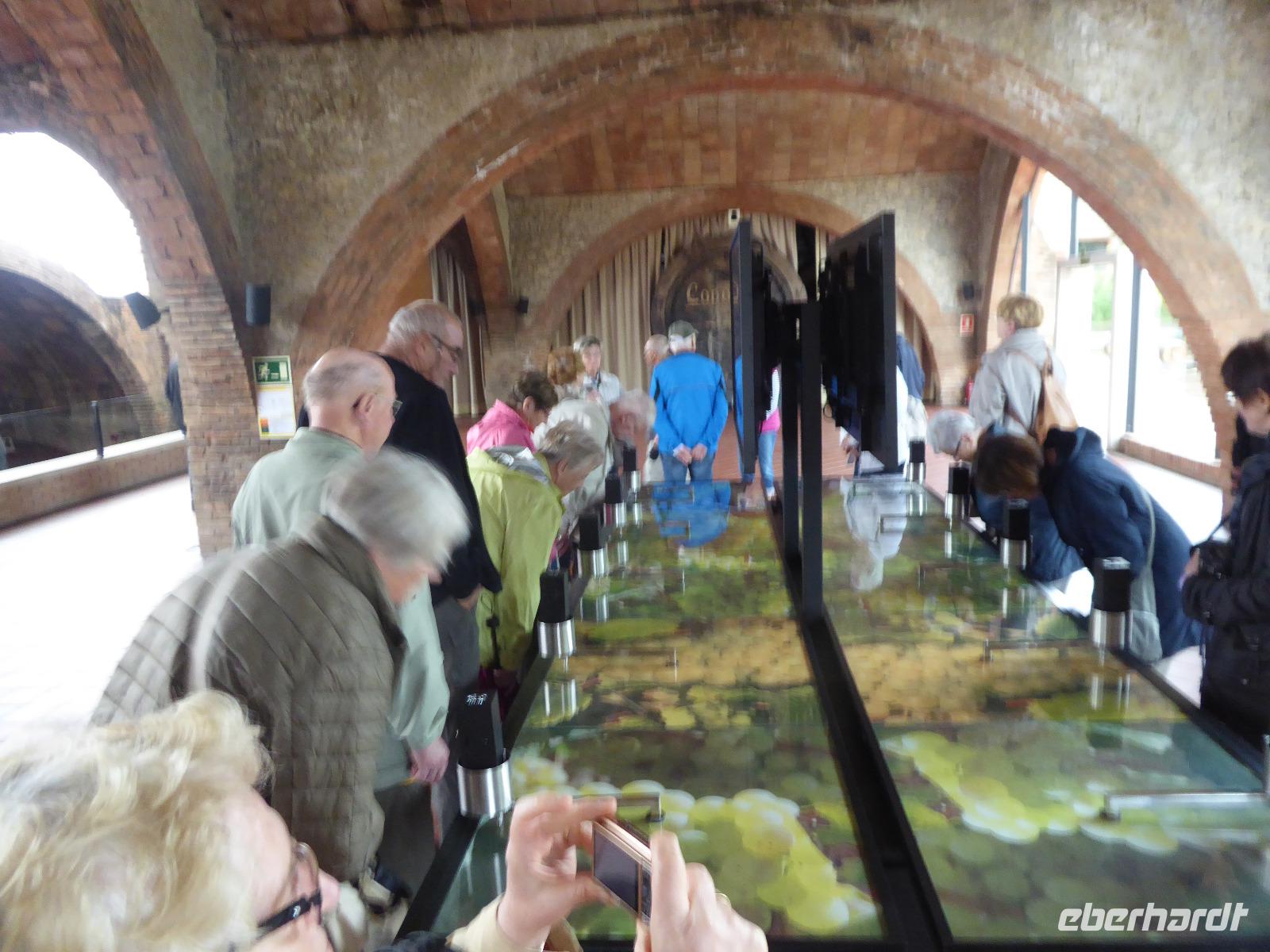 Was muss das für eine große Liebe gewesen sein. Und wie reich muss dieser Mann gewesen sein. Die Rede ist von Salvador Dali, der seiner Frau ein kleines Schloss eingerichtet hat und das wir heute als erstes besuchen. Ehrfürchtig betreten wir das mittelalterliche Schloss aus dem 11. Jahrhundert. Wir bewundern, wie stilvoll alle Zimmer eingerichtet sind. Wunderschön ist das blaue Bett mit dem Baldachin und den daneben stehenden blauen Sesselchen vor der ebenso blauen Gardine. Der Blick durch einen Glastisch fällt auf einen darunter stehenden Schimmel. Eine Fotogalerie berichtet über das Leben der beiden Künstler. Wir besuchen anschließend das Dali-Museum. Dieses befindet sich in einem Theater, das schon von außen durch überdimensionale Eier auf dem Dach auffällig ist. Und Innen erst! Man kommt aus dem Staunen nicht heraus. Zum Glück haben wir Lorenzo dabei, der uns wieder viele interessante Informationen gibt. Mit einem Euro bringen wir den Schirm dazu, sich aufzuspannen und lassen es im Cadillac regnen. Wunderbar. Wer während der Mittagspause durch die Straßen schlendert, hat vielleicht das Glück, den katalanischen Reigentanz zu erleben. Eine kleine Kapelle macht Musik und Passanten, die zufällig in der Nähe sind, bilden einen Kreis und tanzen miteinander. In Port Lligat besuchen wir das ehemalige Wohnhaus von Dali. Da es nur von außen besichtigt werden kann, ist es eher unspektakulär, hat aber eine wunderschöne Lage. Eine ganze Stunde haben wir Zeit, das in der Nähe liegende Örtchen Cadaques zu erobern. Hier spazieren wir am Strand entlang und gönnen uns einen Kaffee oder ein Gläschen Wein. Ein erlebnisreicher Tag geht zu Ende.