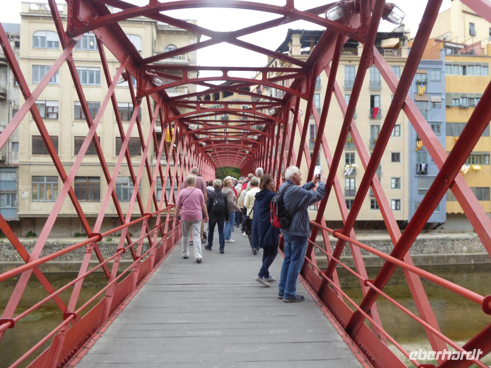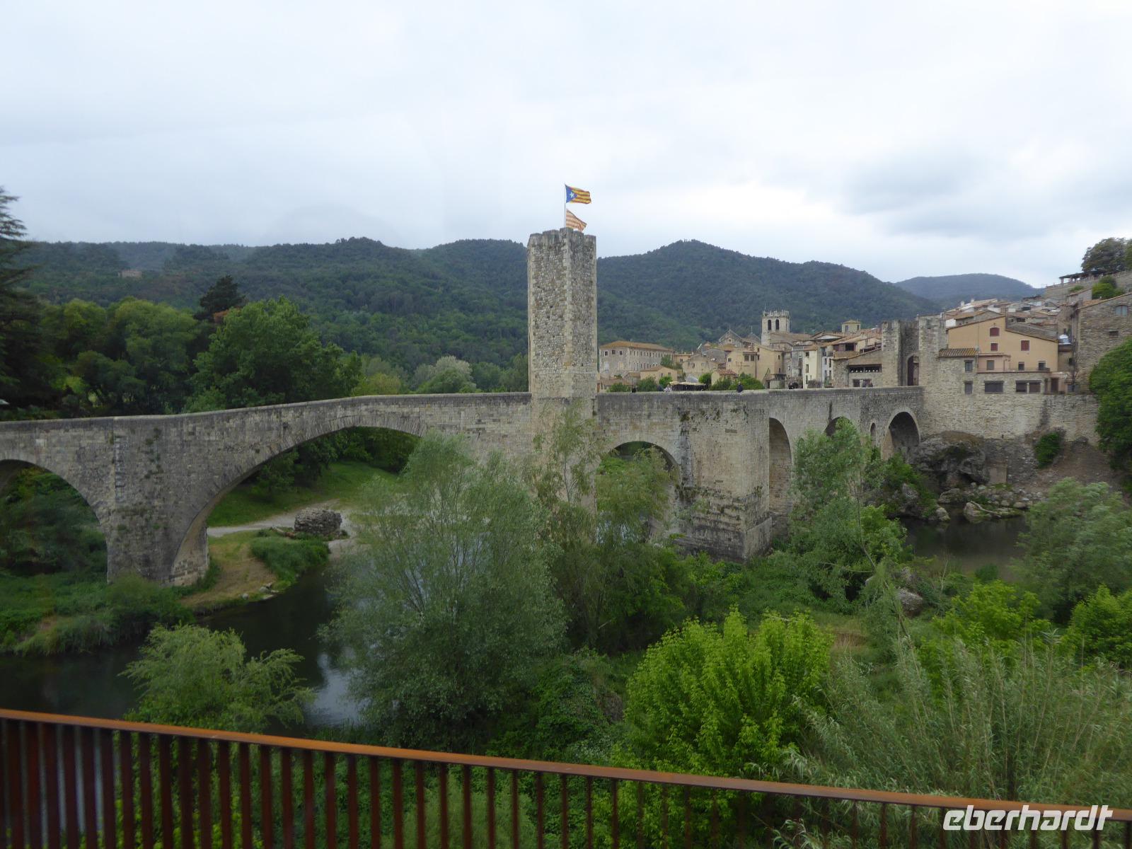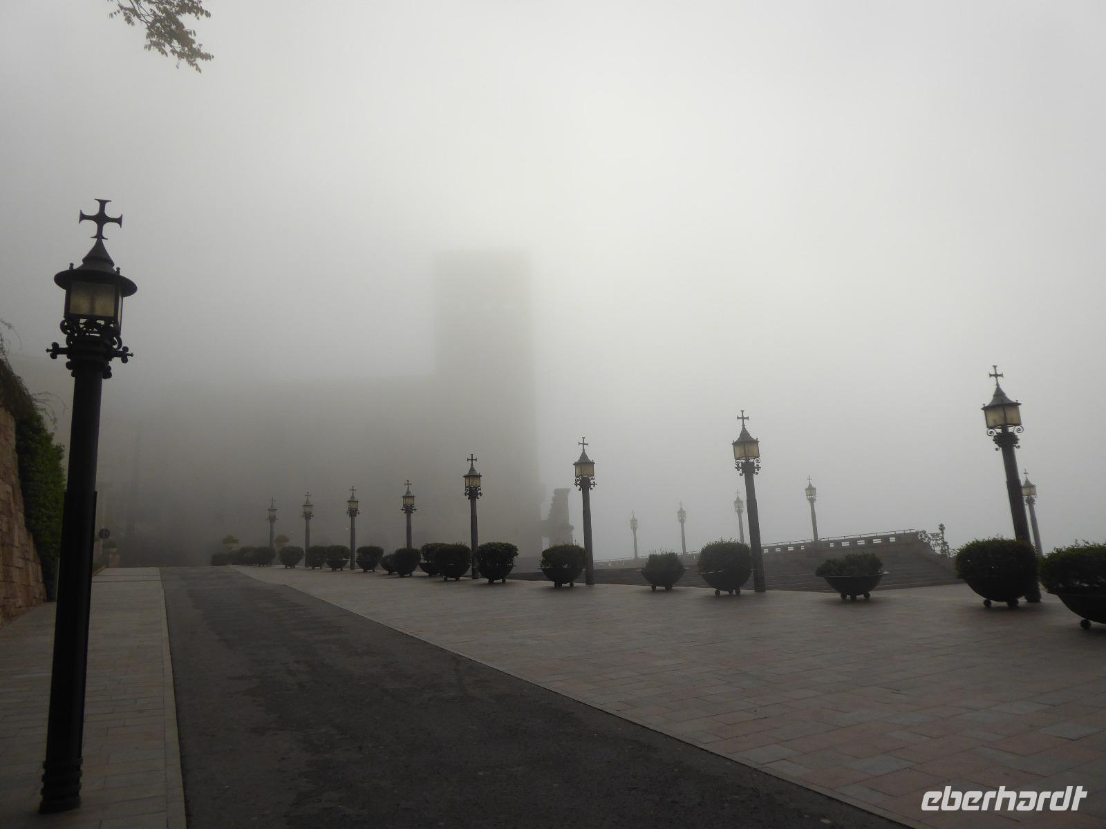 Der frühe Vogel fängt den Wurm. Und wer um sieben vor der Kirche steht, kann die Schwarze Madonna ganz allein für sich bewundern. Halb acht beginnt die Morgenmesse. Nach und nach kommen die Mönche herein und nehmen mit ihren Gesangsbüchern Platz. Sie singen und wir genießen. Auch wenn man nicht religiös ist, bekommt man dabei Gänsehaut. Wie schön, dass wir das erleben. Eine Stunde später haben die Asiaten den Frühstücksraum geräumt und wir können es uns gemütlich machen. Doch gefaulenzt wird nicht. Bevor wir wieder in den Bus steigen, unternehmen wir eine Wanderung auf die gegenüberliegende Seite vom Kloster zu einem Kreuz. Wir versprechen uns davon, eine tolle Aussicht zu haben. Haben wir auch - jedenfalls die Ersten. Für die anderen versinkt die Aussicht in dichtem Nebel. Wir verlassen die Klosteranlage und fahren Richtung Costa Brava. Wir freuen uns auf ein paar schöne Tage am Meer. Unterwegs legen wir einen Stopp in Rupi i Pruit ein. Eine Hängebrücke führt uns in das mittelalterliche Dorf. Die Häuser sind rustikal aus groben Steinen gebaut. Lorenzo führt uns durch die Gassen. In der kleinen Kirche können wir mit einem Euro den Altar beleuchten lassen. Ihr ward nicht dabei? Dann schaut einfach mal in die Fotogalerie. Durch die romantische Landschaft, die das Dorf umgibt, wandern wir wieder zurück. Am Wasserfall finden wir uns noch einmal zu einem Gruppenbild zusammen. Mittags kehren wir im Restaurant DEL SANTUARI DE FAR, herrlich gelegen auf einem Berg mitten in der katalanischen Landschaft, ein. Wir kosten uns durch die landestypischen Spezialitäten wie Patata Vulkanisma (oder Patata Besalu) und Weiße Bohnen mit Bratwurst. Auf jeden Fall schmeckt es ausgezeichnet. In Girona legen wir unseren letzten Stopp für heute ein. Wie schade, dass wir keine Zeit fürs Shoppen haben. Wir widmen uns der gotischen Altstadt und besichtigen diese. Am Abend erreichen wir die Costa Brava und das Städtchen Santa Susanna, in dem sich unser Hotel Don Angel befindet. Das Hotel ist gut besucht. Offensichtlich feiert hier eine große Gruppe Franzosen (?) eine riesige Party. Wir sind, gelinde gesagt, etwas irritiert. Nach unserem Morgen im Kloster und den tollen Besichtigungen tagsüber, steht uns irgendwie nach dieser Gesellschaft nicht wirklich der Sinn. Na dann sagen wir mal lieber GUTE NACHT.