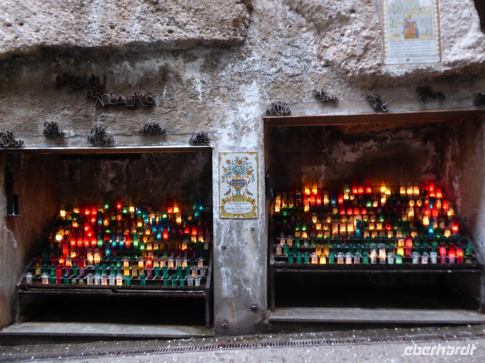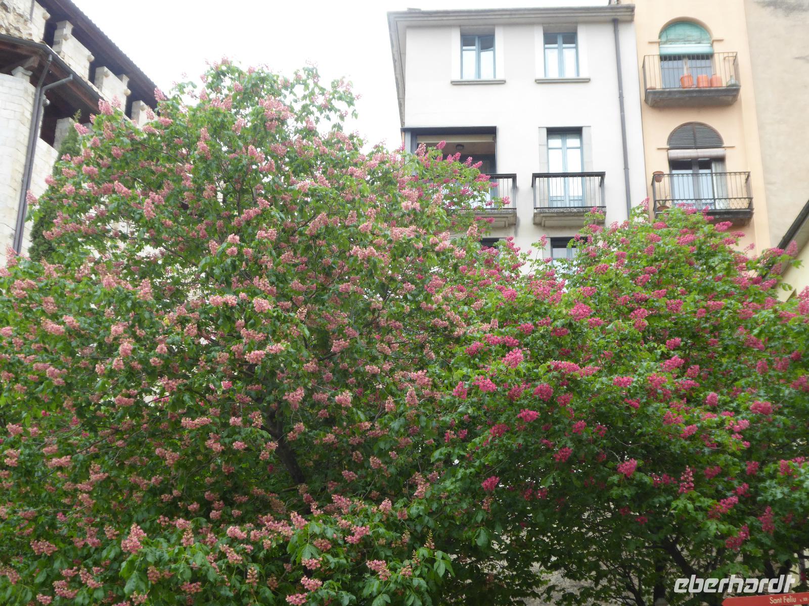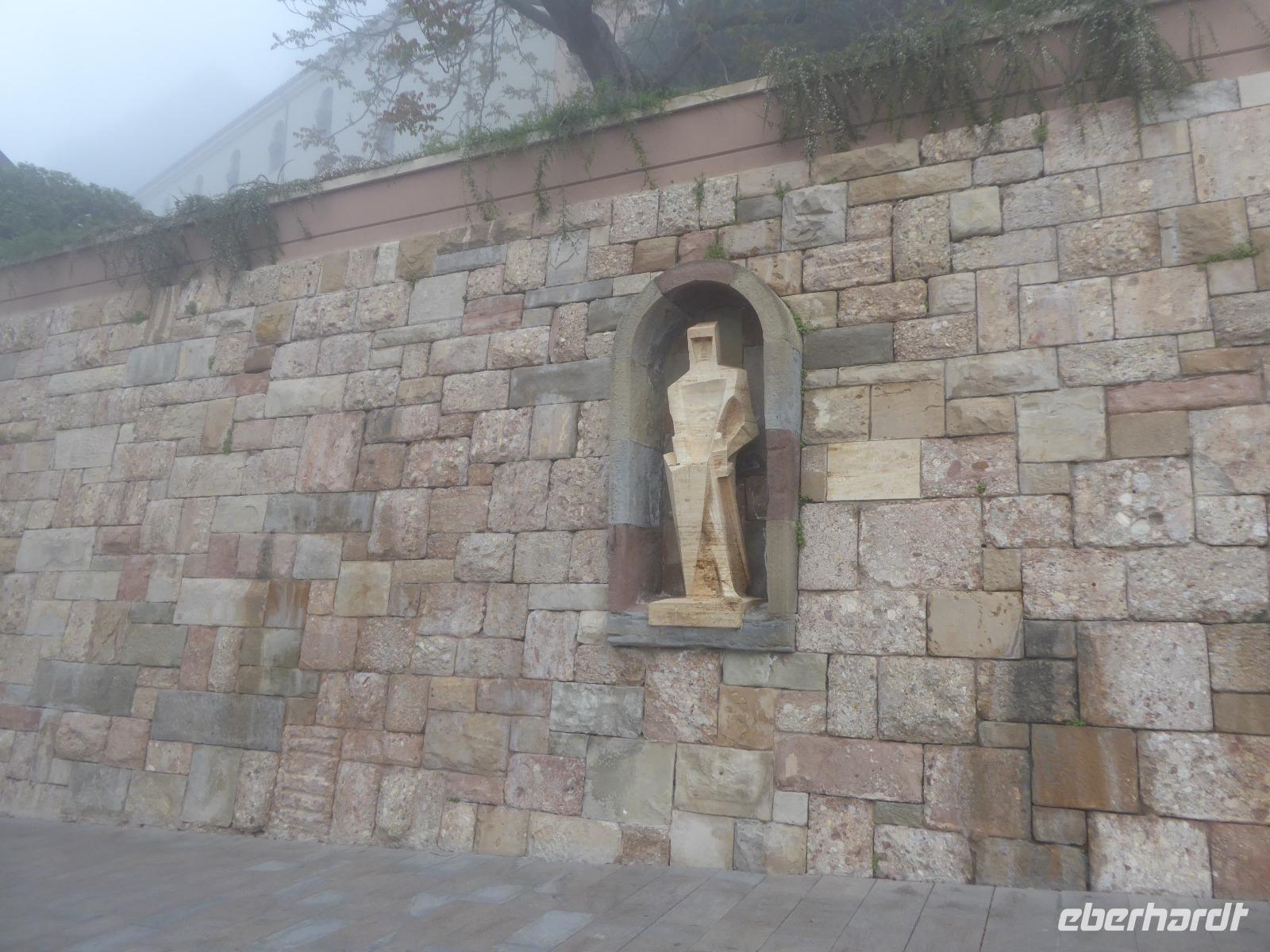 Der frühe Vogel fängt den Wurm. Und wer um sieben vor der Kirche steht, kann die Schwarze Madonna ganz allein für sich bewundern. Halb acht beginnt die Morgenmesse. Nach und nach kommen die Mönche herein und nehmen mit ihren Gesangsbüchern Platz. Sie singen und wir genießen. Auch wenn man nicht religiös ist, bekommt man dabei Gänsehaut. Wie schön, dass wir das erleben. Eine Stunde später haben die Asiaten den Frühstücksraum geräumt und wir können es uns gemütlich machen. Doch gefaulenzt wird nicht. Bevor wir wieder in den Bus steigen, unternehmen wir eine Wanderung auf die gegenüberliegende Seite vom Kloster zu einem Kreuz. Wir versprechen uns davon, eine tolle Aussicht zu haben. Haben wir auch - jedenfalls die Ersten. Für die anderen versinkt die Aussicht in dichtem Nebel. Wir verlassen die Klosteranlage und fahren Richtung Costa Brava. Wir freuen uns auf ein paar schöne Tage am Meer. Unterwegs legen wir einen Stopp in Rupi i Pruit ein. Eine Hängebrücke führt uns in das mittelalterliche Dorf. Die Häuser sind rustikal aus groben Steinen gebaut. Lorenzo führt uns durch die Gassen. In der kleinen Kirche können wir mit einem Euro den Altar beleuchten lassen. Ihr ward nicht dabei? Dann schaut einfach mal in die Fotogalerie. Durch die romantische Landschaft, die das Dorf umgibt, wandern wir wieder zurück. Am Wasserfall finden wir uns noch einmal zu einem Gruppenbild zusammen. Mittags kehren wir im Restaurant DEL SANTUARI DE FAR, herrlich gelegen auf einem Berg mitten in der katalanischen Landschaft, ein. Wir kosten uns durch die landestypischen Spezialitäten wie Patata Vulkanisma (oder Patata Besalu) und Weiße Bohnen mit Bratwurst. Auf jeden Fall schmeckt es ausgezeichnet. In Girona legen wir unseren letzten Stopp für heute ein. Wie schade, dass wir keine Zeit fürs Shoppen haben. Wir widmen uns der gotischen Altstadt und besichtigen diese. Am Abend erreichen wir die Costa Brava und das Städtchen Santa Susanna, in dem sich unser Hotel Don Angel befindet. Das Hotel ist gut besucht. Offensichtlich feiert hier eine große Gruppe Franzosen (?) eine riesige Party. Wir sind, gelinde gesagt, etwas irritiert. Nach unserem Morgen im Kloster und den tollen Besichtigungen tagsüber, steht uns irgendwie nach dieser Gesellschaft nicht wirklich der Sinn. Na dann sagen wir mal lieber GUTE NACHT.