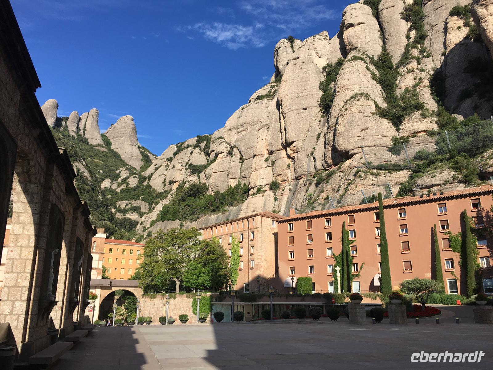 Früh um 08.30 Uhr beginnt unser heutiger Ausflug ins grüne Umland Barcelonas. Nach knapp einer Stunde Fahrzeit ist das Kloster Poblet erreicht und wir genießen nach dem Tag in der Innenstadt von Barcelona die Ruhe und Stille in dem romanischen Kloster bei einem Rundgang durch den gut erhaltenen Kreuzgang und die ehemaligen Wohnräume der Mönche. Noch heute wohnen ca. 25 Mönche in dem Zisterzienser Kloster. Die Landschaft um Barcelona ist geprägt von Weinbaugebieten und einige haben sich der Kunst der Cava-Produktion verschrieben, der spanischen Variante des Champagner. Wir besuchen das Weingut Cordoniu, in dessen kilometerlangen unterirdischen Gängen Cavas von Spitzenqualitäten reifen. Nach einer kleinen Bahnfahrt durch die kühlen Keller genießen wir eine Cava-Probe! Nach der Weinprobe beginnt unsere Fahrt zum zersägten Berg, nach Montserrat. Es ist ein wirklich passender Name für dieses zerklüftete Bergmassiv. Auf fast 700 m liegt das Benediktiner - Kloster das damals wie heute eines der wichtigsten Wallfahrtsorte Spaniens darstellt. In der romanischen Basilika befindet sich die Madonnen-Statue. Aufgrund ihres über die Jahrhunderte dunkler gewordenen Gesichts und ihrer dunklen Hände wird sie von den Katalanen auch „la Moreneta", oder die schwarze Madonna genannt. Wir verbringen die Nacht im Klosterhotel direkt neben der Basilika.