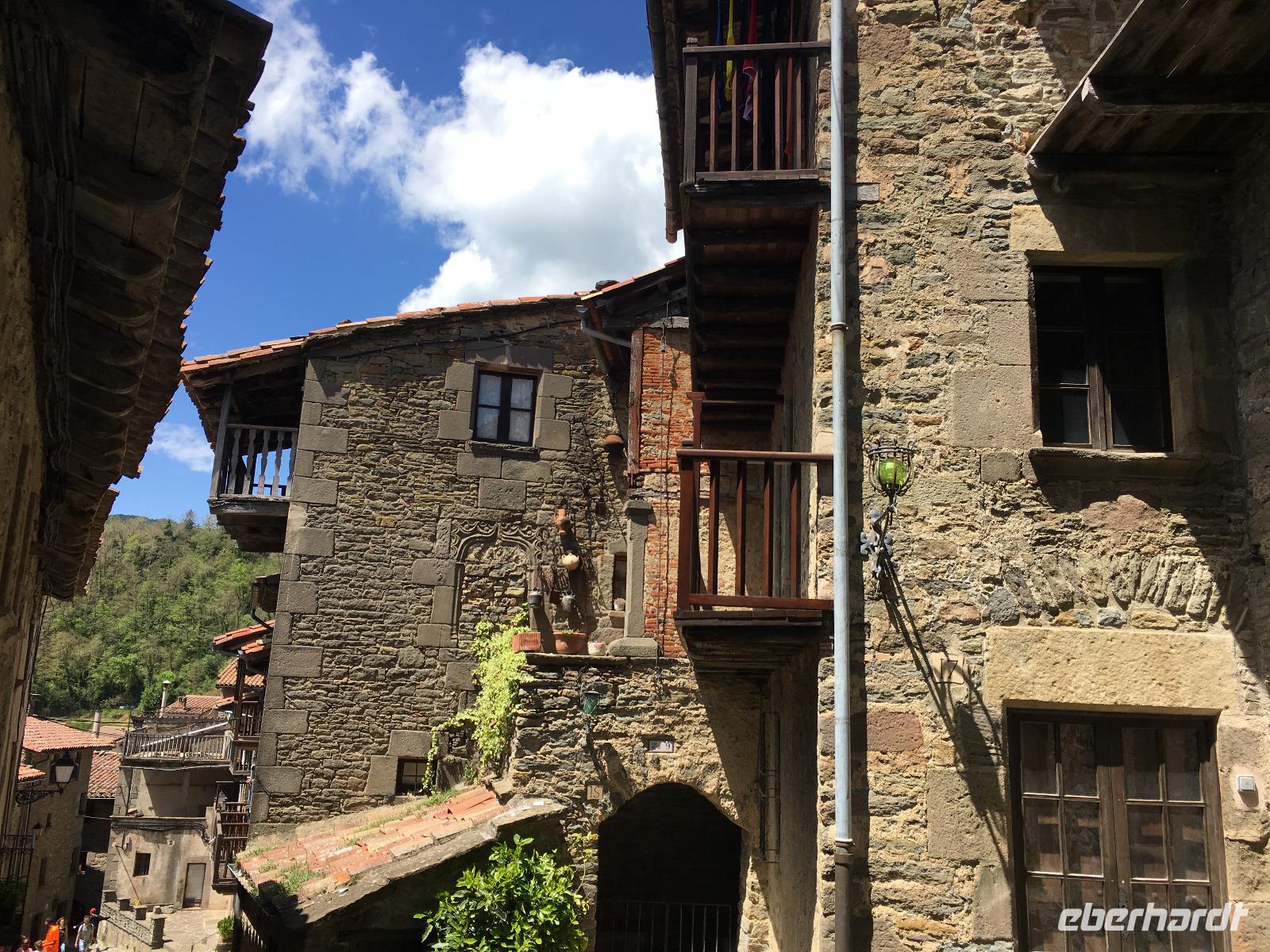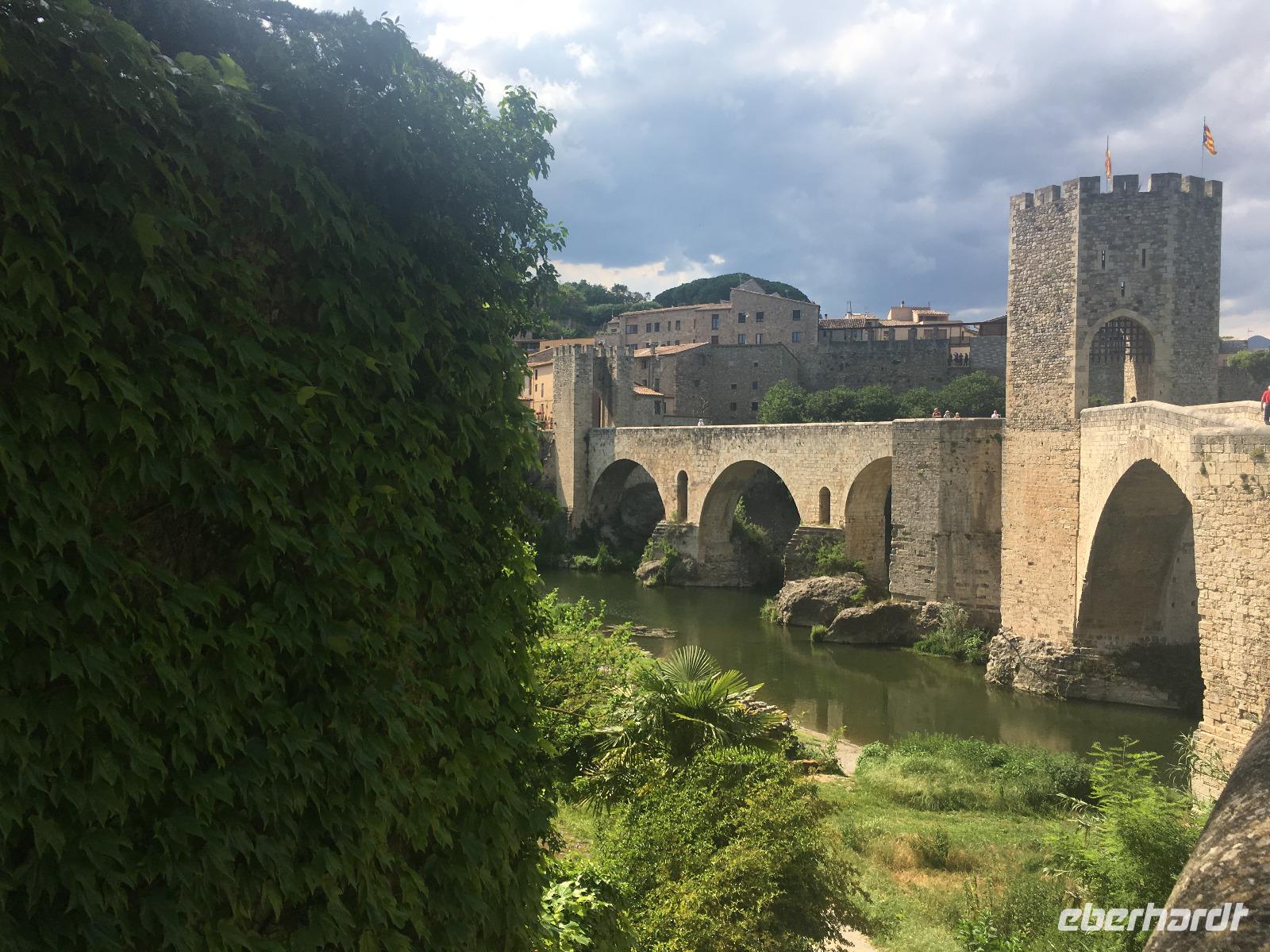 Die meisten von uns nutzen den herrlichen kühlen und sonnigen Morgen um das Kloster leer von Touristen und ungestört zu erkunden und auf dem Kreuzweg zu einem Aussichtspunkt über dem Tal zu wandern. Was für eine wunderbare Art, den Tag zu beginnen! Am späten Vormittag machen wir uns auf den Weg und fahren zunächst nach Rupit, einem zauberhaften Bergdorf. Jedes der grauen Natursteinhäuser ist mit Blumen und der gelb-roten katalanischen Fahne geschmückt. Weiter geht es durch herrliche Natur und auf kleinen Straßen zum mittelalterlichen Städtchen Besalu mit der Steinbrücke aus dem 11. Jahrhundert. Nachmittags erkunden wir außerdem noch den Ort Girona, am Fluss Onyar. Während unseres Aufenthaltes findet die Blumenwoche statt. Somit sind fast alle Gebäude mit schönen Blumen dekoriert und viele Blumenkunstwerke befinden sich in der ganzen Stadt verteilt. Nach einem Tag voller Eindrücke kommen wir am Abend endlich am Strand an und beziehen unser Hotel Don Angel direkt an der Strandpromenade von Santa Susanna.