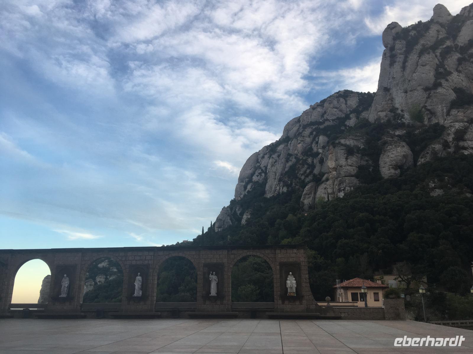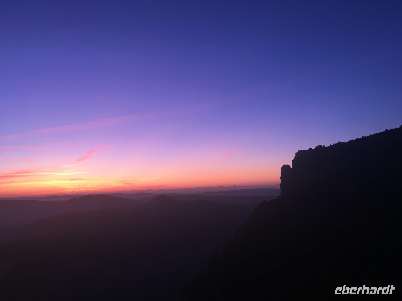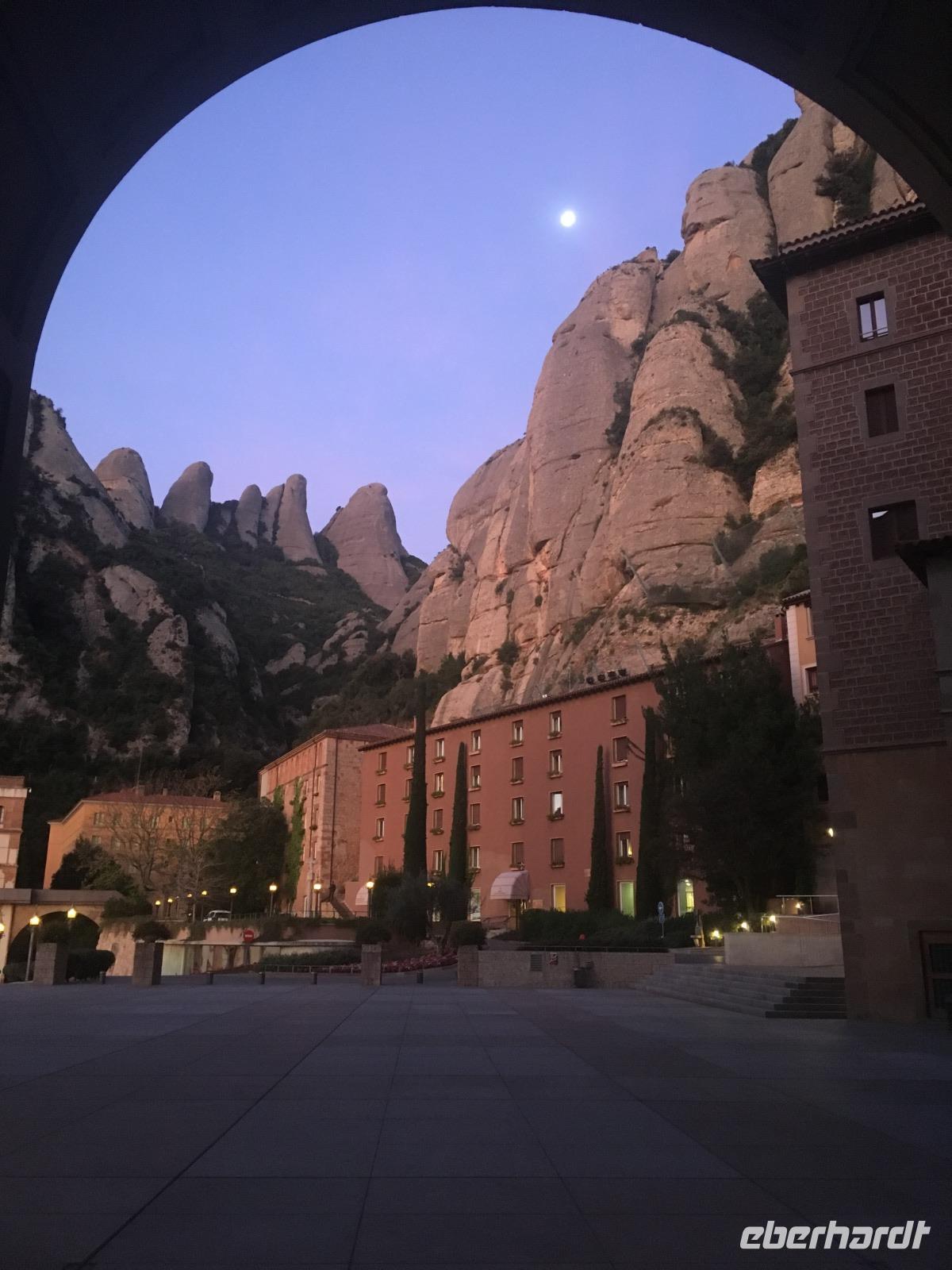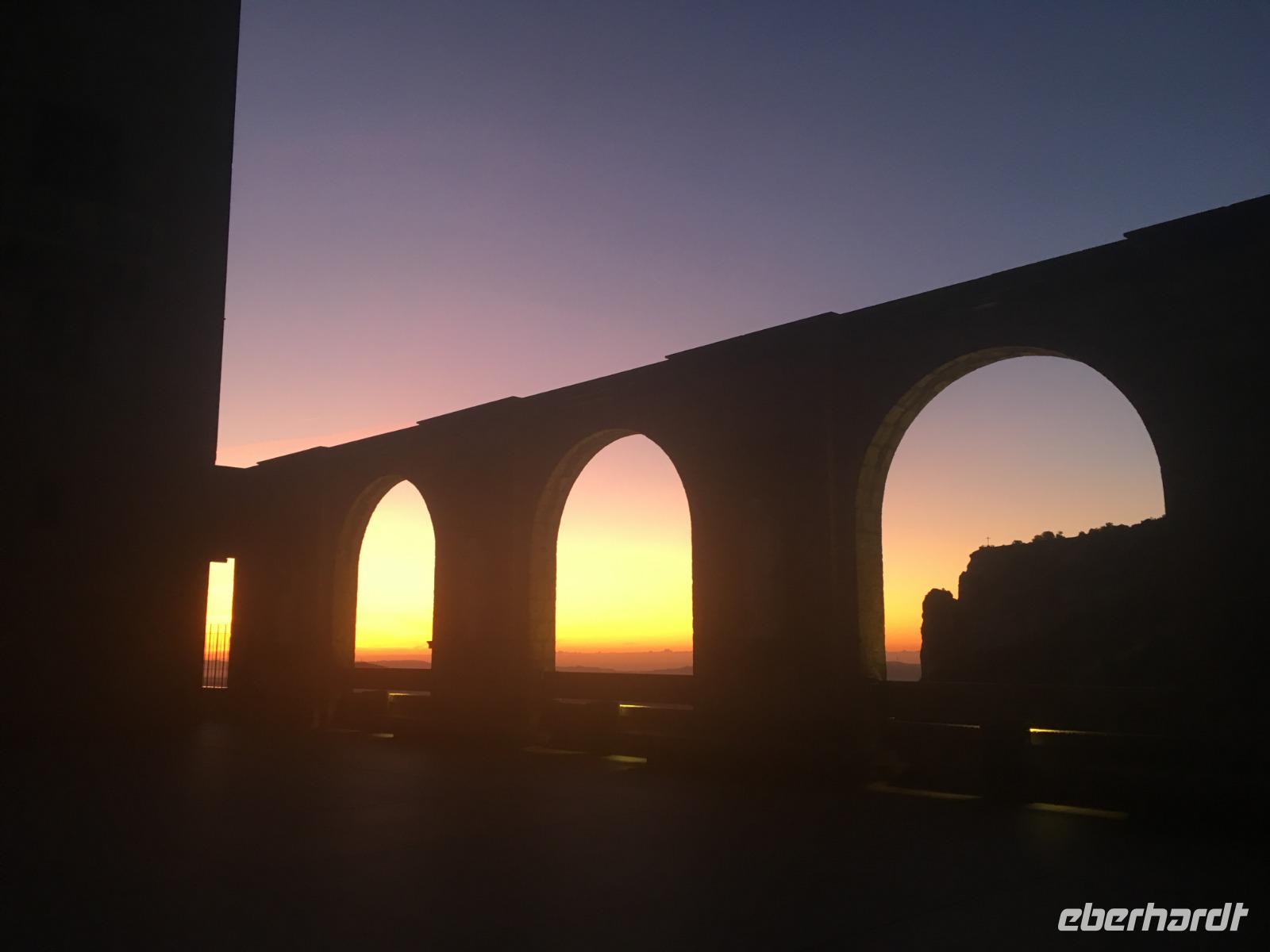 Nach einer ruhigen Nacht erklingen schon morgens die Glocken im Kloster Montserrat und lassen unsere Eberhardt-Gruppe erwecken. Doch es soll sich rasch auszahlen, schließlich wird ein frühmorgendlicher Spaziergang oder Blick aus dem Fenster mit einem beeindruckenden Sonnenaufgang belohnt. Der Himmel über dem Sandsteingebirge ist in einem tiefen Rot-Organge gefärbt, wodurch sich eine malerische Kulisse ergibt.