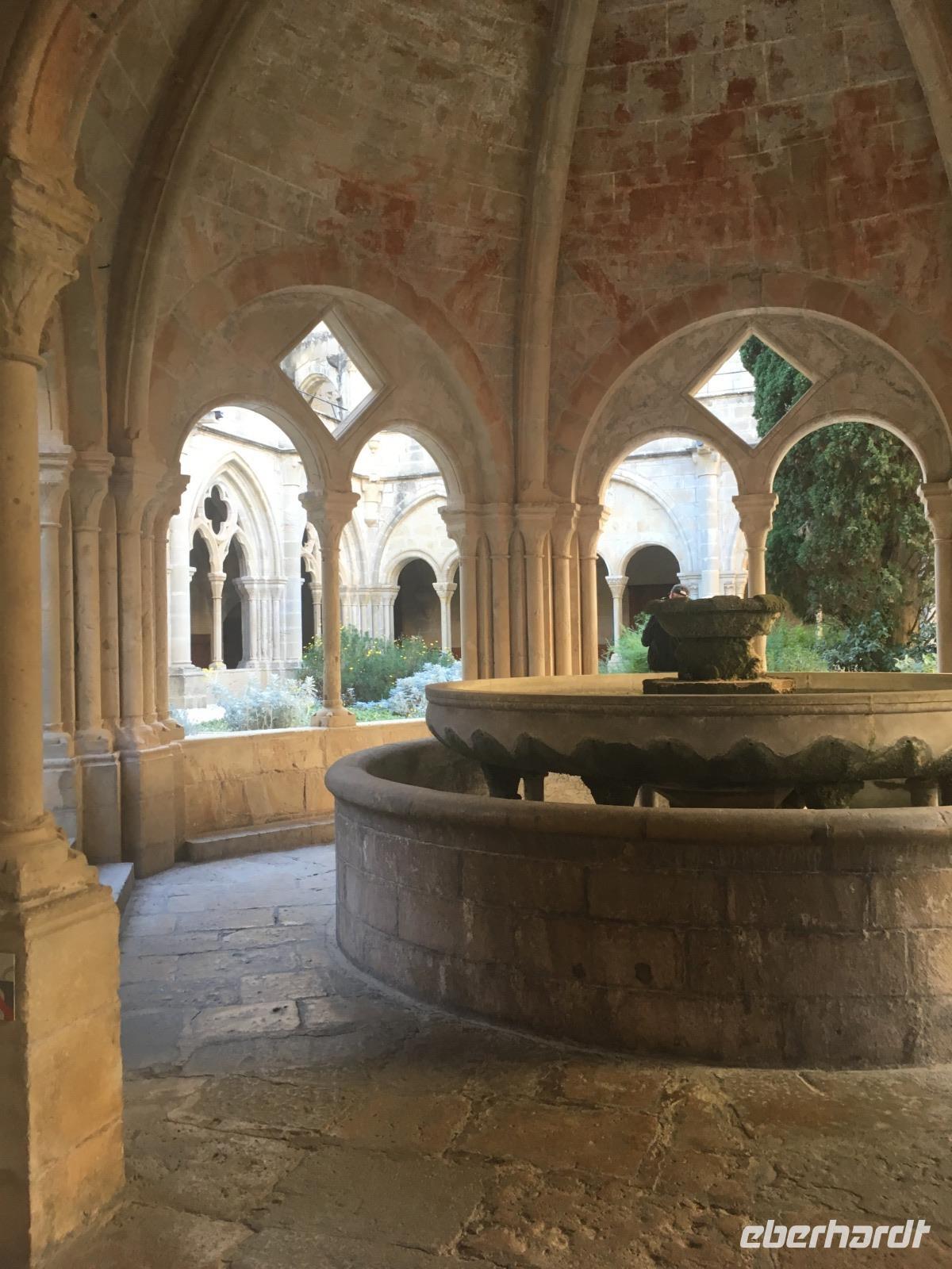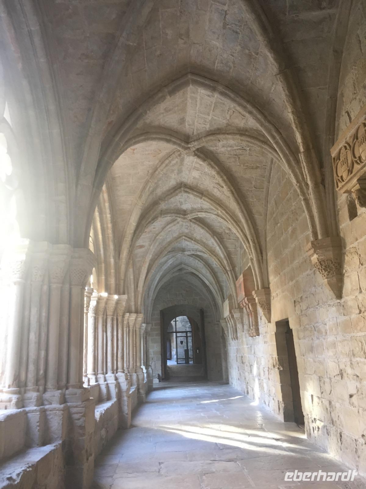 Auch heute werden wir von strahlendem Sonnenschein begrüßt und beginnen den Tag mit einem leckeren Frühstück. Nach zwei intensiven Tagen in Barcelona verlassen wir die Haupstadt Kataloniens, um die Region Tarragona zu entdecken. Wir begeben uns gemeinsam mit Vanessa auf die Autobahn und steuern in westlicher Richtung das Zisterzienserkloster de Santa Maria in Poblet an. Vom Bus heraus können wir sogar einen Blick auf das Kloster Montserrat erhaschen, das in der Ferne im Sandsteingebirge gelegen ist. Doch bis wird dort heute Abend ankommen sollen, wollen wir noch einiges erleben. Schon bald lösen weite Weinfelder die Industriezonen um Barcelona ab. Als wir im Kloster angelangen, besichtigen wir sowohl die inneren Räumlichkeiten als auch den Kreuzgang samt Brunnenhaus. Langsam lassen wir die im Kloster ausstrahlende Ruhe in uns einkehren und genießen den Kontrast zum Großstadttrubel.