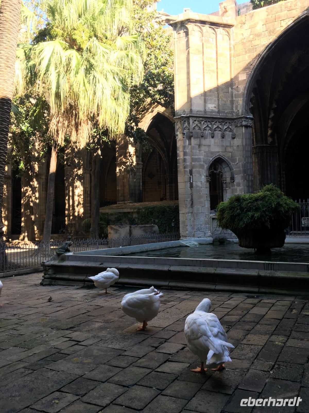 Anschließend schlendern wir weiter durch die Altstadt und besichtigen die prächtige Kathedrale sowie den Kreuzgang mit seinen schnatternden Gänsen, während uns Vanessa die Legende der heiligen Eulalia erzählt.