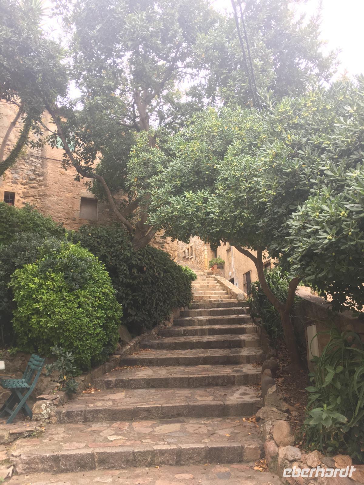 Den heutigen Tag lassen wir in aller Gemütlichkeit starten und so genießen wir zunächst ein reichhaltiges Frühstück in unserem Hotel. Anschließend werden wir in das charmante Küstenörtchen Tossa de mar gebracht, das an der Costa Brava liegt. Auf dem Weg dorthin legen wir einen kurzen Halt ein, um die tolle Aussicht auf das Meer zu genießen. Sodann erreichen wir Tossa de mar und spazieren durch das noch recht verschlafen wirkende Örtchen in Richtung der Kirche Sant Vincenc. Die dem heiligen Vincenc von Sarragosse gewidmete Kirche wurde Ende des 18. Jahrhunderts erbaut, als sich der Ort langsam vergrößerte. Wir werfen einen Blick in das Innere und schlendern dann weiter durch die kleinen Gassen, in denen sich weiß gekalkte Häuser mit bunten Blumen aneinanderreihen. Sodann gelangen wir zu der Stadtfestung aus dem 12. Jahrhundert, die einst gegen Piratenangriffe schützen sollte und mit sieben Wachtürmen ausgestattet ist. In ihrem Kern ist die mittelalterliche Altstadt gelegen, in denen man sich durch enge Gassen schlengelt und Steintreppen besteigt. Sogar ein kleines Loch lässt sich in der Steinmauer entdecken, dem „Loch der Dämonen". Der Legende nach kehren alle die, die durch das Loch klettern, eines Tages zurück nach Tossa. Und da uns der kleine Fischerort recht gut gefällt, machen wir das doch gleich. Durch das Loch hindurch, erhalten wir eine tolle Aussicht auf das Meer. Im Anschluss startet die Mehrheit von uns eine Bootsfahrt mit einem Glasbodenboot, durch das man das Treiben in der Unterwasserwelt, durch eine Glasscheibe im Boot eingelassen, beobachten kann. Wir fahren sogar in eine Höhle hinein, in der sich die Fische besonders gut erblicken lassen. Wieder am Strand von Tossa zurück, spazieren einige von uns durch den Ort und genießen leckere Tapas in einem der vielen Restaurant an der Strandpromenade. Am frühen Nachmittag kehren wir zurück nach Malgrat de mar und gestalten den Nachmittag ganz nach unserem Belieben. So verweilen einige von uns in der Hotelbar, während andere am Strand entlang spazieren. Am Abend trifft sich unsere Eberhardt-Gruppe dann zum Abendessen im Hotel und lässt sich das Essen vom Buffet bei netten Gesprächen schmecken.