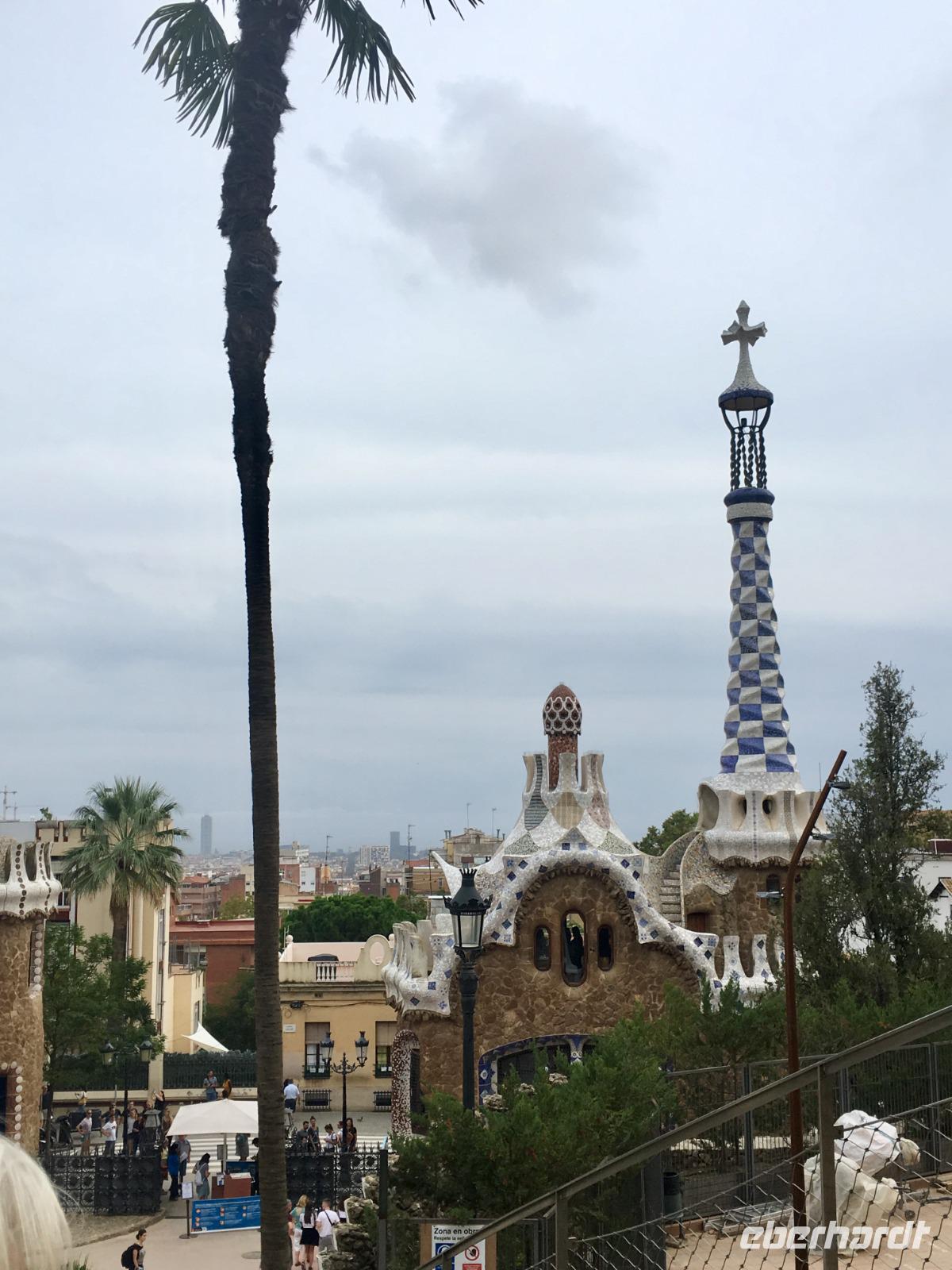 Am Nachmittag widmen wir uns dem Parc Güell, der von Antoni Gaudí konstruiert wurde und sogar einst seinen Wohnsitz darstellte. Doch auf dem Weg dorthin gelangen wir in eine Straßenblockade. Nachdem die Urteilsverkündung in Verbindung mit langjährigen Haftstrafen für die katalanischen Politiker in den Nachrichten bekannt gegeben wurde, zog es zahlreiche Protestanten auf die Straße. So bekamen wir einen recht authentischen Eindruck davon, wie stark die Katalanen für ihr Freiheitsbestreben einstehen. Doch schon bald können wir unsere Fahrt fortsetzen und gelangen zum Parc Güell. Vanessa spaziert mit uns durch die künstlerisch beeindruckende Grünanlage, bei der uns besonders die farbenfrohe Bruchkeramik die Architektur der kleinen Häsuer gefällt.