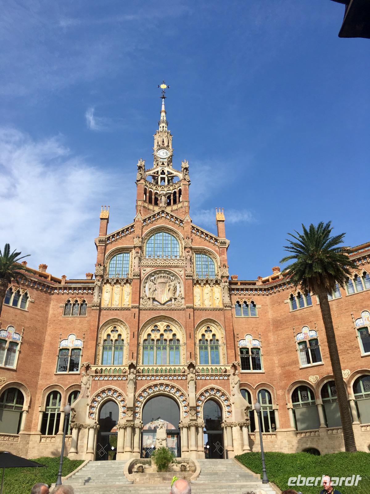 Im Anschluss spazieren wir über die Avenida de Gaudí zum Hospital de la Santa Creu i Sant Pau. Das ursprünglich für die armen Bewohner Barcelona gebaute Gebäude erweckt aber keinesfalls einen bescheidenen Eindruck. Ganz im Gegenteil erstrahlt auch dieses Bauwerk im beeindruckenden katalanischen Jugendstil.
