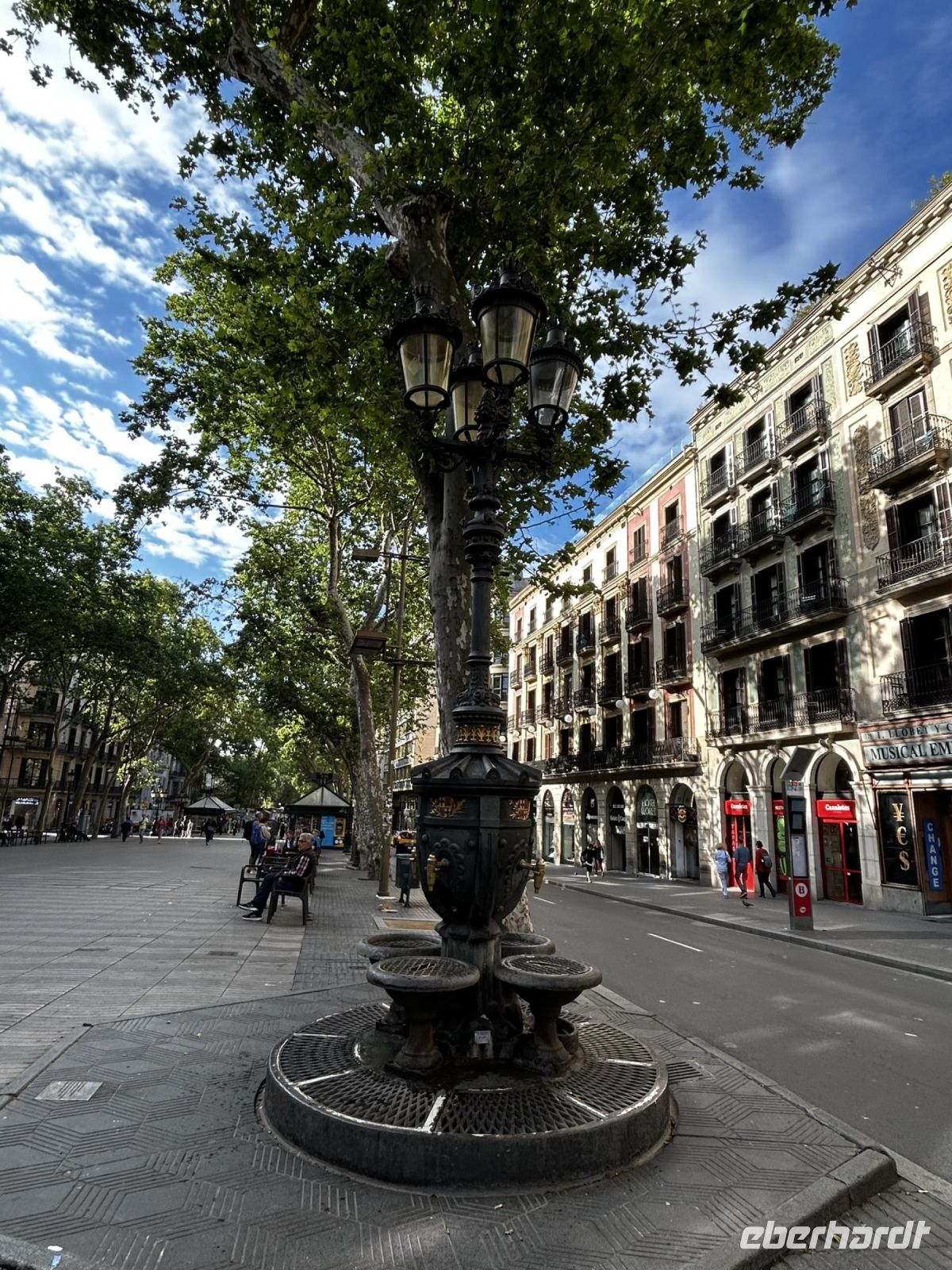 Unser erster Halt ist der belebte Platzt Placa de Catalunya. Von hier aus gibt uns Ingo einen ersten Überblick über die Stadt. Dank seiner Eselsbrücke auf der La Rambla „bergab geht’s zum Meer“ „bergauf geht es in die Stadt“ fällt es uns wesentlicher leichter uns zu orientieren.