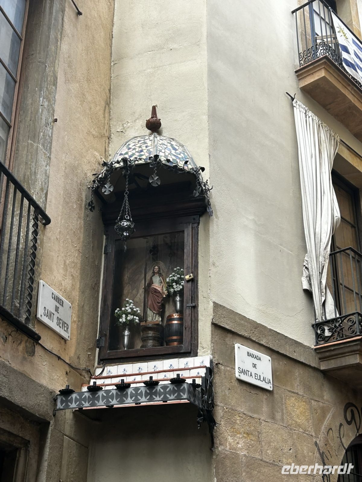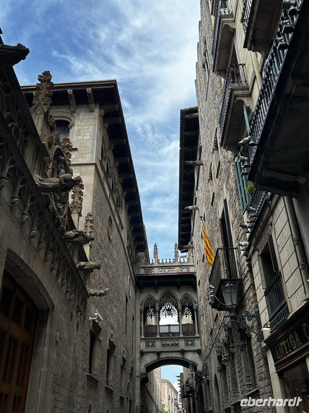 Nach der kleinen Einführung laufen wir in das älteste Stadtviertel Barcelonas dem „Barri Gotic“. Enge und verwinkelte Gassen prägen das Stadtbild des Gotischen Viertels. Der Mittelpunkt des Viertels bildet die Kathedrale „de la Santa Creu i Santa Eulalia“ welche 1393 fertig errichtet wurde.