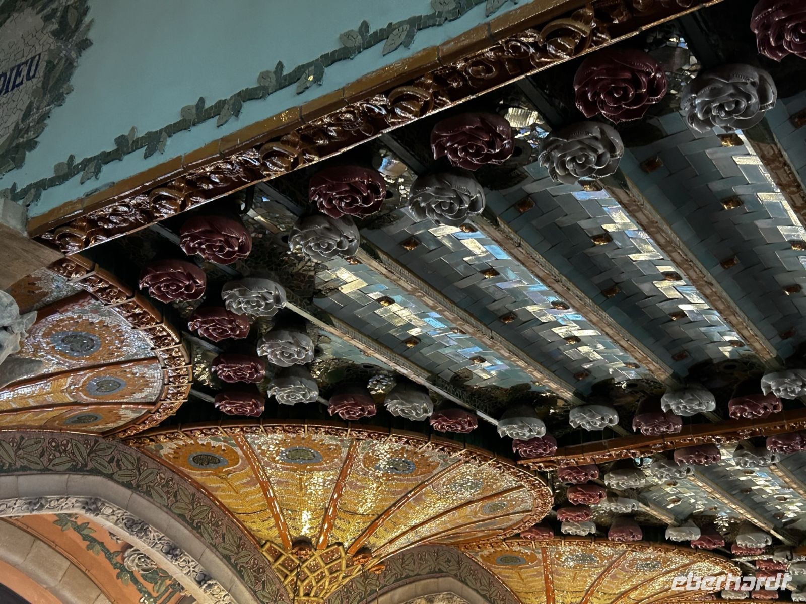 Laut Lluís Domènech i Montaner sollte der Palau de la Música ein "Garten für die Musik" sein. Das erklärt auch die vielen detailreichen Verzierungen, bunte Mosaike und Blumenelemente welche man in dem Konzertsaal erblicken konnte.