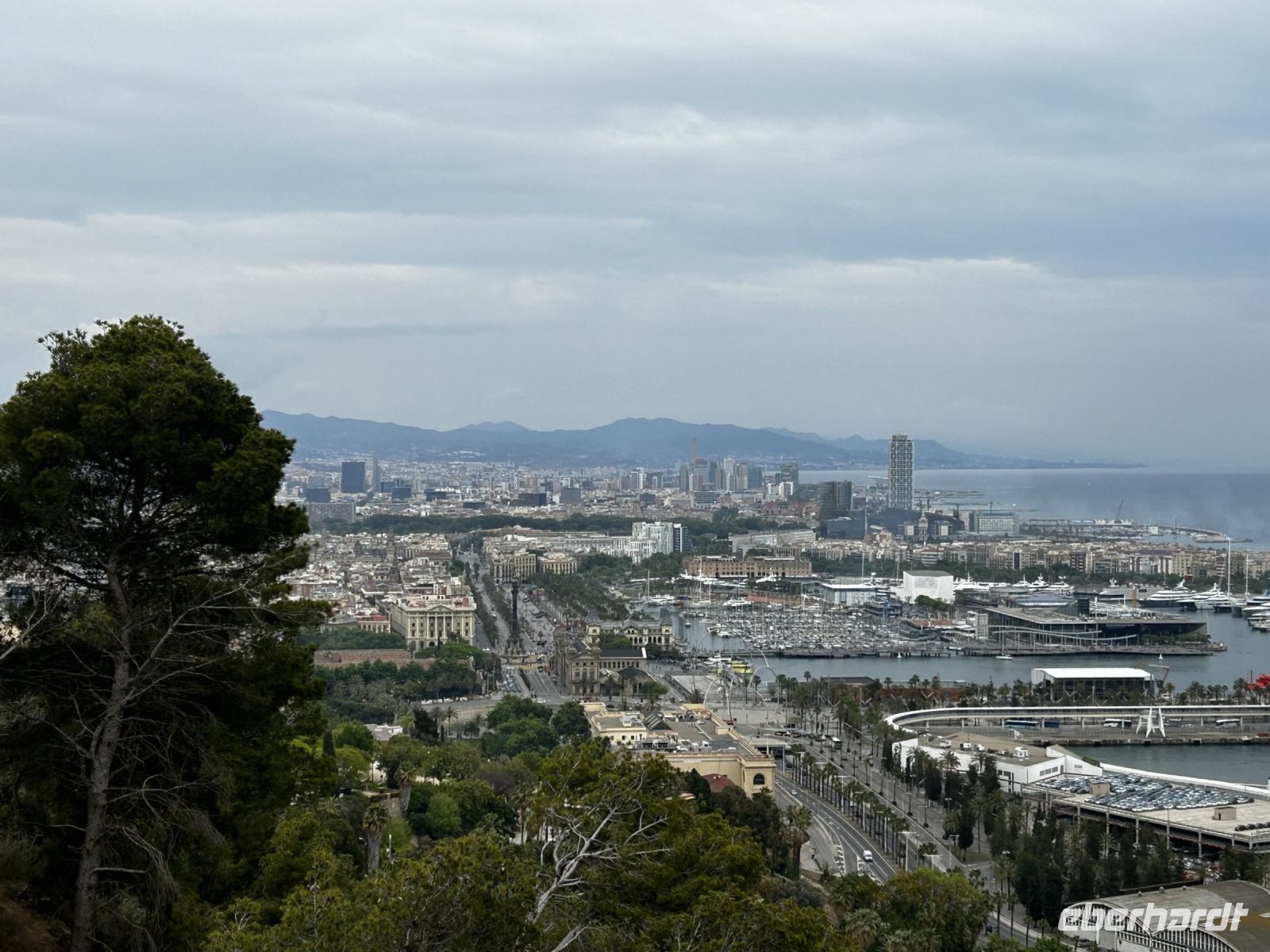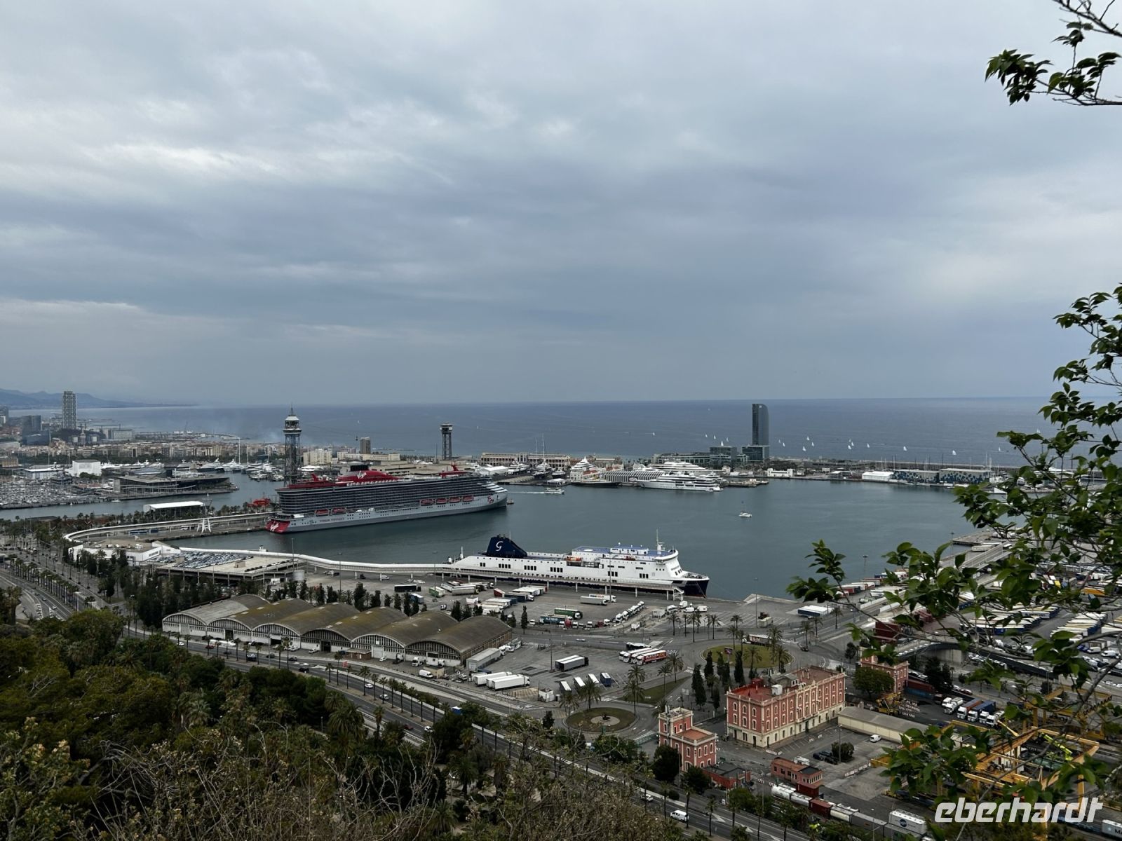 Um das Gesehene zu verarbeiten legten wir eine kleine Mittagspause ein. Unsere Tour führte uns anschließend mit dem Bus durch Barcelona wo wir zum Beispiel am Sporthafen, der Stierkampfarena und dem Arc de Triompf vorbei zu unserem Ziel dem Hausberg, dem Montjuïc fuhren. Von hier konnte man zum einem einen atemberaubenden Blick über ganz Barcelona erhaschen und gegenüberliegend konnte man den Hafen und das hiesige Kreuzfahrtterminal bewundern, wo tatsächlich einige namhafte Reederein vor Anker lagen.