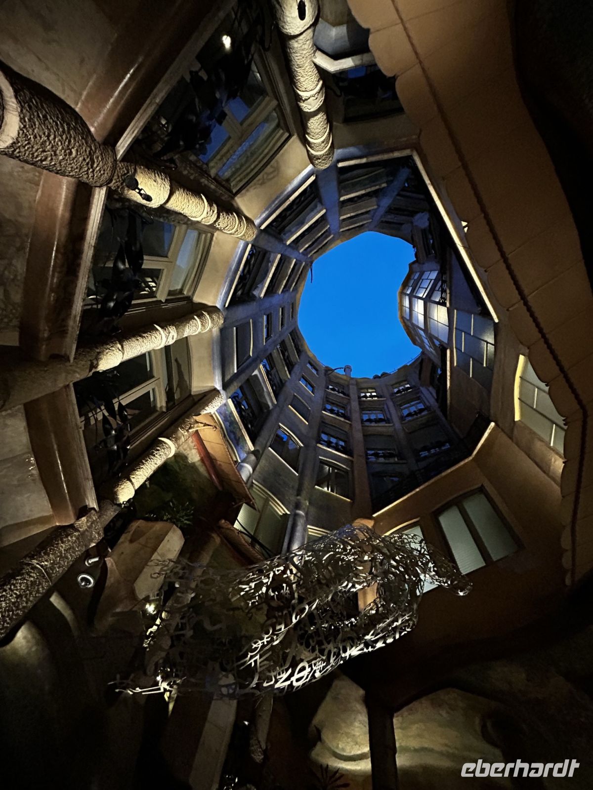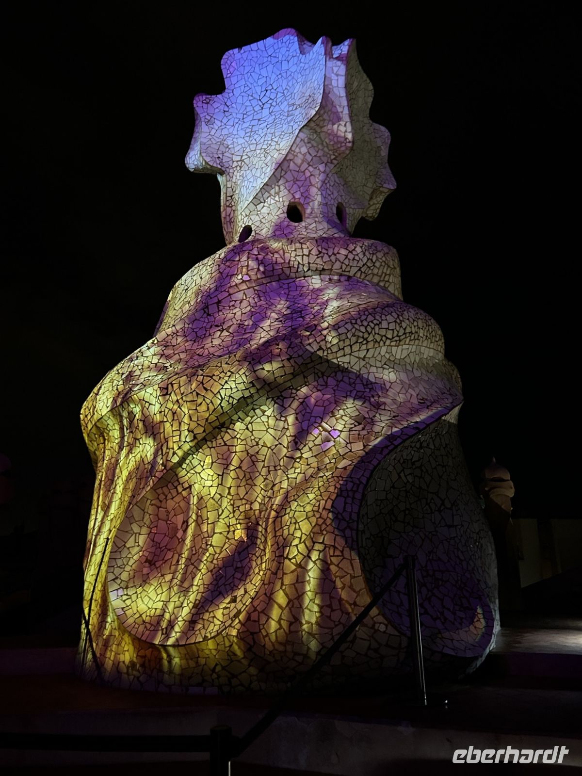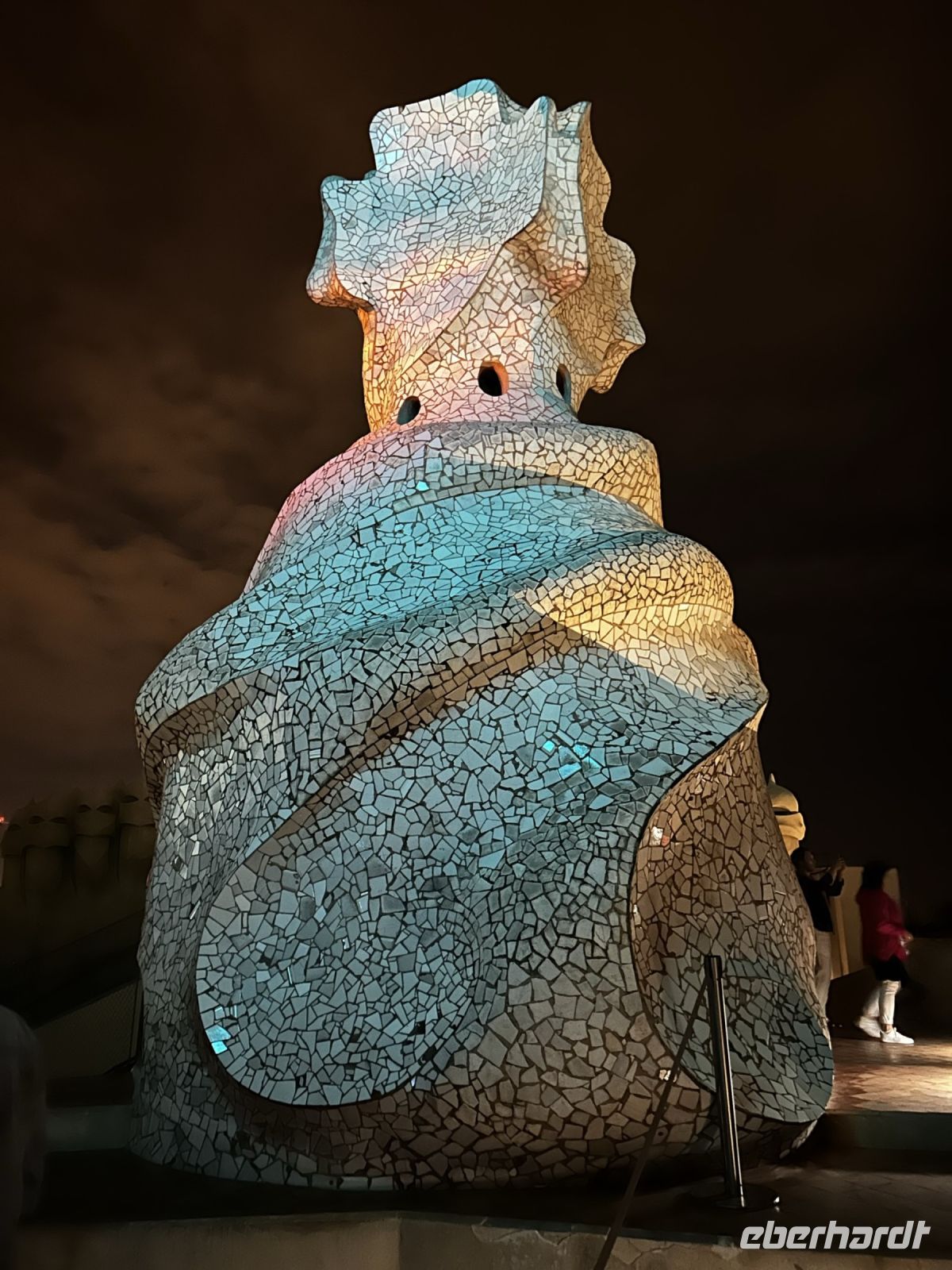 Da einige noch nicht genug von Antonio Gaudi hatten, trafen wir uns am Abend nochmals in der Lobby um gemeinsam einen geführten Rundgang durch die Casa Mila zu machen. Auf der Dachterrasse des Gebäudes angekommen, erwartete uns eine spektakuläre Lichtershow und ein traumhafter Blick über das nächtliche Barcelona, sogar die Sagrada Familia und den Montjuïc konnten wir von hier aus erspähen.