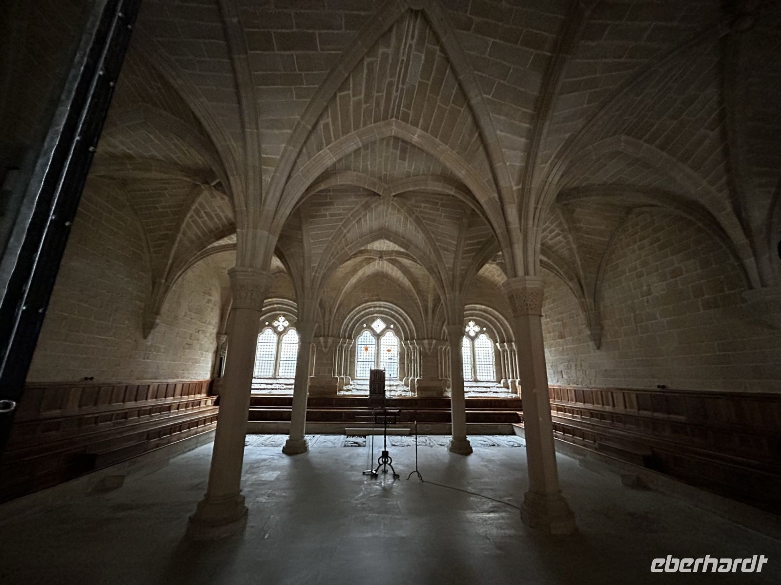 Bei der Besichtigung des Inneren schauen wir uns zunächst den Konzertsaal an, wo wir sogar eine kleine Hörprobe von Johann Sebastian Bachs „Toccata d-Moll“ erhalten.
