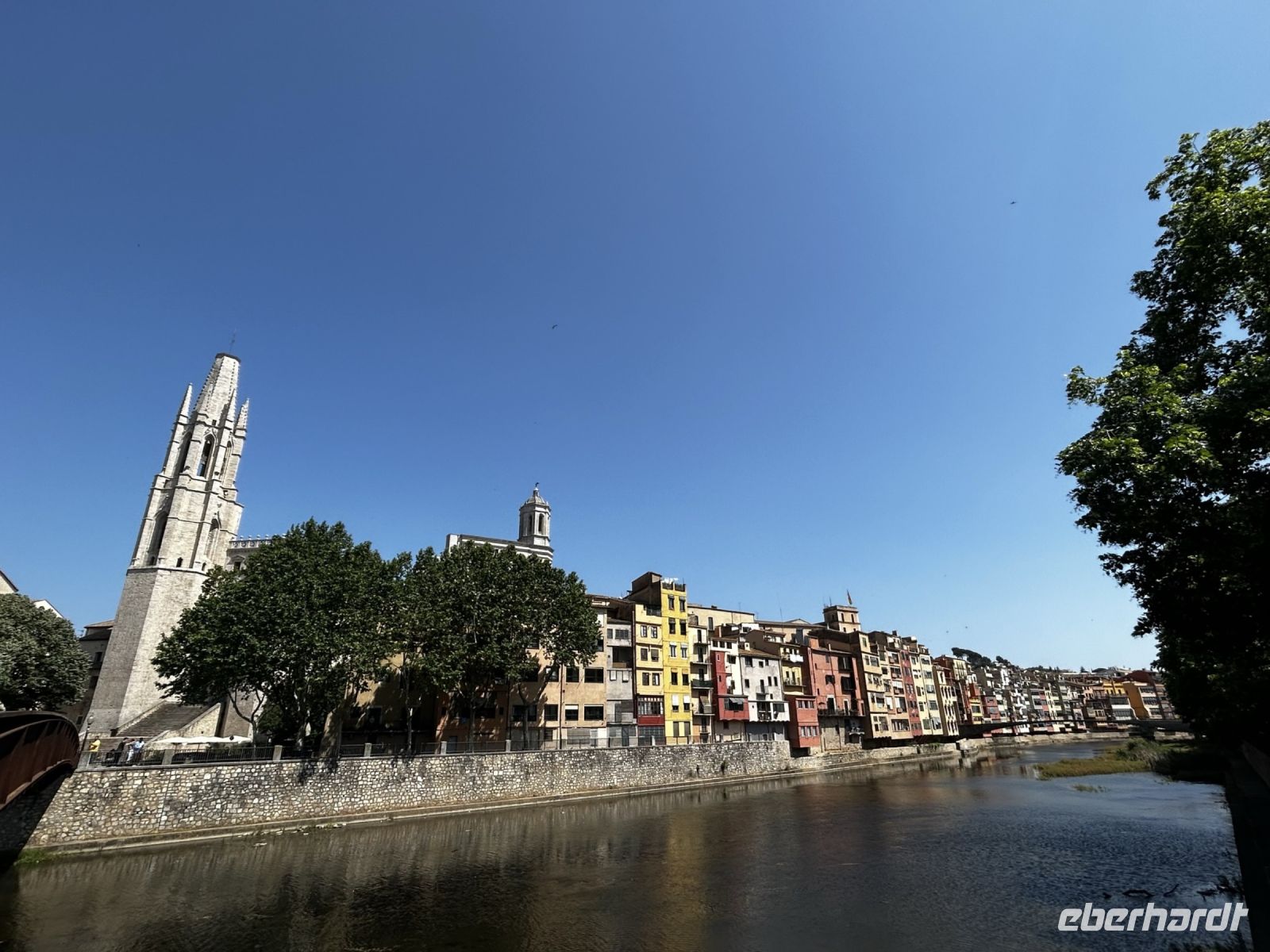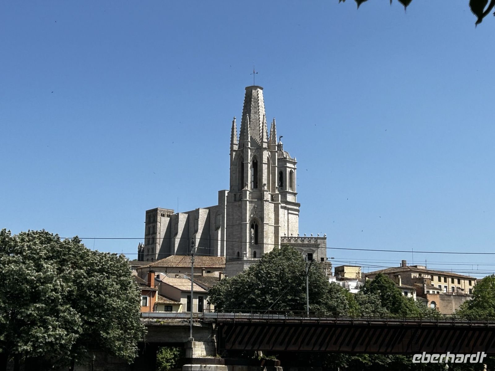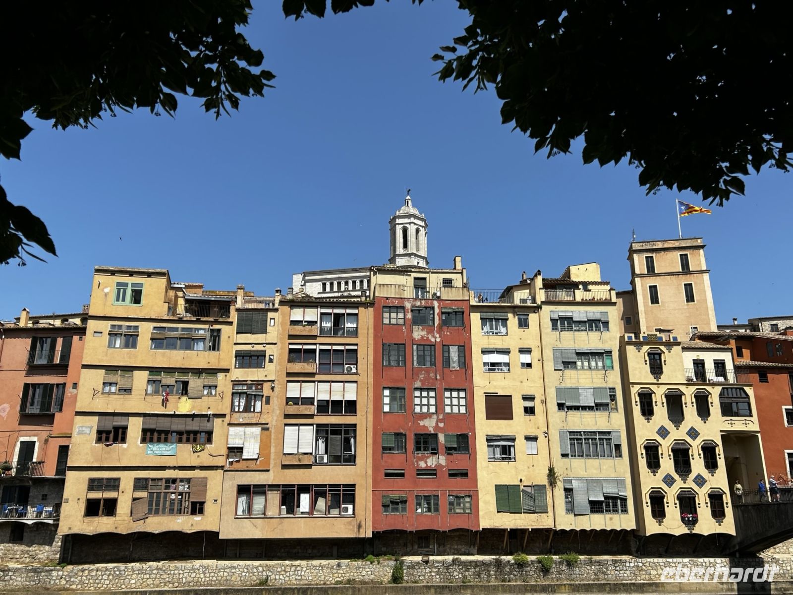 Bereits der Weg in die Stadt beeindruckte uns. Uns fiel sofort die malerisch, bunte Häuserfassade auf die sich im Fluss Onyar wiederspiegelte. Einige Meter weiter überquerten wir die rote Brücke, welche von keinem geringerem als Gustave Eiffel konstruiert wurde und gelangten so in den gotischen Altstadtkern der Stadt.