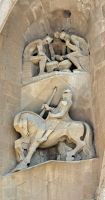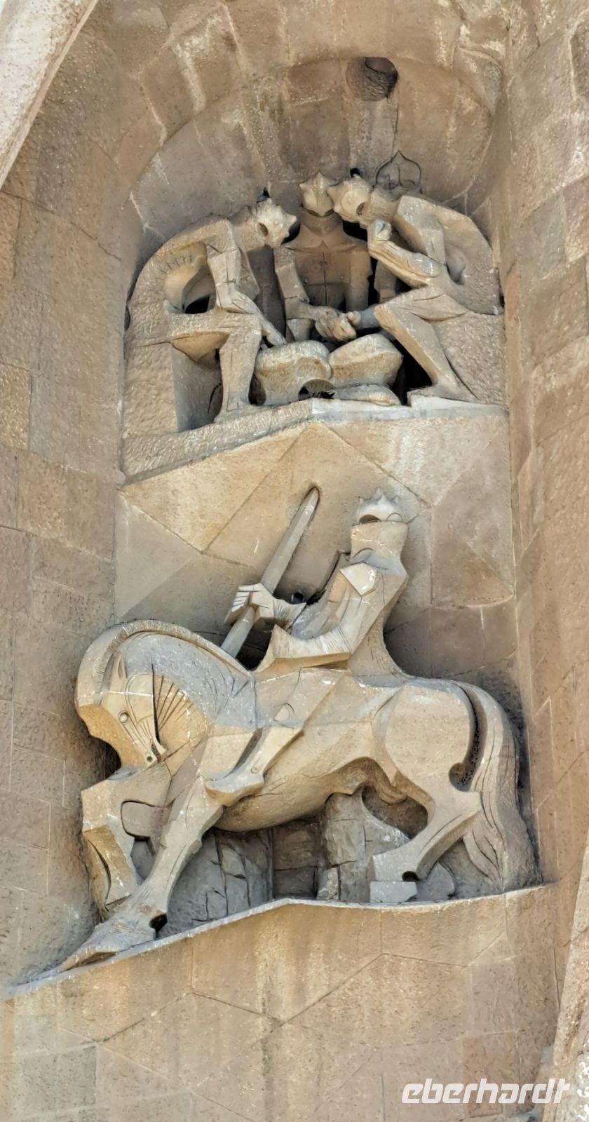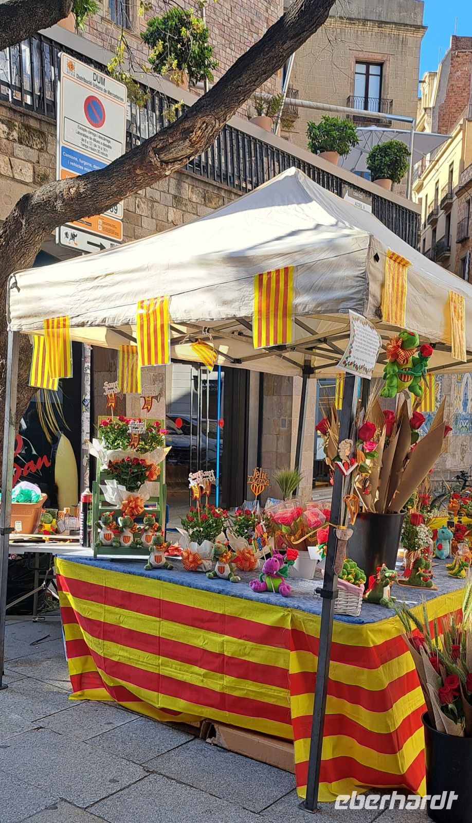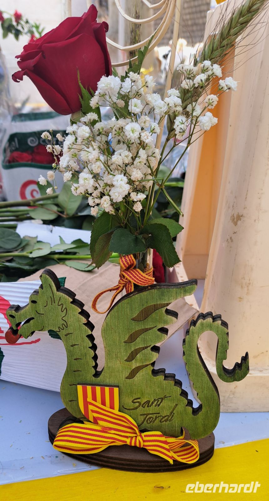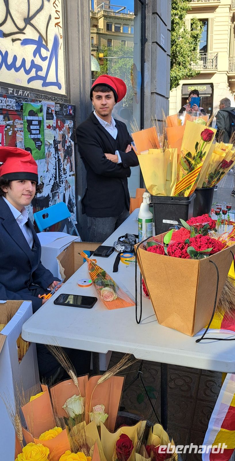 Unser Reiseführer Ingo kommt gutgelaunt zu uns ins Hotel. Nach einer kurzen Einführung starten wir zu Fuß. Heute ist ein ganz besonderer Tag in Barcelona "Dia de St. Jordi" Der Tag des heiligen St. Georg ist einer der bedeutendsten Feiertage in Katalonien und er wird jedes Jahr am 23.04. gefeiert. In Barcelona verwandeln sich die Straßen in ein farbenfrohes Fest der Literatur und Romantik. Der Legende nach hat der heilige St Jordi einen Drachen getötet der das Volk und die Prinzessin in Angst und Schrecken versetzte. Aus dem Blut des Drachen soll eine Rose gewachsen sein, die der Ritter der Prinzessin schenkte. Diese Geschichte symbolisiert Liebe und Mut. Seit 1931 wird der Tag auch mit dem Welttag des Buches verbunden, da er auf den Todestag von Miguel Cervantes und William Shakespeare fällt (23.04.1616). Nun ist es üblich der Herzensdame eine Rose zu schenken und die Dame dem Herzensmann ein Buch. Die Straßen in der Stadt sind mit Blumenständen und Ständen an denen Bücher verkauft werden gesäumt. Einige Autoren sind zugegen und signieren ihre Bücher. Wir erfreuen uns an den schönen Ständen und finden tolle Fotomotive.