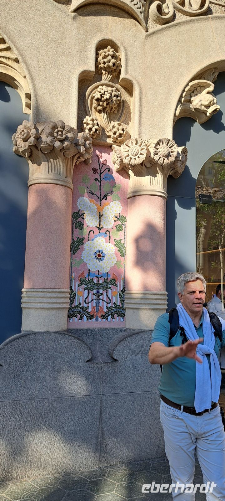 Wir spazieren zunächst mit Ingo über den Passeig de Gràcia. Sie ist eine der prächtigsten Straßen Barcelonas. Die Straße ist berühmt wegen ihrer wunderschönen Gebäude und luxuriösen Geschäfte. Im späten 19. und frühen 20. Jahrhundert wurde die Straße zum Zentrum des katalanischen Modernisme. Sie ist ein lebendiges Museum und ein Symbol für Barcelonas kulturellen Reichtum. Man findet hier sowohl die Casa Batllò und Casa Mila von Gaudi, sowie wunderschöne Architektur von Josep Cadafalch und Lluis Montaner.