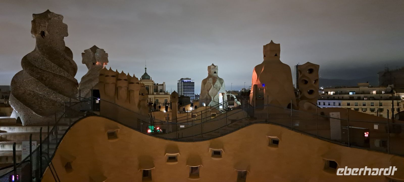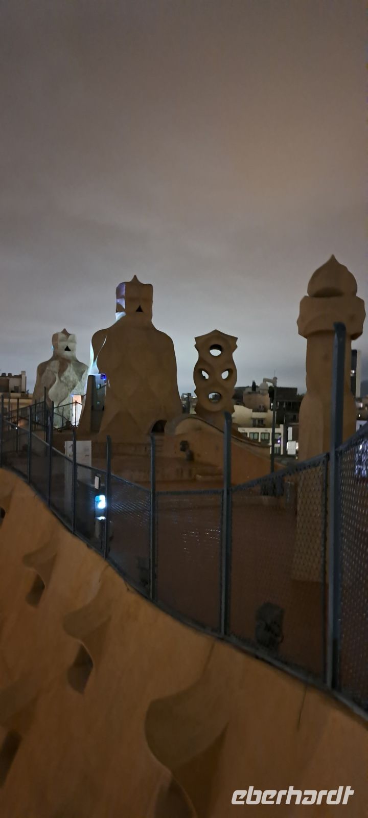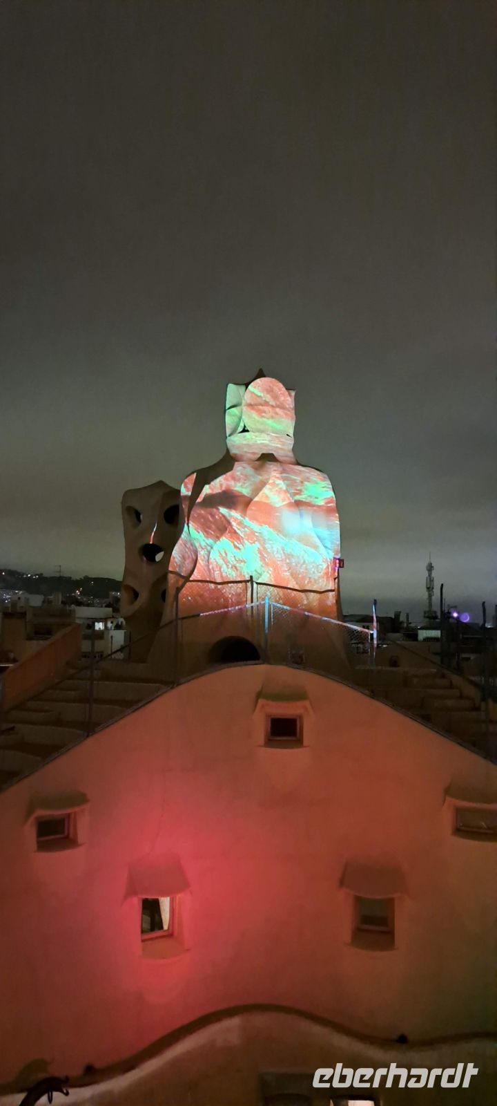 Auf der Dachterrasse erwartet uns, mittlerweile ist es dunkel, eine magische Atmosphäre. Die einzigartigen Schornsteine die wie Krieger ausschauen, werden mit einer spektakulären Lichtershow in Szene gesetzt. Auch die Aussicht von hier oben auf das Lichtermeer von Barcelona ist wunderschön. Anschließend erwartet uns zum Abschluss noch ein Gläschen Cava (spanischer Sekt) Beschwingt gehen wir zu Fuß zum Hotel ein wahrhaft beeindruckender Tag liegt hinter uns, den wir bestimmt lange in Erinnerung behalten werden.
