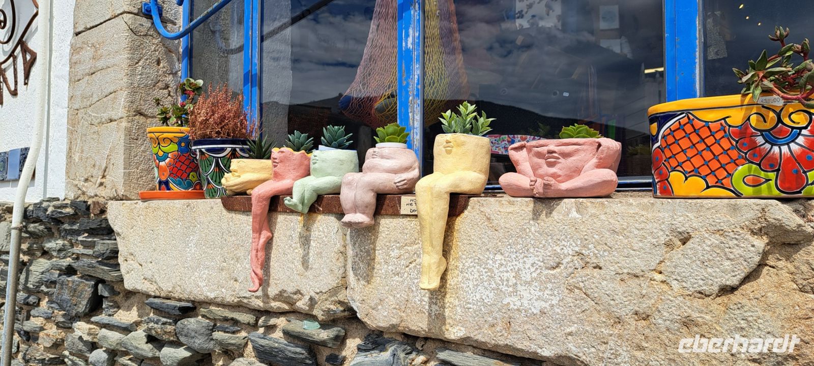 Weiter geht die Fahrt zum Künstlerdorf Cadaqués. Eine kurvenreiche bergige Landschaft bietet uns tolle Aussichten auf das Meer und die Bucht von Roses. Cadaqués war für Dalí ein wichtiger Rückzugsort. Er verbrachte viele Sommer in der Region und ließ sich von der Schönheit der Umgebung inspirieren. Die Stadt und die umliegende Landschaft, einschließlich der nahegelegenen Bucht und der zerklüfteten Küste, sind in vielen seiner Werke zu sehen. Auch eine große Bronzestatue, ein lebensgroßes Denkmal von Dali entdeckt man am Strand. Cadaqués hat eine lange Geschichte als Künstlerkolonie und zog viele berühmte Künstler an, darunter Pablo Picasso und Joan Miró. Die Stadt selbst ist ein beliebtes Motiv in vielen Gemälden und Fotografien. Die charmante Altstadt von Cadaqués mit ihren engen Gassen, weißen Häusern und dem Blick auf das Meer ist ein wunderbarer Ort zum Bummeln. Die Kirche Santa María, die im 17. Jahrhundert erbaut wurde, ist ein markantes Wahrzeichen der Stadt. In Port Lligat, einem kleinen Dorf in der Nähe von Cadaqués, befindet sich das Haus von Salvador Dalí und seiner Frau und Muse Gala.