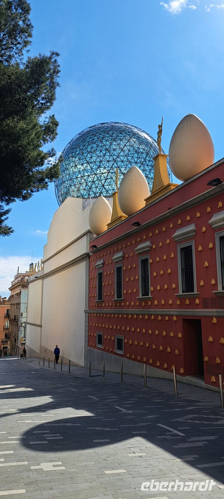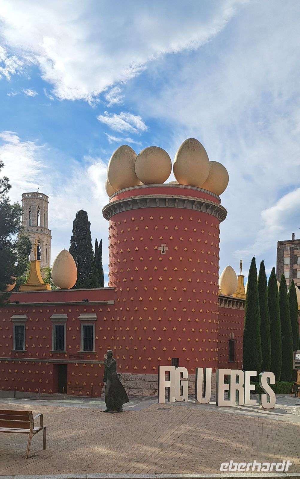 Heute steht der Tag unter dem Motto des ( 1904-1989) Salvatore Dali . Zunächst besuchen wir das Dalí-Museum in Figueres. Wir sind schon zeitig dort, durchaus ein Vorteil da es anfänglich noch ruhig ist und Lorenzo uns etwas erklären kann. Das Museum wurde 1974 eröffnet und ist in einem ehemaligen Theater untergebracht, das Dalí selbst ausgewählt hat. Figueres ist Dalis Geburtsstadt. Das Teatro Municipal de Figueres wurde während des Spanischen Bürgerkriegs beschädigt und später von Dalí in ein Museum umgewandelt.