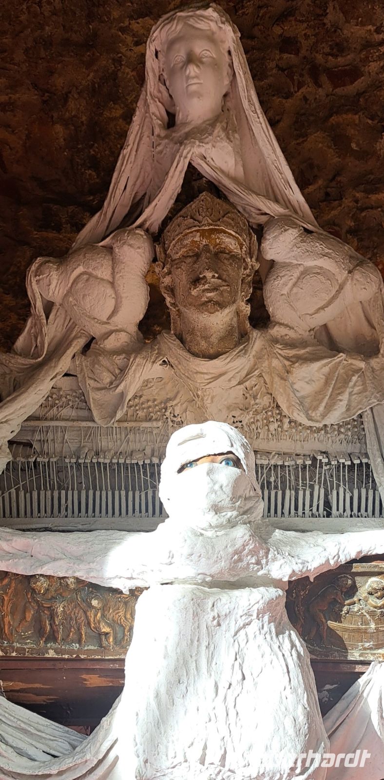 Um den Dali Tag abzurunden geht die Fahrt weiter zum Schlösschen Púbol in der Provinz Girona. Púbol ist ein ganz kleines mittelalterliches Dorf. Dali schenkte das Schlösschen seiner Frau Gala im Jahr 1969. Es wurde zu Galas Rückzugsort, den Dali nur nach schriftlicher Einladung betreten durfte. (nicht zuletzt deshalb weil Dali eine Liaison mit Amanda Lear hatte). Heute ist das Schlösschen ein Museum, mit dem Dali typischen Stil . Es gibt surrealistische Möbel und eigenwillige Dekorationen. Im wunderschönen Garten findet man Skulpturen von Dali, wie zb den spinnenbeinigen Elefanten. Gala wurde in ihrem Schloss in einer Krypta bestattet. Auch das letzte Bild Dalis ist hier zu sehen. Nach dem Tod von Gala lebte er noch eine Weile in dem Schlösschen bevor eine Krankheit ihm das malen unmöglich machte und er in Figueras gestorben ist und in seinem Museum beigesetzt wurde.