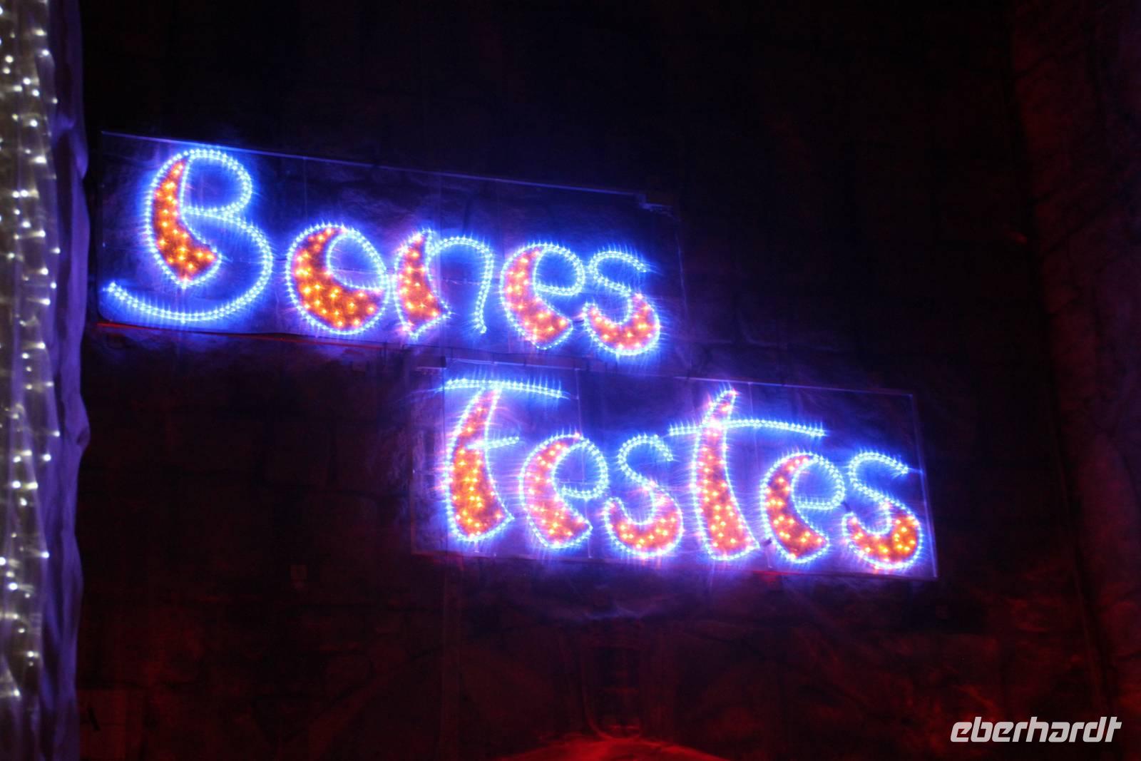 Ob Kaffee oder ein Stündchen Schlaf - jeder hatte seine Methode, um pünktlich um acht wieder munter und mit bester Feierlaune parat zu stehen. Denn es sollte eine lange und lustige Nacht werden. Wir spazierten zum spanischen Dorf, machten dort in Ruhe einen Rundgang durch die verschiedenen Provinzen der Stadt, um kurz vor neun im Restaurant TIP TOP zu enden, in dem unsere Silvesterfeier stattfinden sollte.