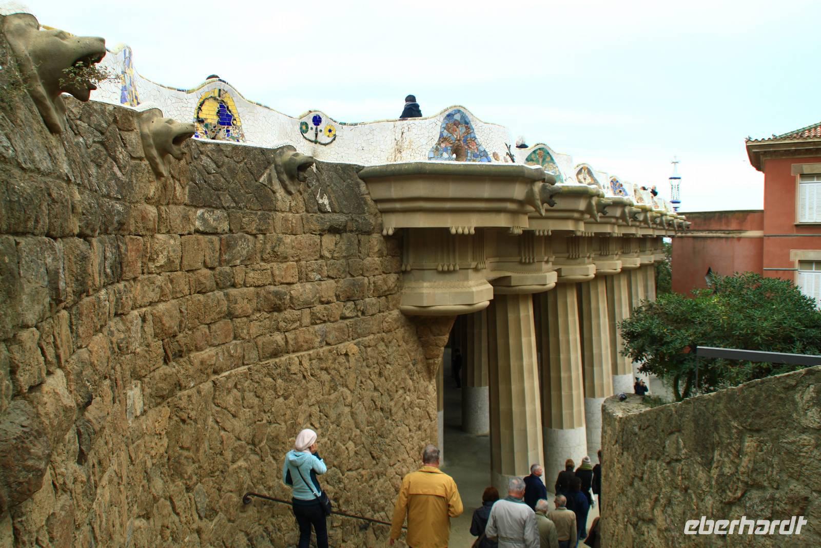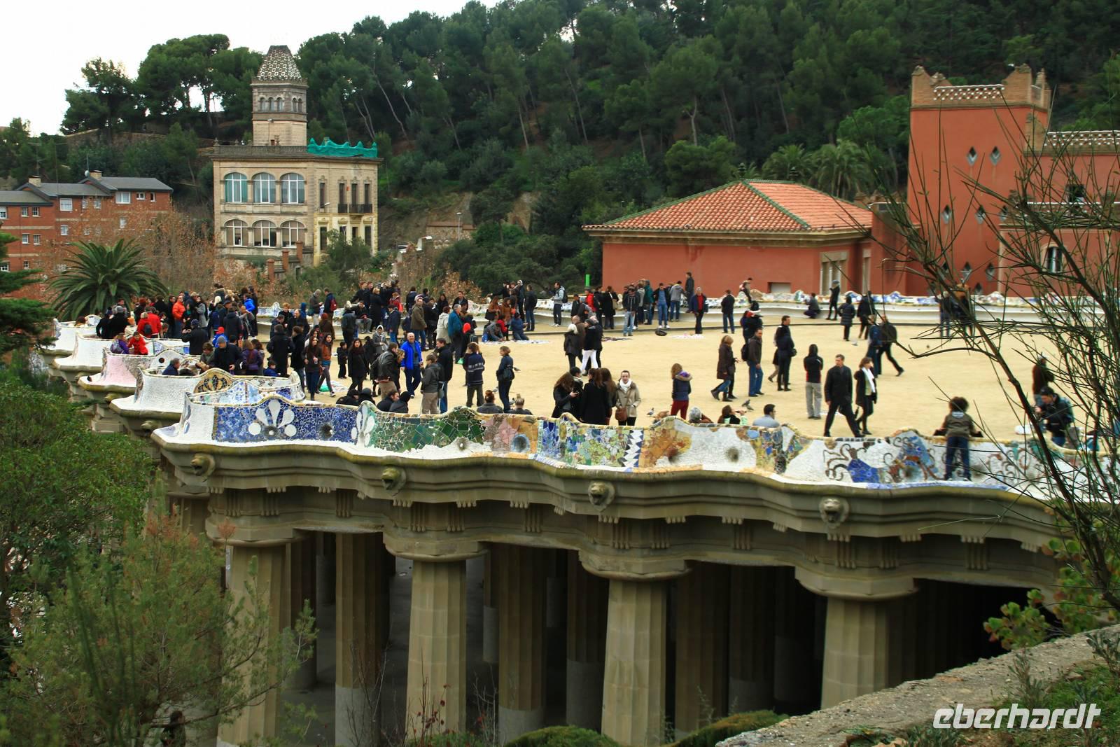 Anschließend fuhren wir vorbei an weiteren Villen von Gaudí zum Parc Güell, in dem sich der Architekt ebenfalls kreativ austoben durfte und somit seine Spuren mit der längsten Bank der Welt und den Hexenhäusern sowie weiteren Bauten hinterlassen hat. Wir spazierten daher ca. 1,5 Stunden durch den Park, tranken Kaffee und bewunderten das Maß an Kreativität des Architekten, bevor wir uns zurück in die Innenstadt begaben. Wieder an der Passeig de Gràcia angekommen, hatten alle die Möglichkeit am oberen Ende dieser Luxusladenstraße auszusteigen, bis hinunter zum Placa Catalunya zu fahren und hier noch eine Runde durch die Stadt zu beginnen oder mit zurück ins Hotel zu fahren und den fehlenden Schlaf nachzuholen. Am Abend trafen sich alle zum letzten gemeinsamen Abendessen und berichteten von den Erlebnissen des Nachmittags.