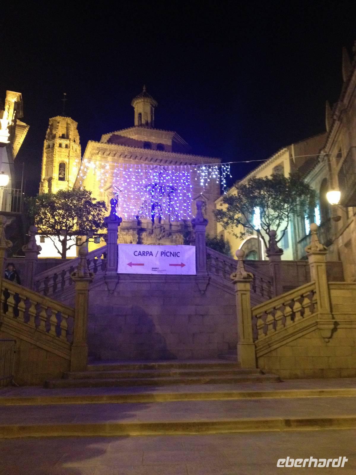 Der letzte Tag des Jahres 2014 war angebrochen und wir wollten diesen nutzen, um die Altstadt Barcelonas besser kennenzulernen. Mit der Metro fuhren wir bis zum Palau de la Musica, einem Konzertgebäude von Lluis Montaner ganz im Stil des Modernisme. Hier waren wir auch schon mitten drin im Gassengewirr der Altstadt. Auf unserem Rundgang bestaunten wir zahlreiche historische Bauten wie die Kirche Santa Maria del Mar, die Kathedrale und gelangten schließlich über den Plaza Major zur weltbekannten Einkaufsstraße La Rambla. Der Nachmittag stand zur freien Verfügung, bevor wir uns am Abend wieder trafen, um gemeinsam zu Poble Espanyol, dem spanischen Dorf zu laufen. In diesem Freilichtmuseum, das 1929 für die Weltausstellung erbaut wurde, finden sich heute zahlreiche Restaurant. Unsere Silvesterfeier fand im Llavador del Isis statt. Die typischen spanischen Wundertüten, die wir als Begrüßung bekamen, enthielten allerlei lustige Utensilien, wie Luftschlangen, Tröten und Hütchen. So wurde es ein lustiger Abend, der seinen Höhepunkt um Mitternacht auf dem Plaza Major mit dem traditionellen Essen von Weintrauben und einem kurzen Feuerwerk, dem einzigen in Barcelona, fand.