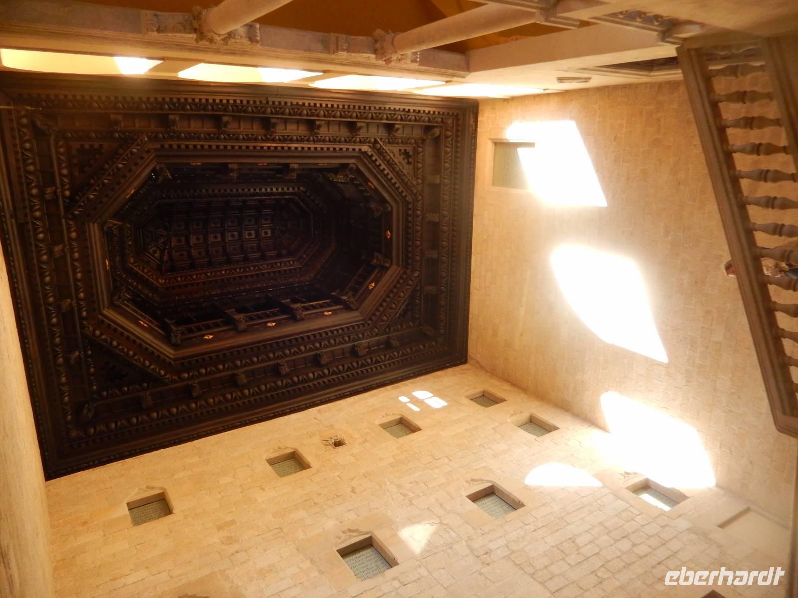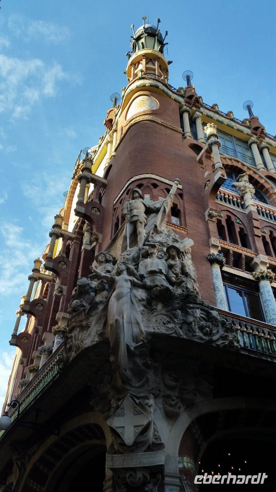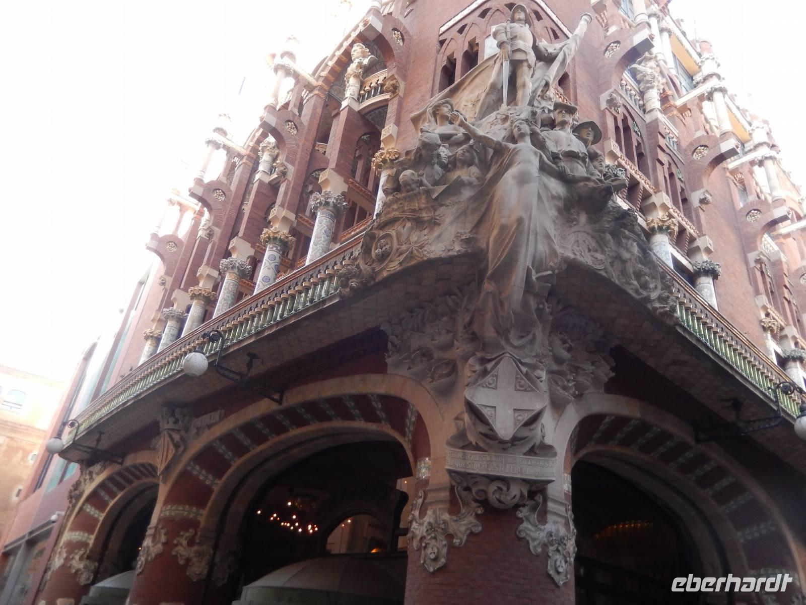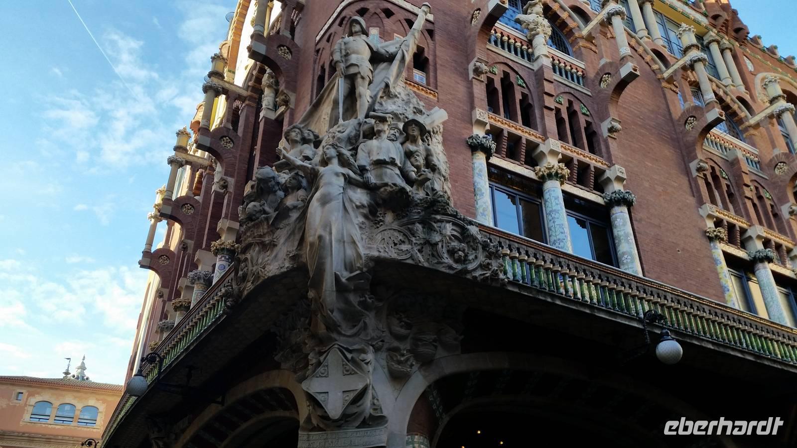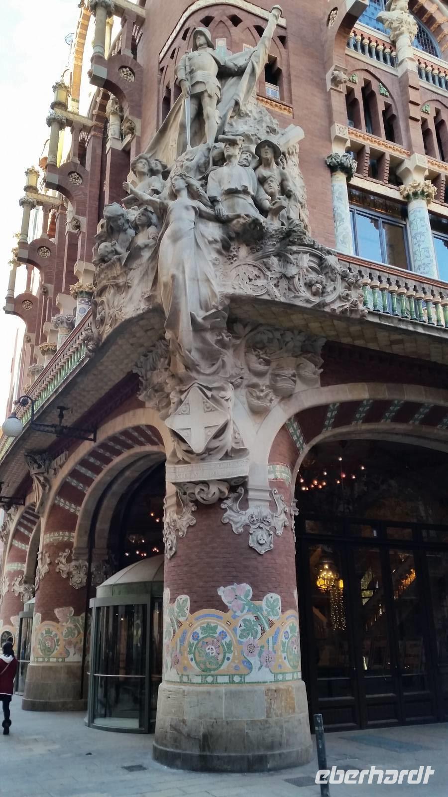 Der letzte Tag des Jahres 2015 war angebrochen und wir wollten diesen nutzen, um die Altstadt Barcelonas besser kennenzulernen. Mit der Metro fuhren wir bis zum Catalunya Platz und von dort gemeinsam mit Reiseleiter Lorenzo durch die Gassen bis zu der berühmten Palau de la Musica, einem Konzertsaal von katalanischen Architekten Lluis Montaner ganz im Stil des Modernisme. Der Bau dauerte von 1905 bis 1908. Schon von draussen sah es wunderschön aus.