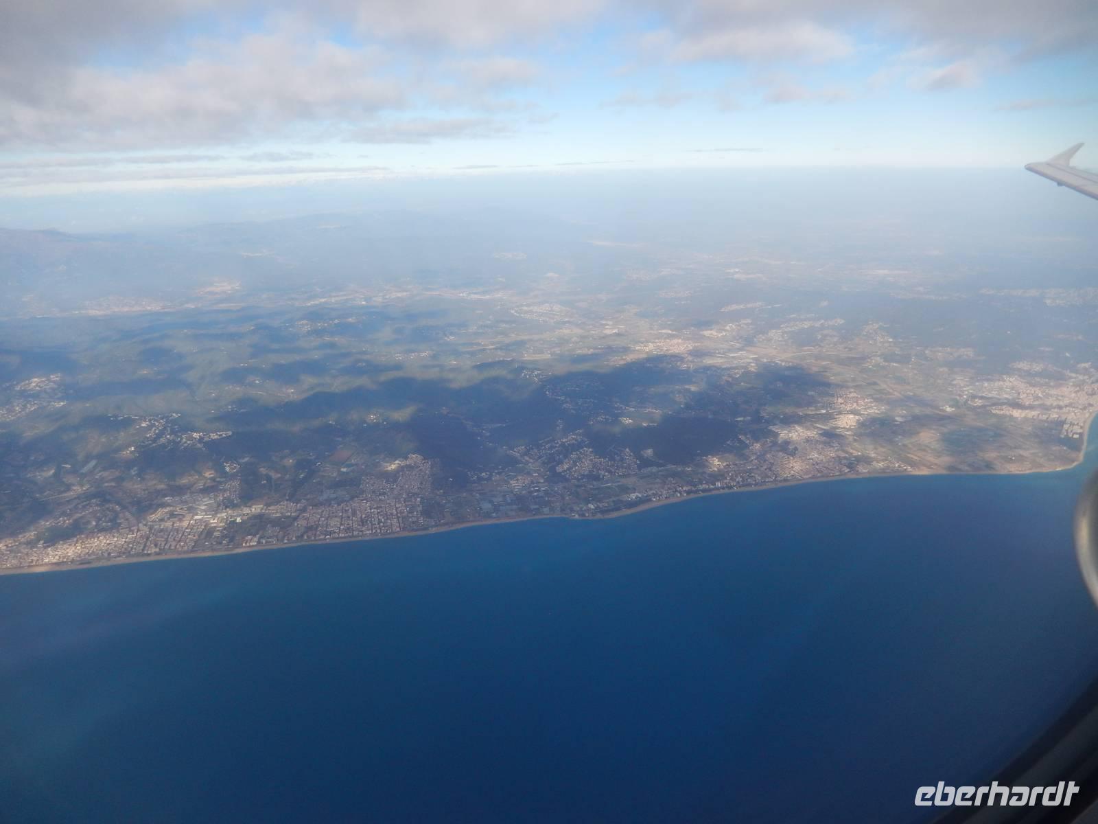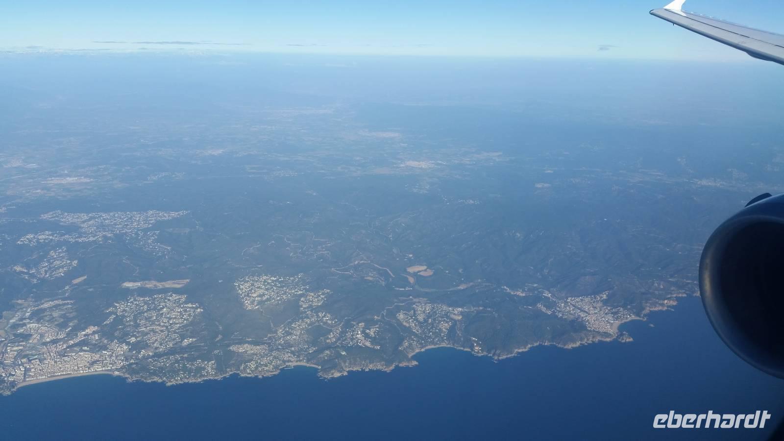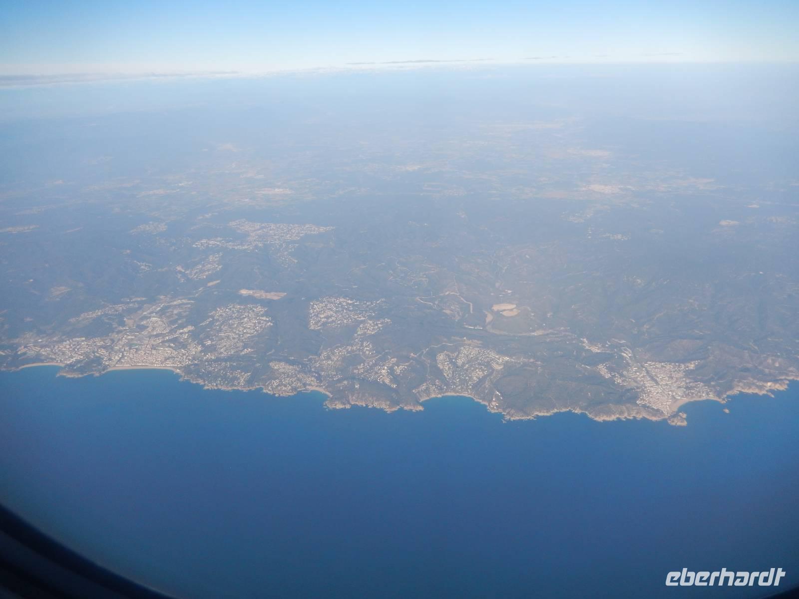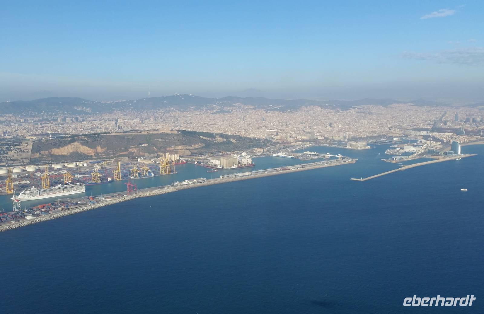 Nach dem die 21 Reisegäste, die ab Dresden fliegten, am Informationsschalter eintraffen und die Koffer abgegeben wurden, startete das Flugzeug von Lufthansa etwa gegen 06:25 Uhr in Richtung Frankfurt, wo wir dort noch 4 Gäste aus Frankfurt und 2 aus Paderborn trafen. Um 10 Uhr ging es weiter nach Spanien und somit der Sonne entgegen. Wir fliegten über Frankreich und konnten tolle Fotos machen. Als wir den Anflug auf Barcelona nahmen, konnten wir schon die ganze Stadt von oben betrachten. "Gut, dass wir in den Süden fliegen." Wir verließen Deutschland und fanden uns mittags in Barcelona. Bei einer ersten Stadtrundfahrt werden wir bereits das Gelände von Olympia auf dem Berg Montjuic entdeckten und vom Mirador del Alcalde, einem Aussichtsplatz auf Montjuic, einen traumhaften Ausblick über die ganze Stadt und das Meer, geniessen.