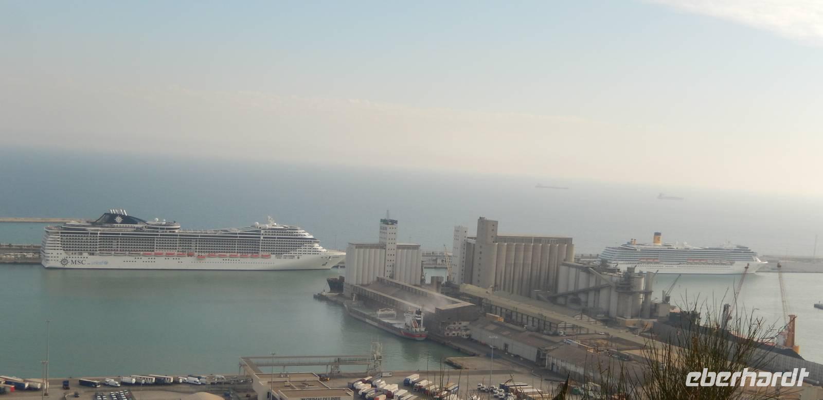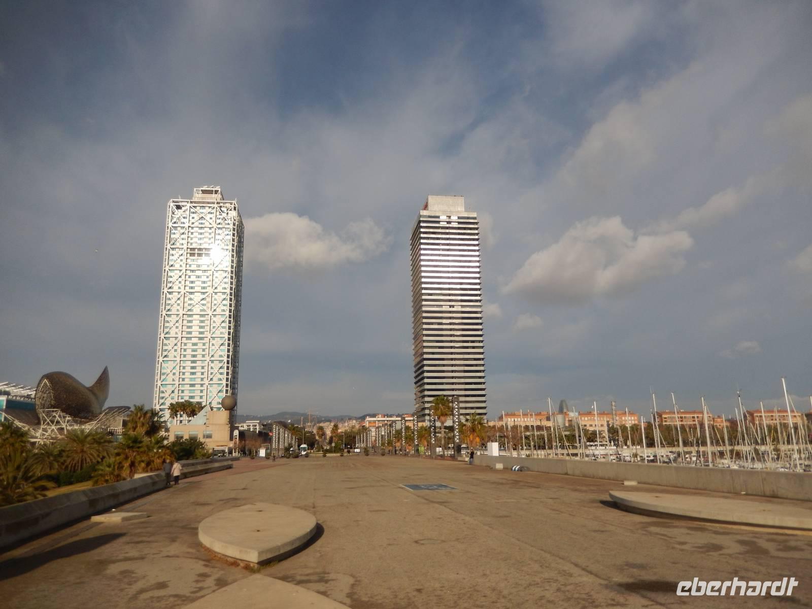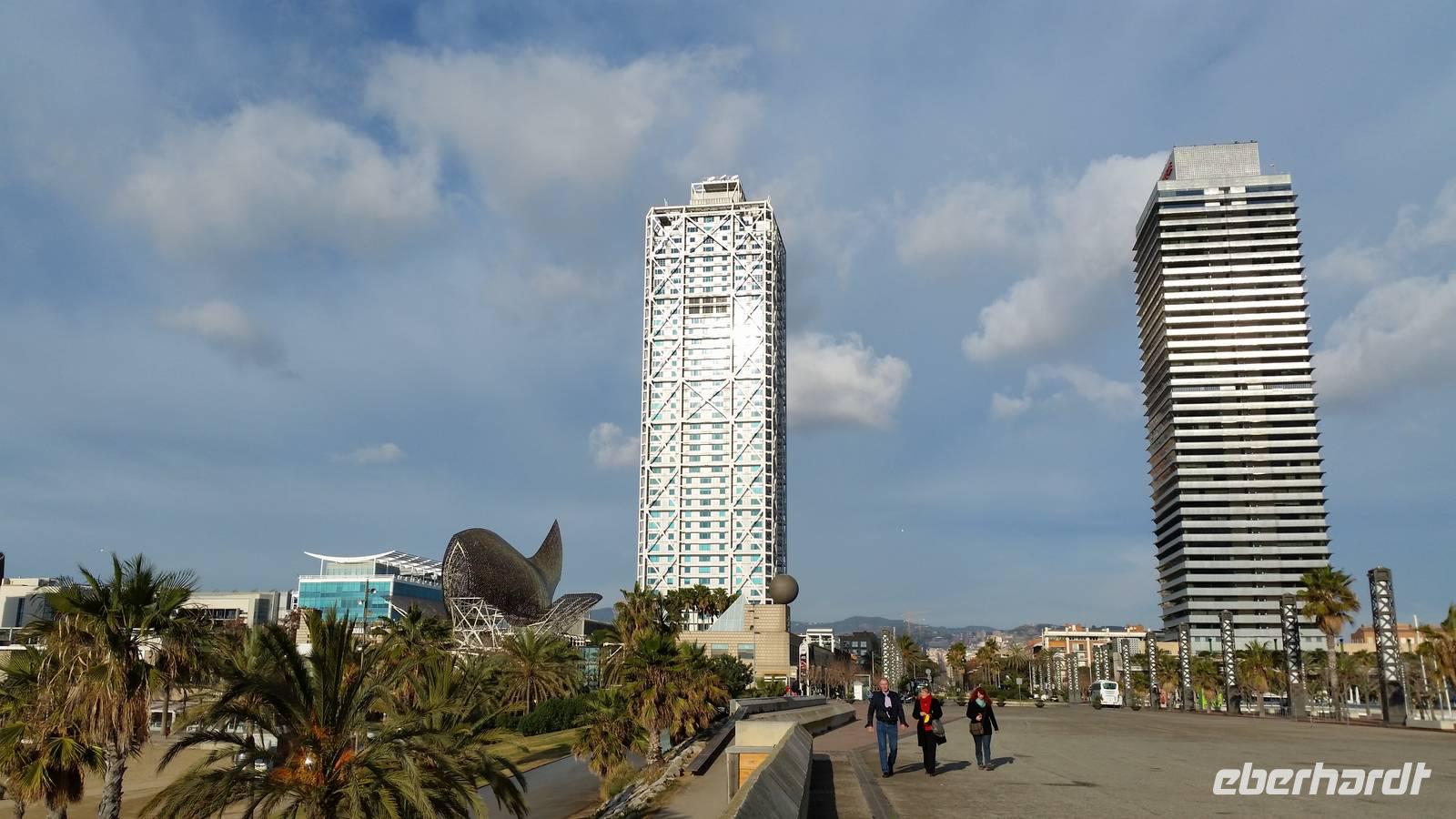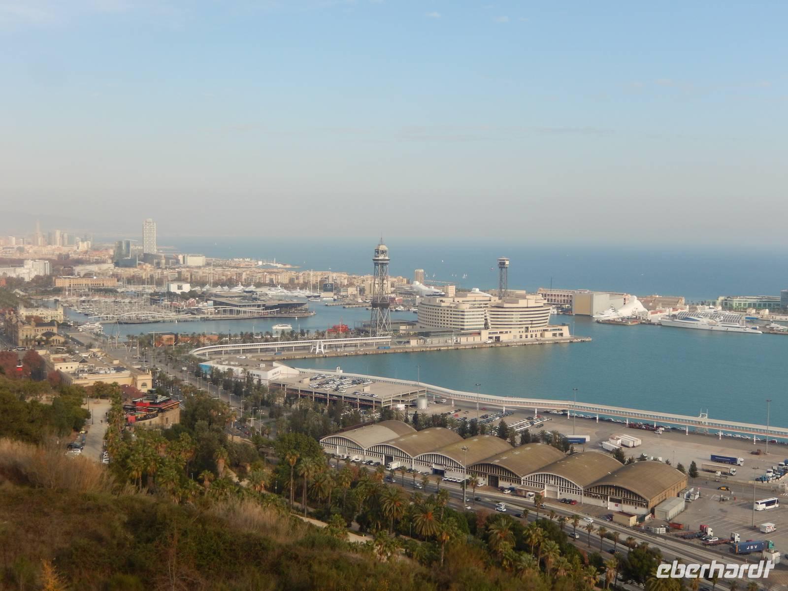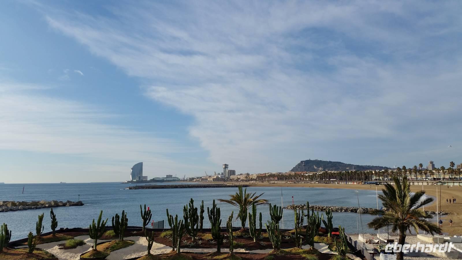 Nach einem kurzem Blick am Olympischen Stadium und einem Stop an der Plattform mit unvergesslichem Blick über den Hafen von Montjuic und ganz Barcelona, erlebten wir eine kurze, aber sehr eindrucksvolle Stadtrundfahrt. Das Licht war wunderschön und das Wetter war prima. Zu gut. Es sah so aus als wir in März oder schon Frühling wären. Herrlich und genau richtig, um vom da oben Fotos über die ganze Stadt zu machen. Wir fuhren mit dem Bus durch dem Hafen, am Strand vorbei, durch das Zentrum, am Columbus Denkmal und der teuresten Strasse Paseo de Gracia vorbei, wo zwei berühmte Antonio Gaudi Werke (Casa Batló und Casa Pedrera) sich befinden.