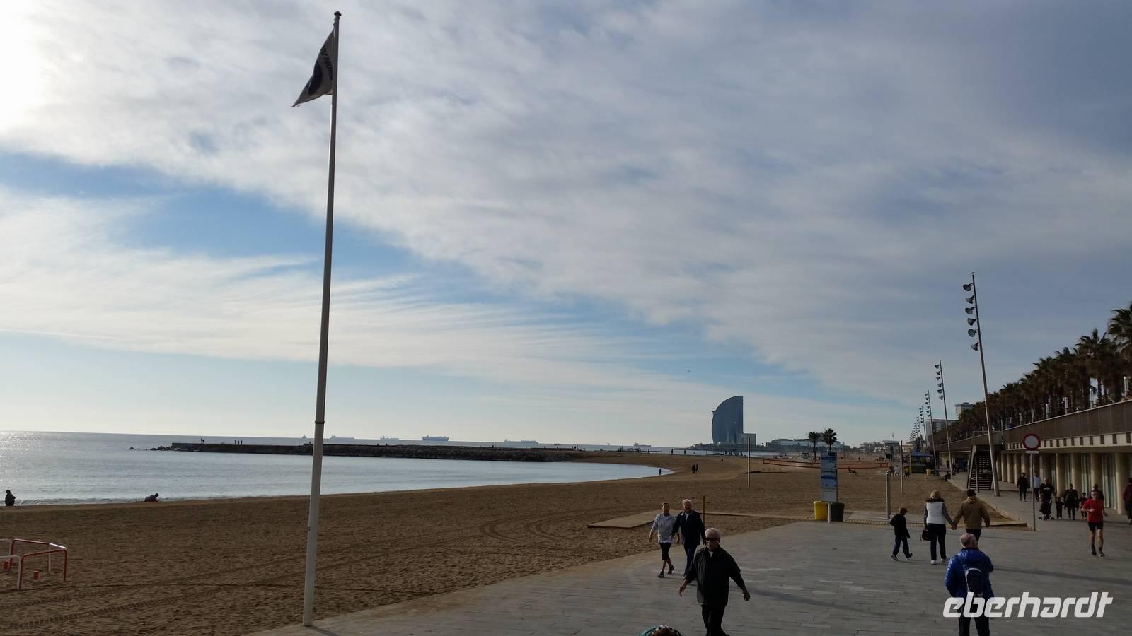 Reisebegleiter Benjamin fuhr mit dem U Bahn und mit 13 Gästen bis zum Hafen und liefen immer an der Promenade Strand zurück. Das Wetter war herrlich im Vergleich mit Deutschland. Wir hatten Sonne und ca. 17 Grad und in Deutschland um die null Grad heute. An der Olympischen direkt am Strand machten wir eine kleine Pause direkt am Strand. Die Wassertemperatur war genau richtig und es war herrlich: am 2.Januar ins Meer so zu sein, in Deutschland schon unvorstellbar.