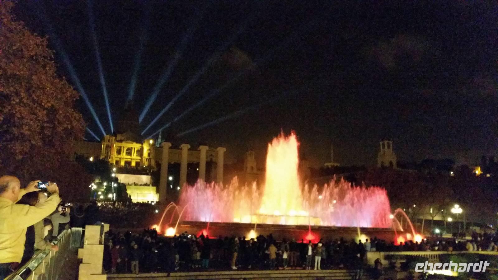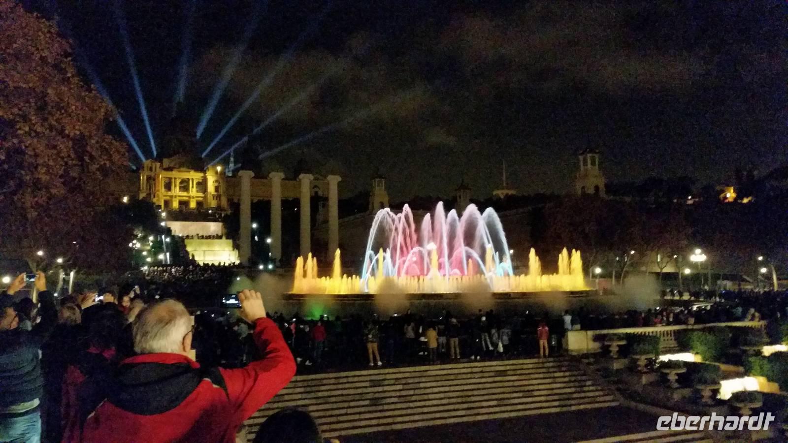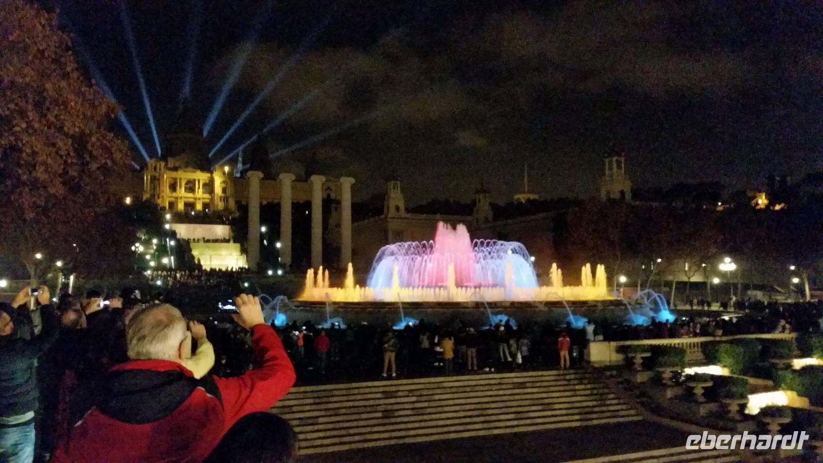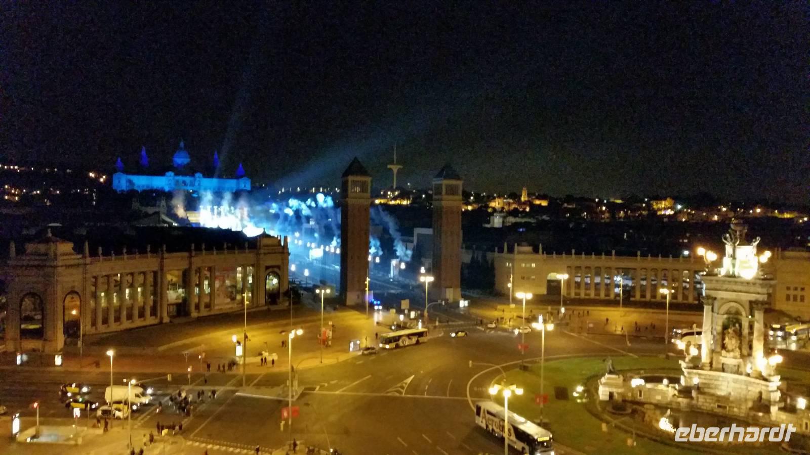 Wir beendeten diesen Tag wieder bei einem gemeinsamen Abendessen über den Dächern der Stadt, in der ehemaligen Stierkampfarena und heutigen Einkaufs-und Restaurantsoase an der Placa d´Espanya. Nach dem Abendessen spazierten wir bis zu dem berühmten Licht,-und Musikbrunnen von Plaza de Espanya. Ein Spektakel aus Musik, Lichter und Wasserspielen. Heute 1. Januar war es im Betrieb und wir könnten es gemeinsam sehen. Es war einfach genial, da die Musik immer im Einklang mit den verschiedenen Wassersrpüngen und Lichteffekten spielte.