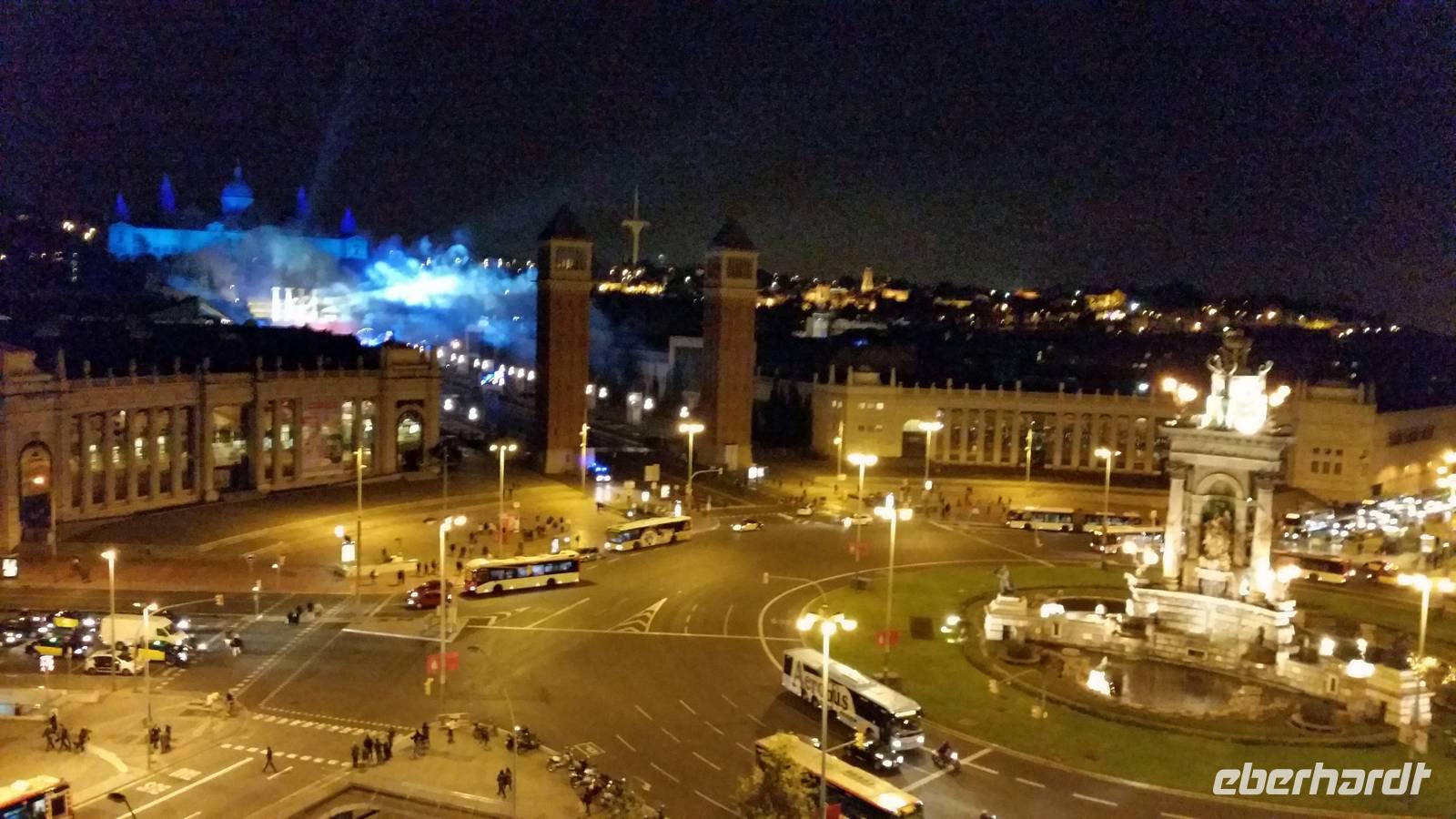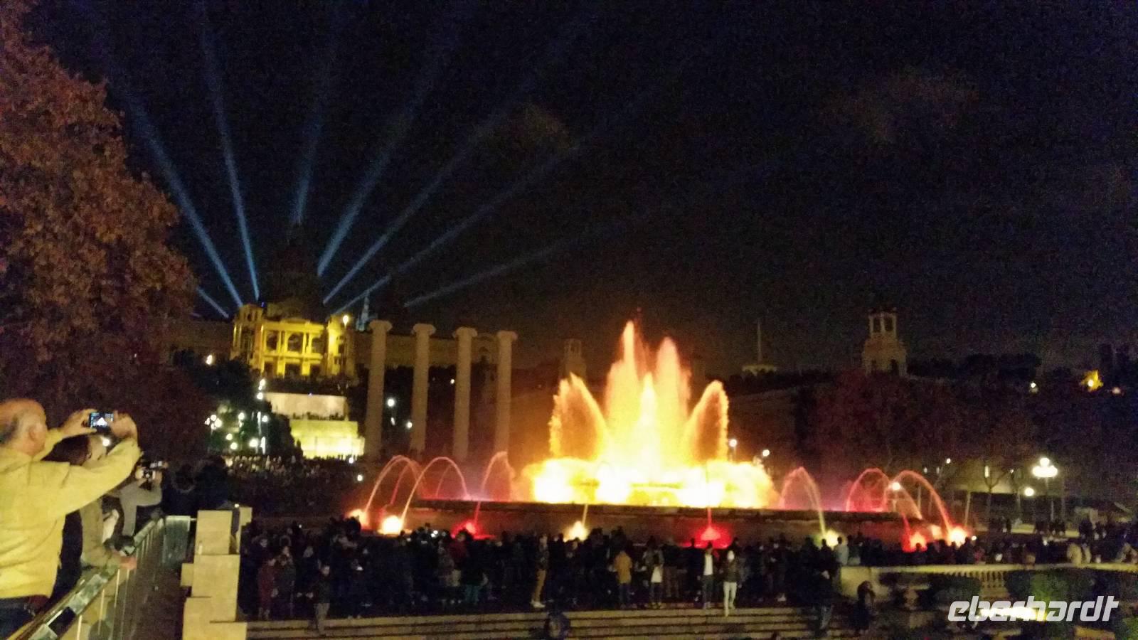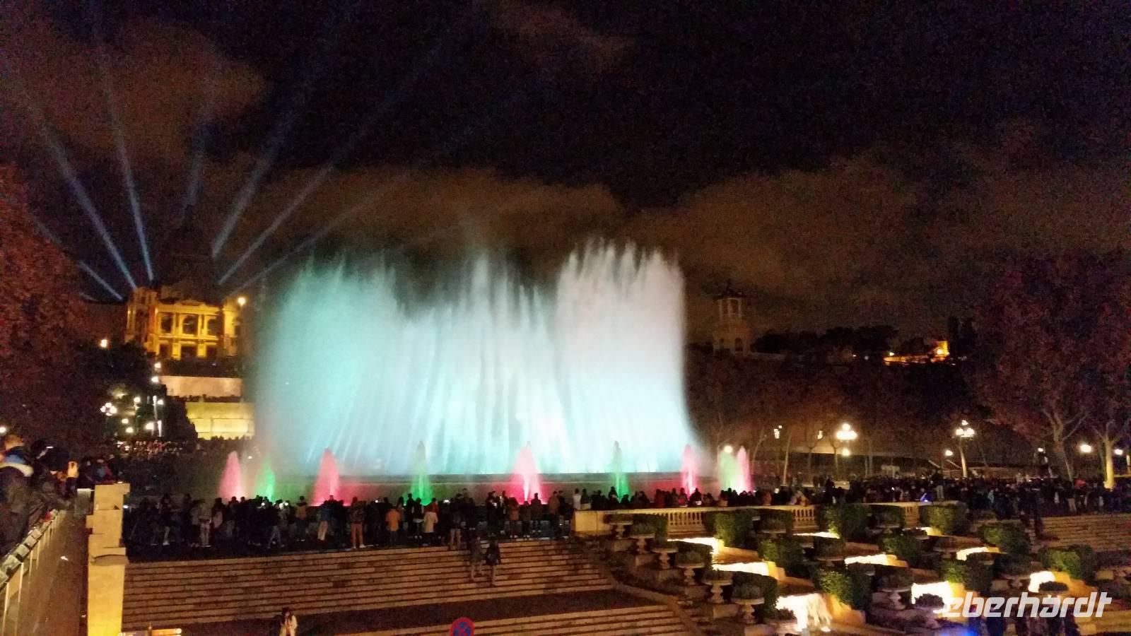 Wir beendeten diesen Tag wieder bei einem gemeinsamen Abendessen über den Dächern der Stadt, in der ehemaligen Stierkampfarena und heutigen Einkaufs-und Restaurantsoase an der Placa d´Espanya. Nach dem Abendessen spazierten wir bis zu dem berühmten Licht,-und Musikbrunnen von Plaza de Espanya. Ein Spektakel aus Musik, Lichter und Wasserspielen. Heute 1. Januar war es im Betrieb und wir könnten es gemeinsam sehen. Es war einfach genial, da die Musik immer im Einklang mit den verschiedenen Wassersrpüngen und Lichteffekten spielte.