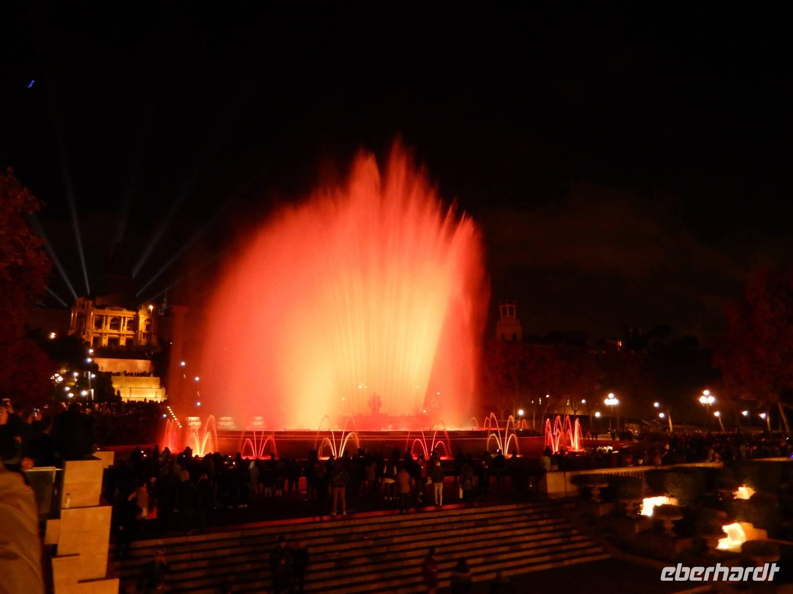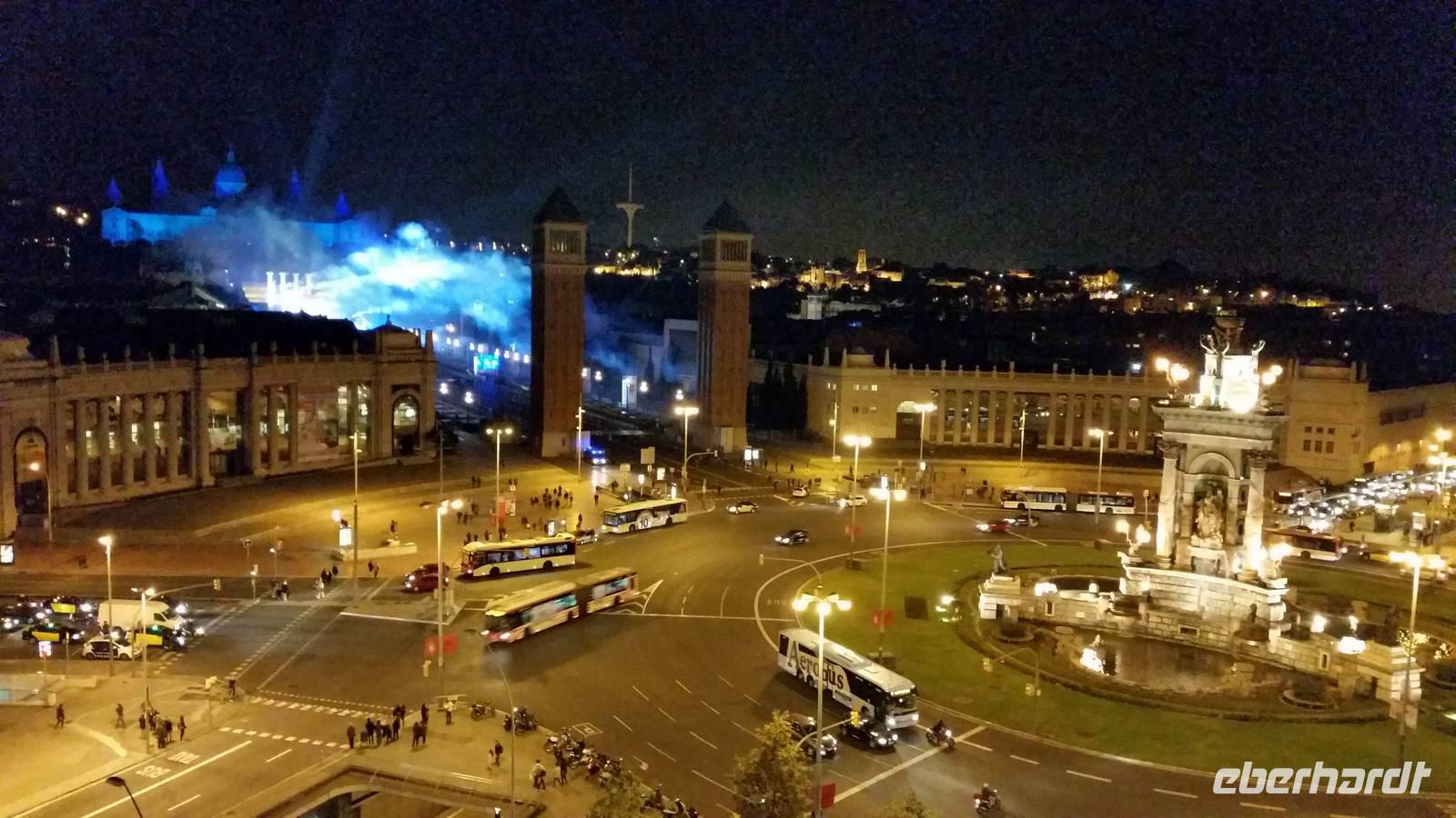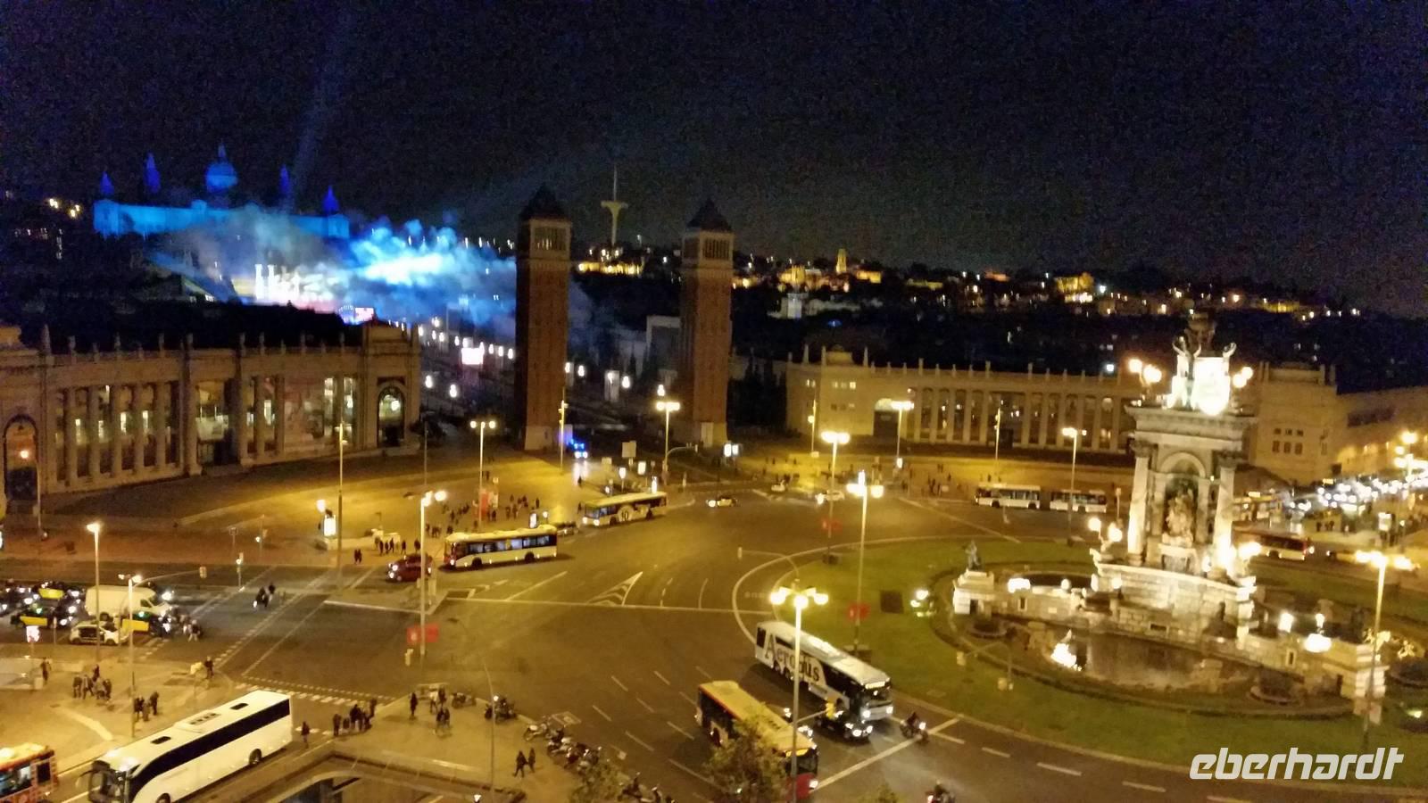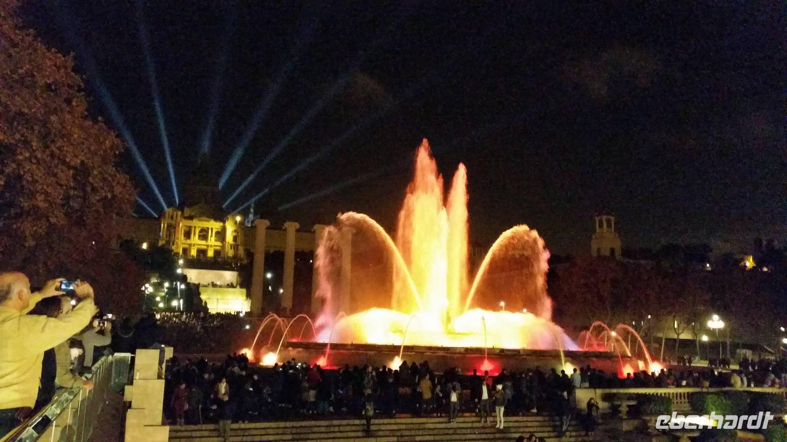 Wir beendeten diesen Tag wieder bei einem gemeinsamen Abendessen über den Dächern der Stadt, in der ehemaligen Stierkampfarena und heutigen Einkaufs-und Restaurantsoase an der Placa d´Espanya. Nach dem Abendessen spazierten wir bis zu dem berühmten Licht,-und Musikbrunnen von Plaza de Espanya. Ein Spektakel aus Musik, Lichter und Wasserspielen. Heute 1. Januar war es im Betrieb und wir könnten es gemeinsam sehen. Es war einfach genial, da die Musik immer im Einklang mit den verschiedenen Wassersrpüngen und Lichteffekten spielte.