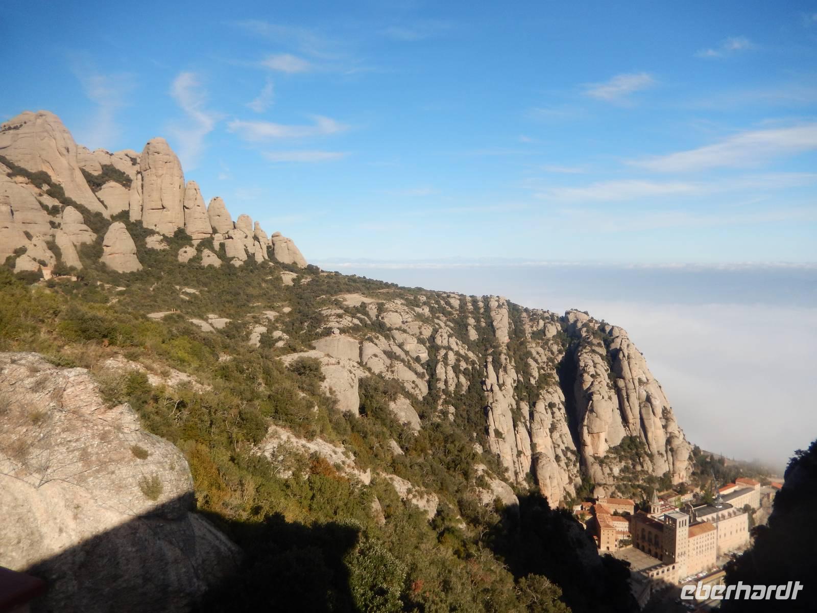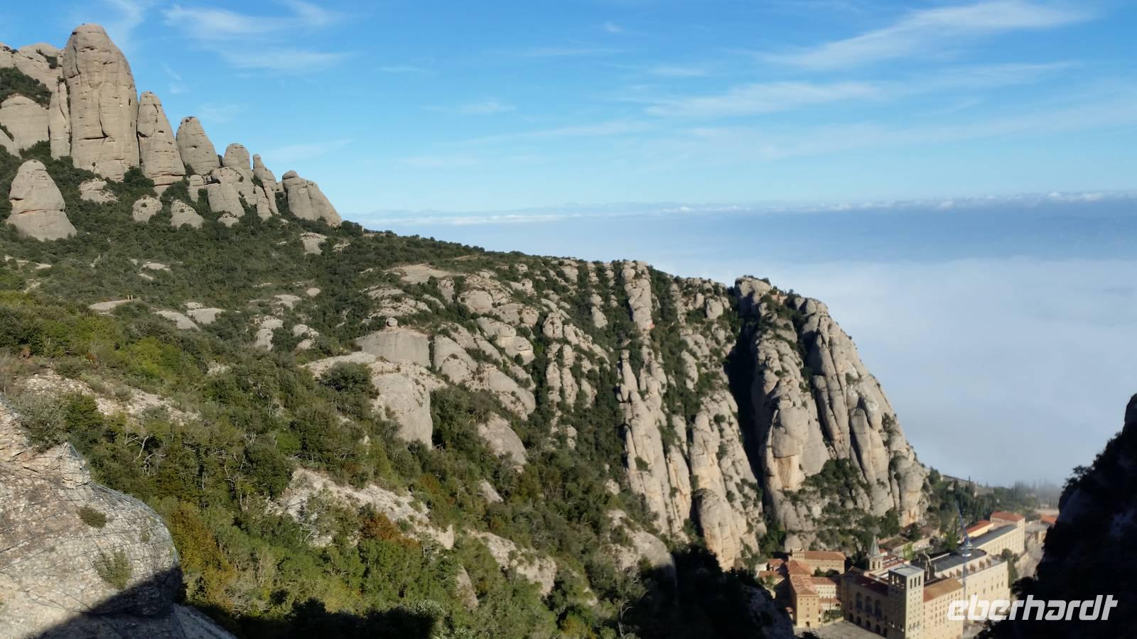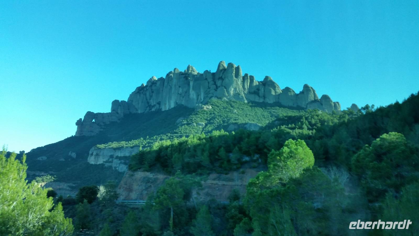 Unser Weg führte uns zunächst auf kurvigen Straßen hinauf zum berühmten Felsenkloster Montserrat. Man sagt sich von diesem Ort, dass er den Menschen inneren Frieden schenkt. Es fanden sich zwar auch zahlreiche Touristen und Geschäfte hier, aber man spürte sofort, eine besondere Stimmung als man von oben in das Tal hinabsah. Der Ausblick war einfach sagenhaft und versetze uns in Staunen. Wir besichtigten erstmal das Kloster von Montserrat. Die Benediktinerabtei liegt auf 721 m Höhe im gleichnamigen Gebirge und gilt als bedeutendes Zentrum katalanischer Kultur.