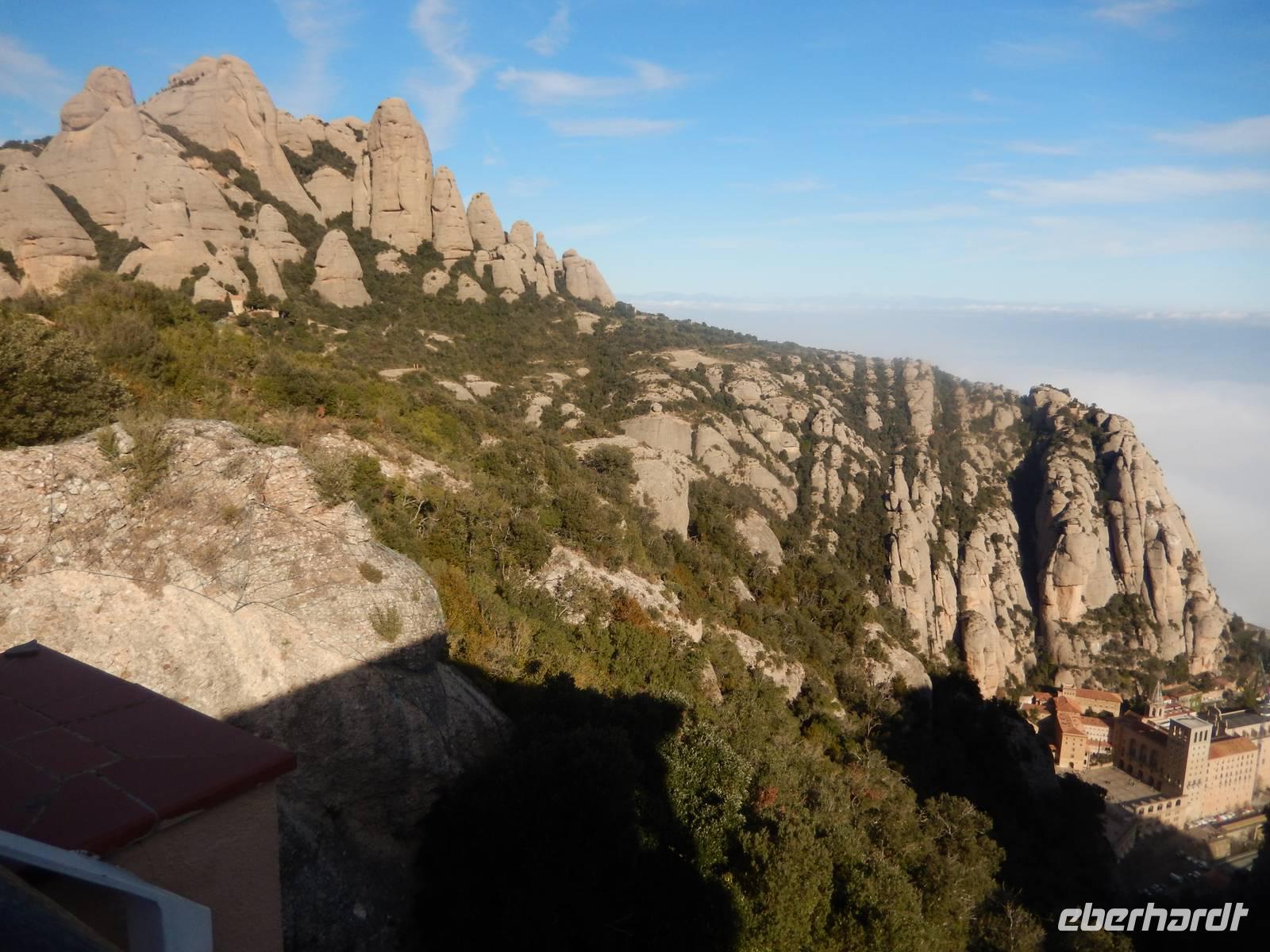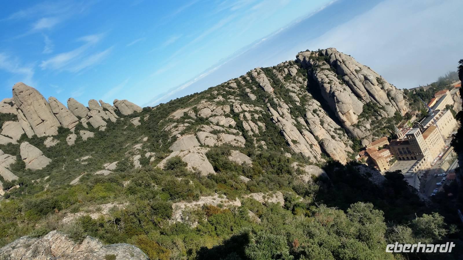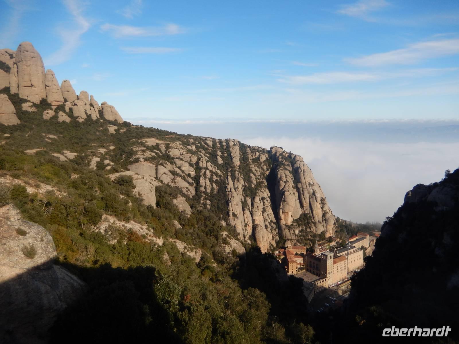 Unser Weg führte uns zunächst auf kurvigen Straßen hinauf zum berühmten Felsenkloster Montserrat. Man sagt sich von diesem Ort, dass er den Menschen inneren Frieden schenkt. Es fanden sich zwar auch zahlreiche Touristen und Geschäfte hier, aber man spürte sofort, eine besondere Stimmung als man von oben in das Tal hinabsah. Der Ausblick war einfach sagenhaft und versetze uns in Staunen. Wir besichtigten erstmal das Kloster von Montserrat. Die Benediktinerabtei liegt auf 721 m Höhe im gleichnamigen Gebirge und gilt als bedeutendes Zentrum katalanischer Kultur.