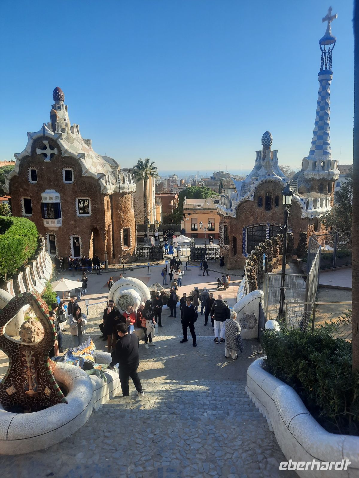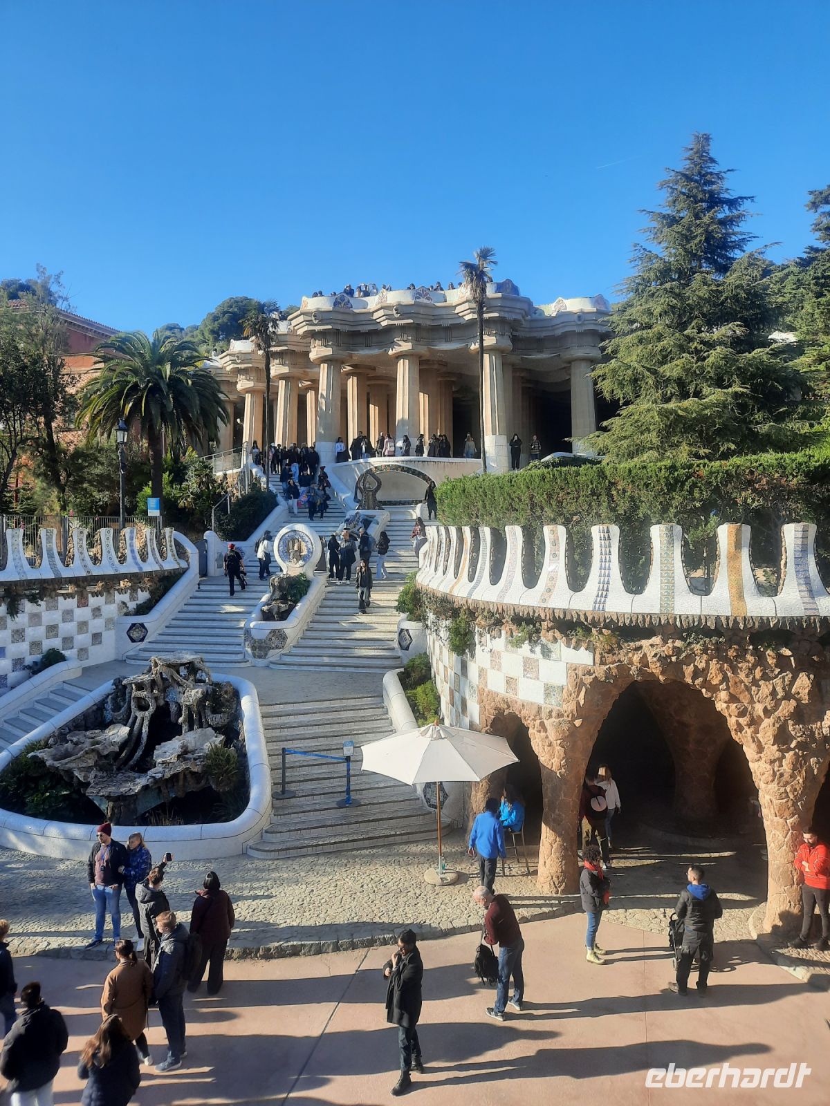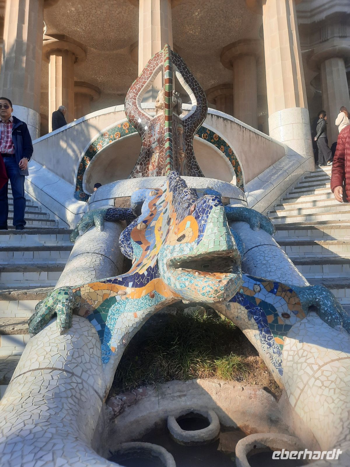 Nach einem späten Frühstück ging es mit unserer Reiseleitung zunächst mit dem Bus zum Park Güell. Bei bestem Wetter hat uns Vanessa die schönen Kunstwerke des Architekten Antonio Gaudí gezeigt. Der Park ist sehr schön und lädt zum Verweilen ein.