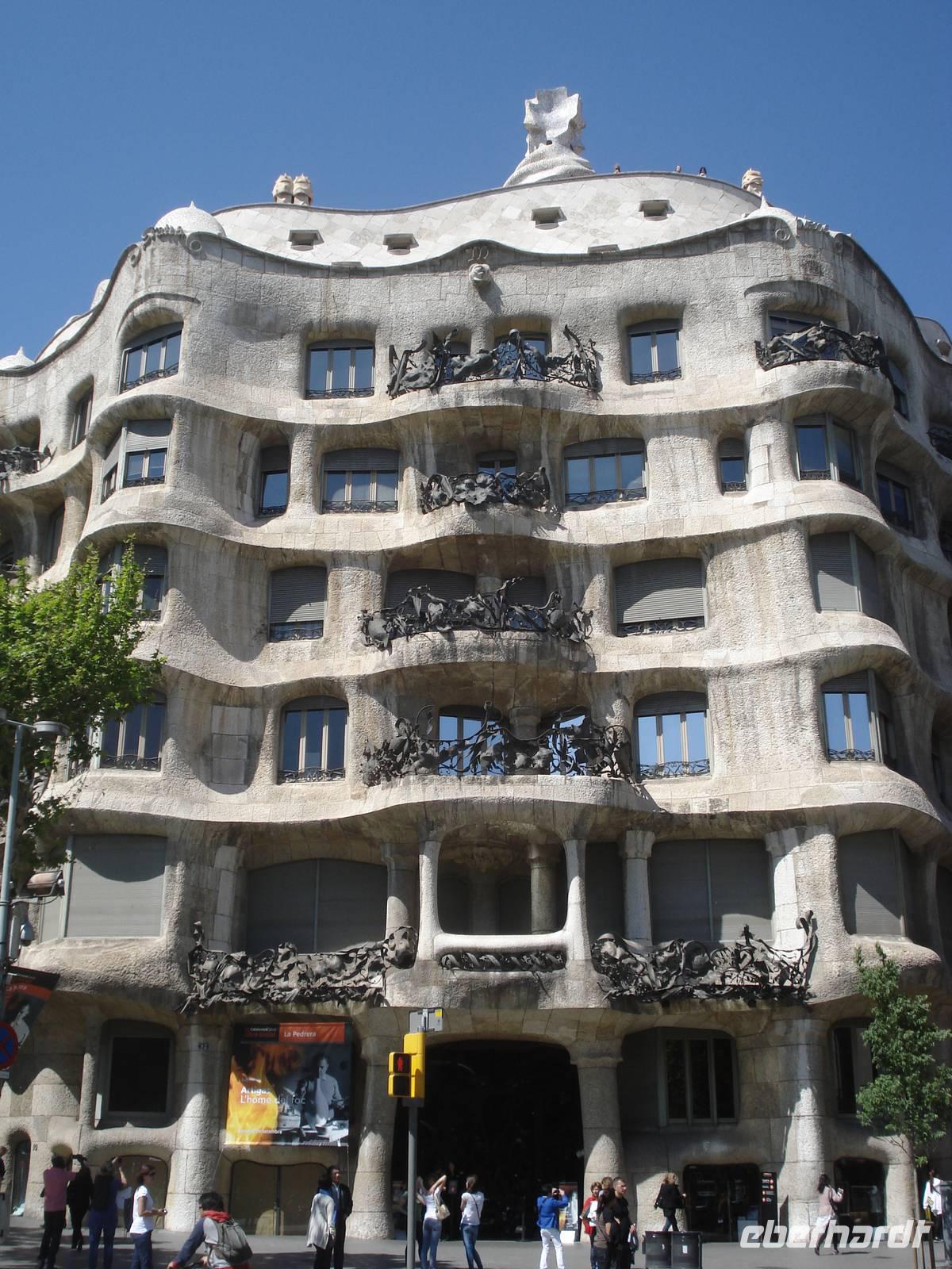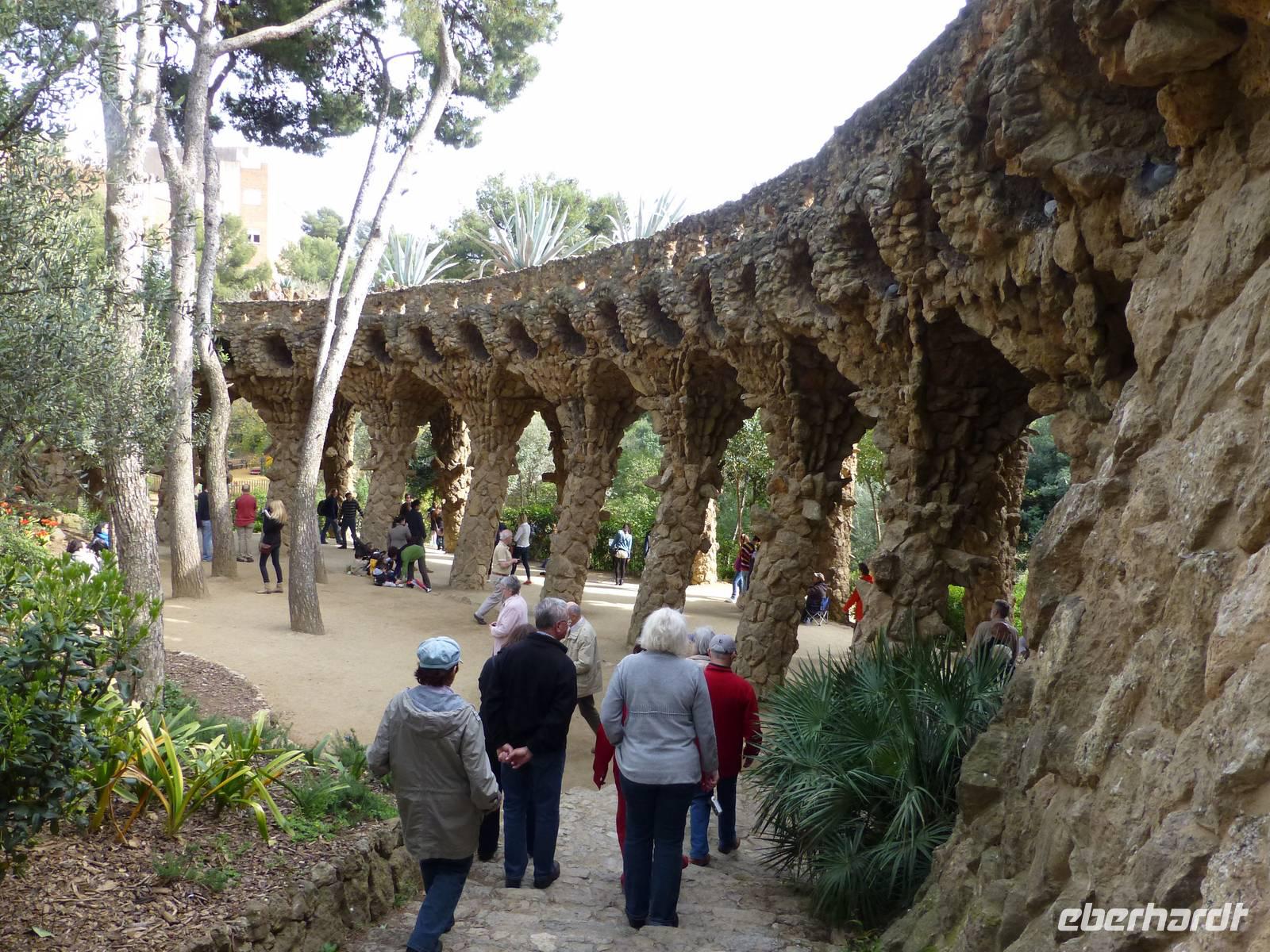 Am Spanischen Platz nahmen wir unseren Reiseleiter Ingo auf. Die Stadtrundfahrt führte uns zunächst auf den Berg Montjuic mit den Olympischen Stätten, dem Sendemast von S. Calatrava sowie dem „Spanischen Dorf". Vom 213 m hohen „Berg der Juden" genossen wir einen hervorragenden Ausblick auf die Millionenstadt. Durch die Stadt führte uns die Rundfahrt zum Templo de la Sagrada Familia (Kirche der Heiligen Familie), ein unvollendeter monumentaler Kirchenbau im neukatalanischen Stil. Die „Kirche der Armen" gilt als Hauptwerk des katalanischen Architekten Antoni Gaudi. Anschließend sahen wir weitere Gebäude von Antoni Gaudi, u.a. das Casa Battlo sowie die Casa Mila (im Volksmund „La Pedrera" = Steinbruch). Ein kleiner Spaziergang durch den Park Güell rundete die Stadtbesichtigung ab. Das fehlgeschlagene Projekt einer Gartenstandt wurde zu einem symbolträchtigen öffentlichen Park. Gaudi orientierte sich bei der Planung des Parks am Jardin de la Fontaine von Mimes und auch an den griechischen und ägyptischen Tempeln. Der lebendig gestaltete Eingang mit den exotischen Formen trennt die graue und weltliche Stadt von der Wohnsiedlung, die Gaudi als idealen Lebensraum erachtete.
