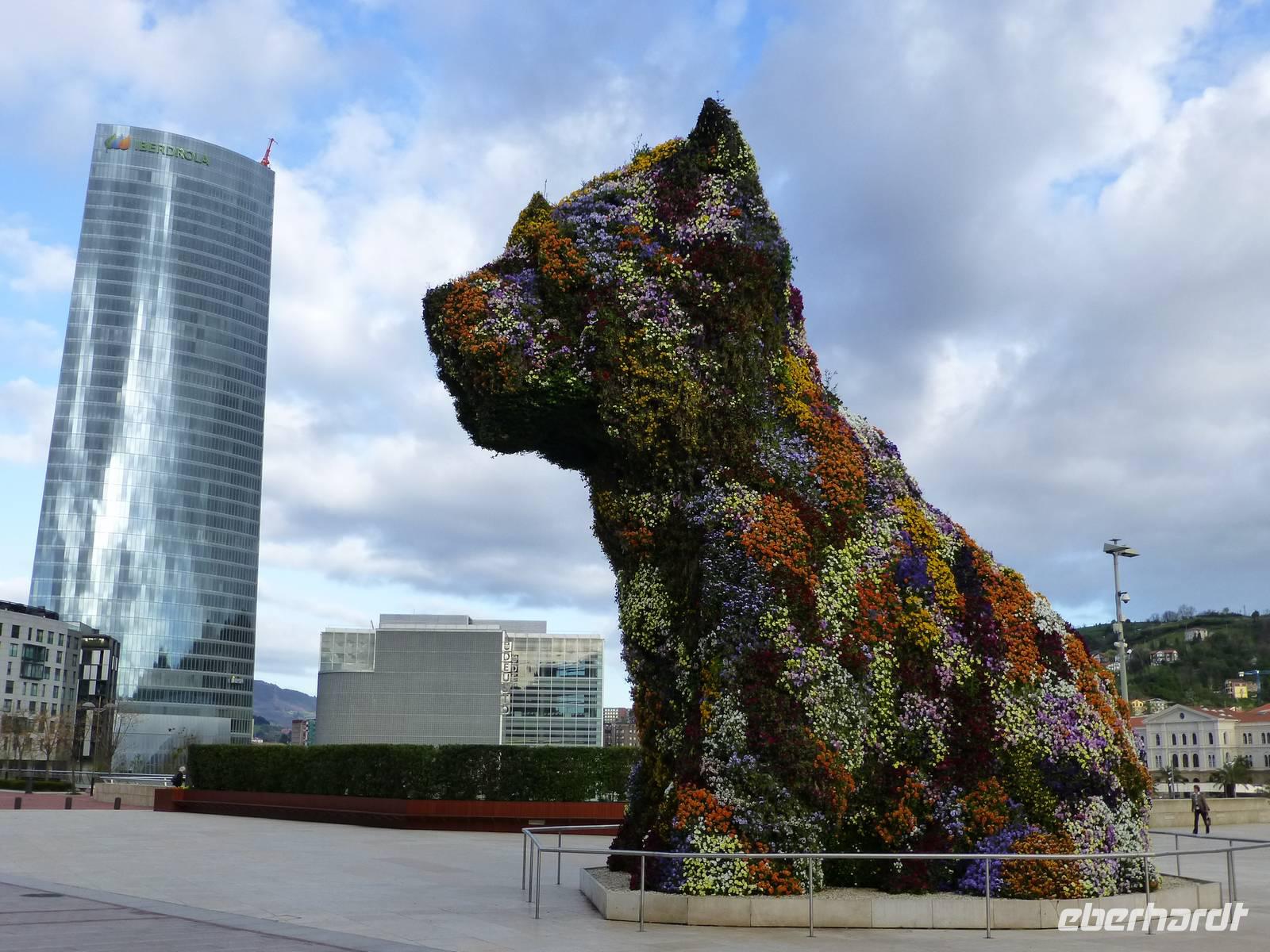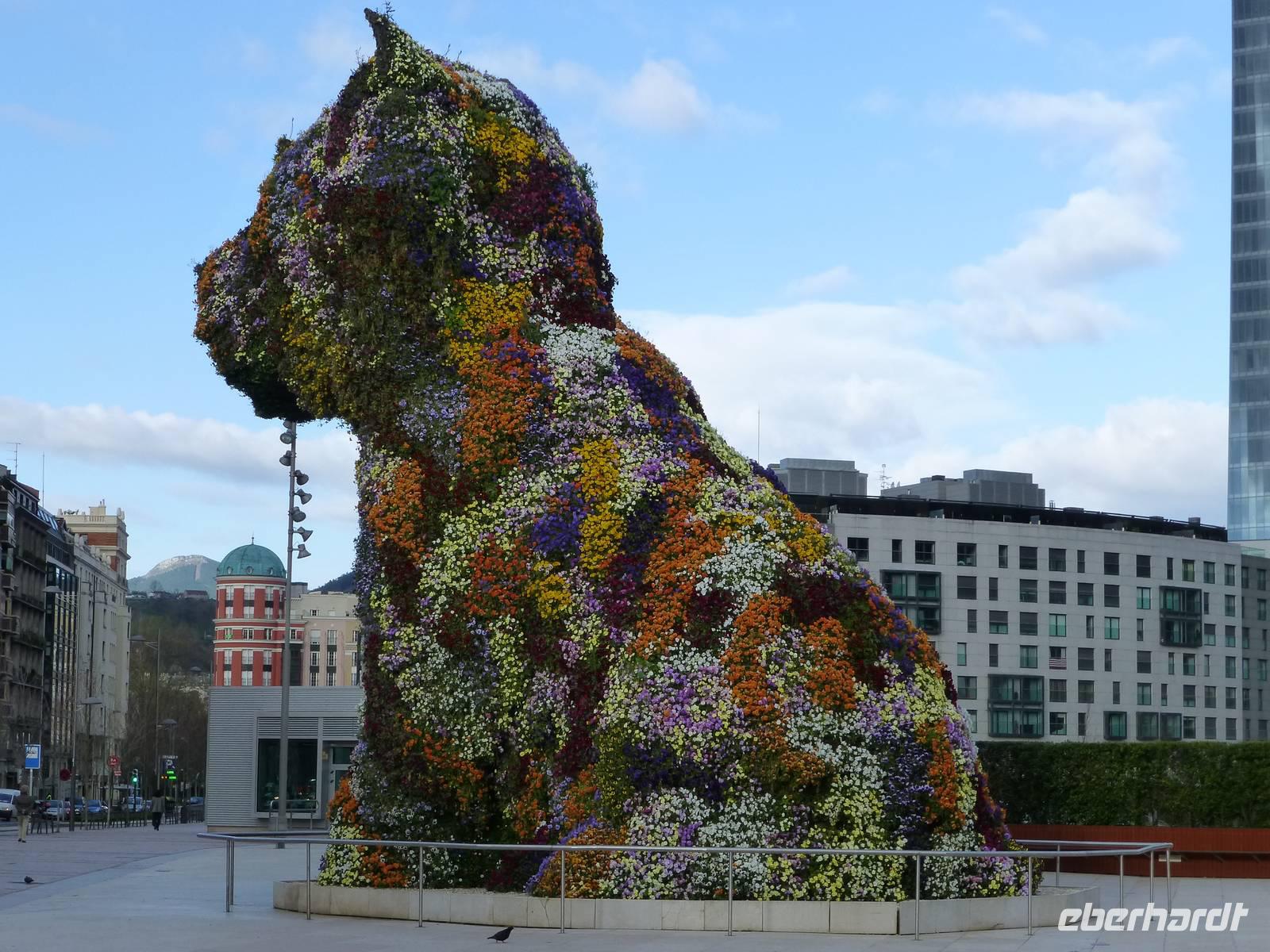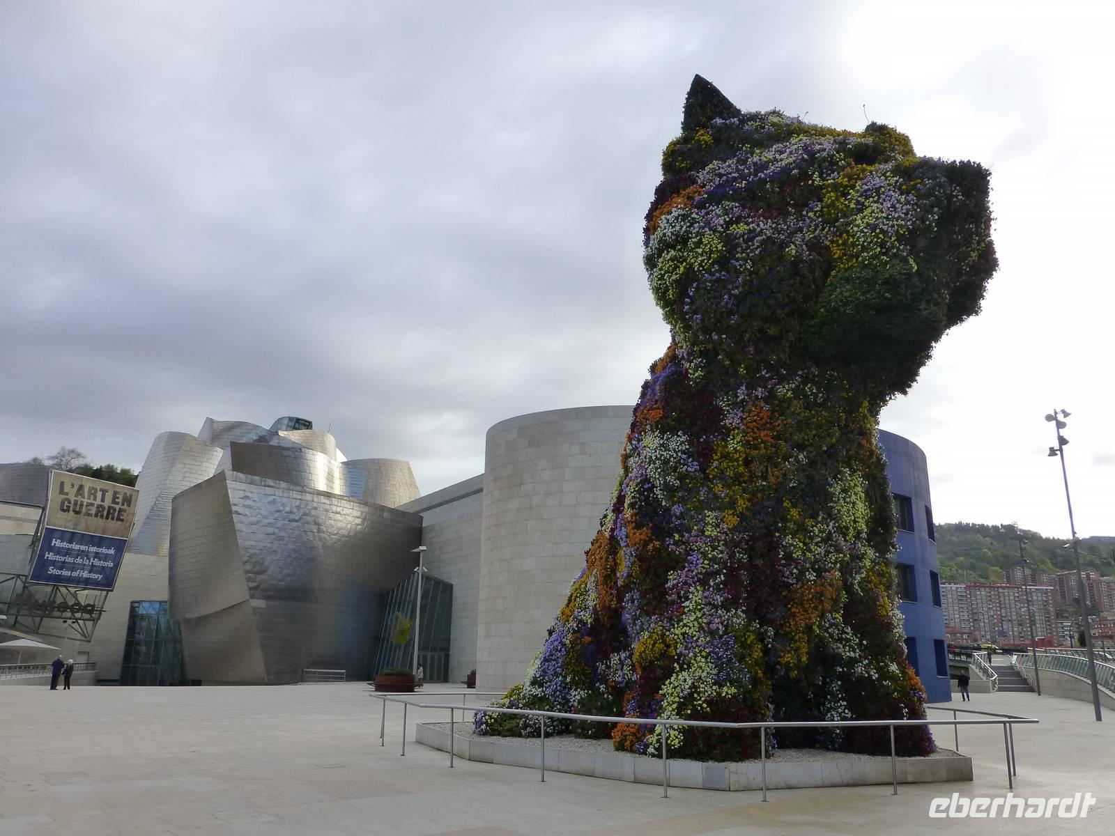 Gestärkt durch das reichhaltige Frühstücksbuffet besichtigten wir am Vormittag das Guggenheim Museum. Das Guggenheim Bilbao rief eine der tiefgreifendsten Umwandlungen hervor, die eine europäische Stadt je erlebte. Nach dem Zusammenbruch der Industrie von Bilbao in den 80er Jahren setzten sich die baskischen Verwaltungsorgane mit der Guggenheim Foundation in Verbindung. Seit der Eröffnung 1997 hat sich Frank O. Gehrys einzigartiges Meisterwerk zu einem neuen Anziehungspunkt der Stadt entwickelt. Nicht nur von außen auch von innen faszinierte uns dieses Gebäude.