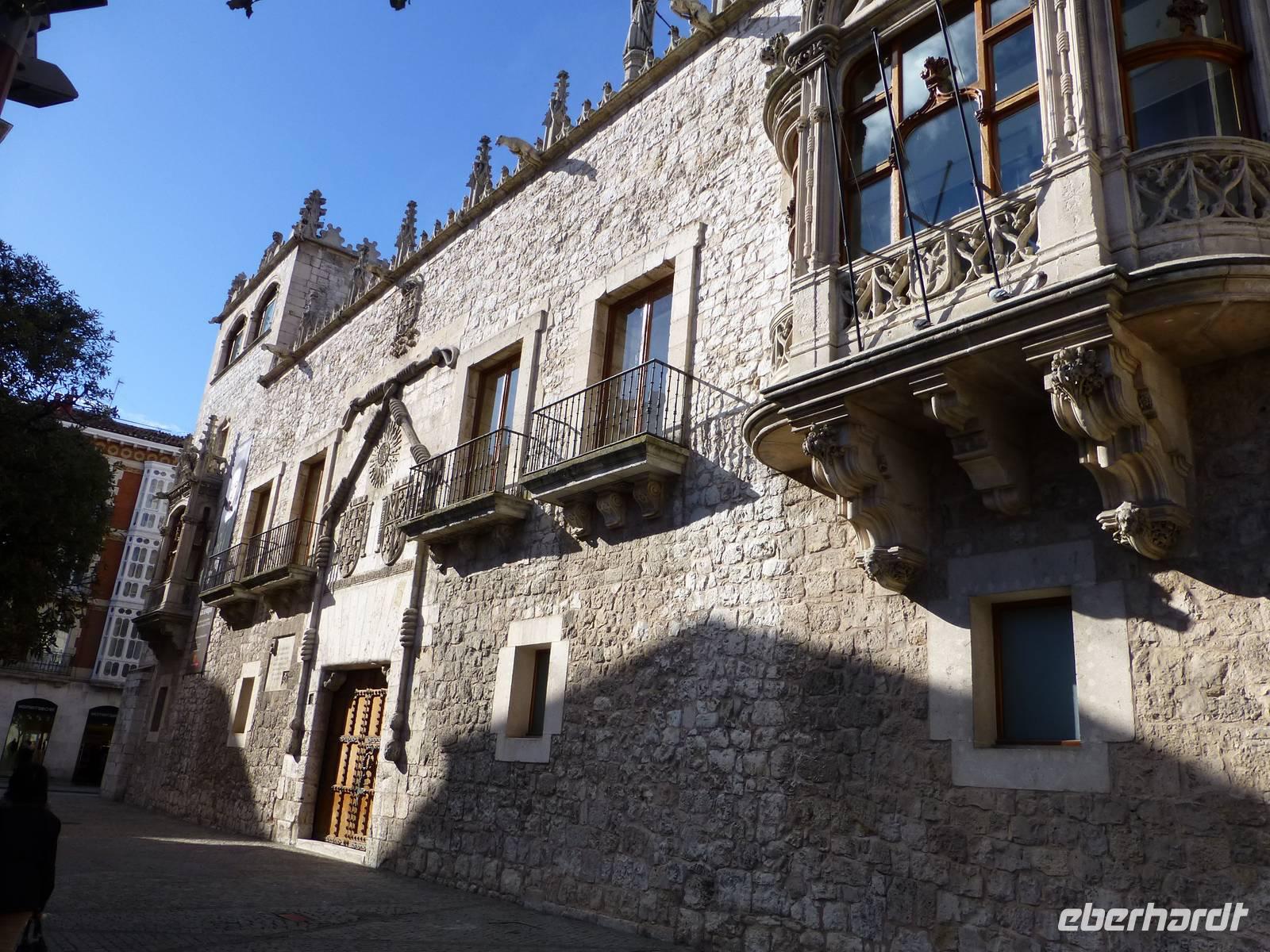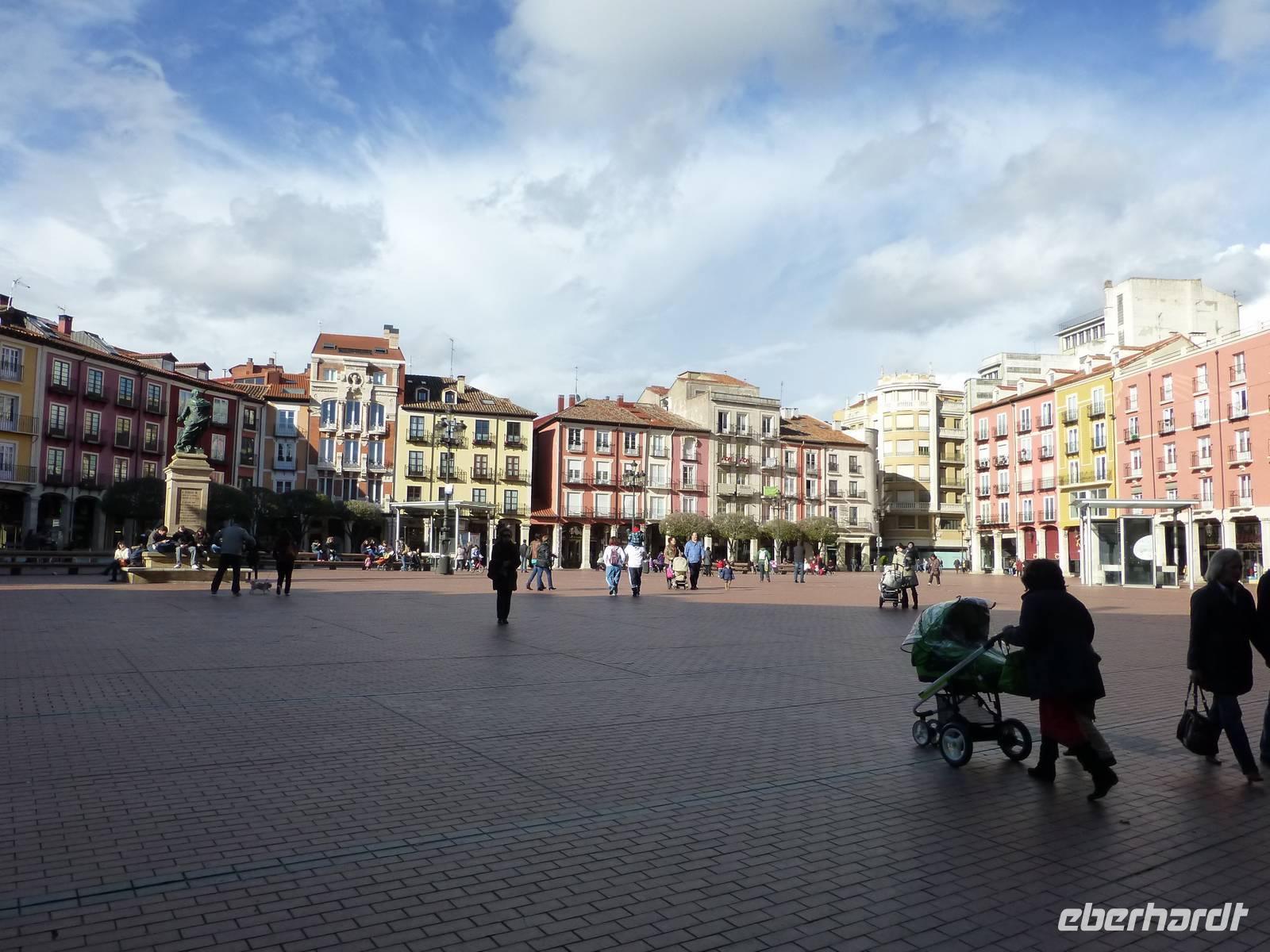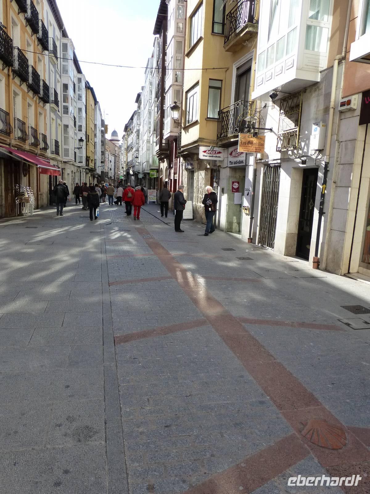 Anschließend setzten wir unsere Reise nach Burgos inmitten der nordkastillischen Hochebene fort. Nach dem Zimmerbezug in unserem Hotel Corona di Castilla stand die Stadtbesichtigung auf dem Programm. Den Beginn der Promenade Paseo del Espolon markierte der aus dem 14. Jahrhundert stammende Arco de Santa Maria. Hier wurden wir bereits von unserer Stadtführerin Merches erwartet. Zuerst besichtigten wir die berühmte Kathedrale von Burgos, eine der eindrucksvollsten gotischen Kirchen. Wir bewunderten den reich vergoldeten Hochaltar in der Capilla Mayor, die „Papamoscas-Uhr" (Fliegenfänger), die Goldenen Treppe, die im reichsten platereskem Stil ausgestattete Condestable Kapelle sowie den Kreuzgang. Nach diesem überwältigendem Eindruck erkundeten wir das Stadtzentrum. Entlang der Flaniermeile bummelten wir zum Casa del Cordón, in dem Christoph Kolumbus nach seiner Rückkehr von seiner zweiten Reise in die Neue Welt empfangen wurde. Anschließend erreichten wir den arkadengesäumten Plaza Mayor, den Mittelpunkt der Stadt. Dann begaben wir uns ca. 500 m auf den Jakobsweg. Nach der Besichtigung nutzen einige noch die Gelegenheit, die Innenstadt auf eigene Faust zu erkunden. Zum Abendessen trafen wir uns alle in unserem Zentral gelegenen Hotel wieder.