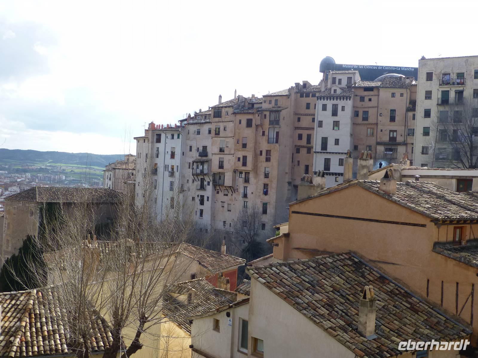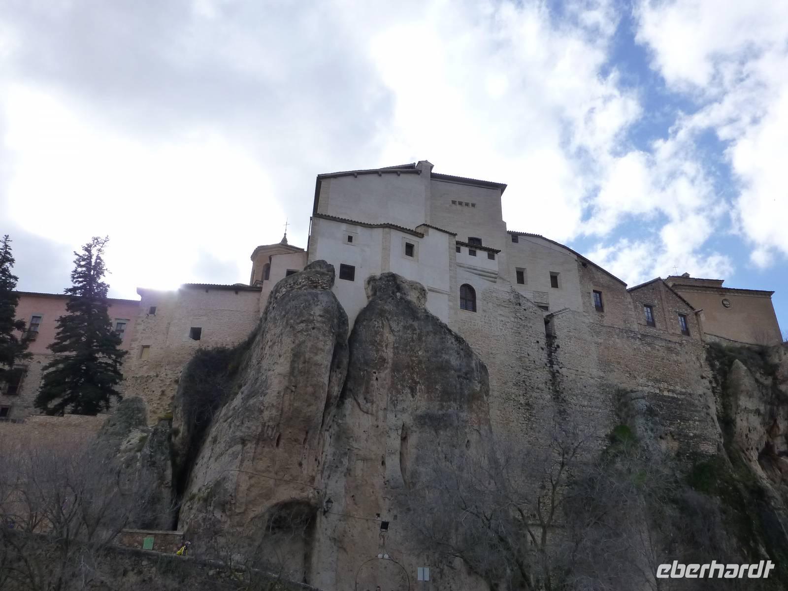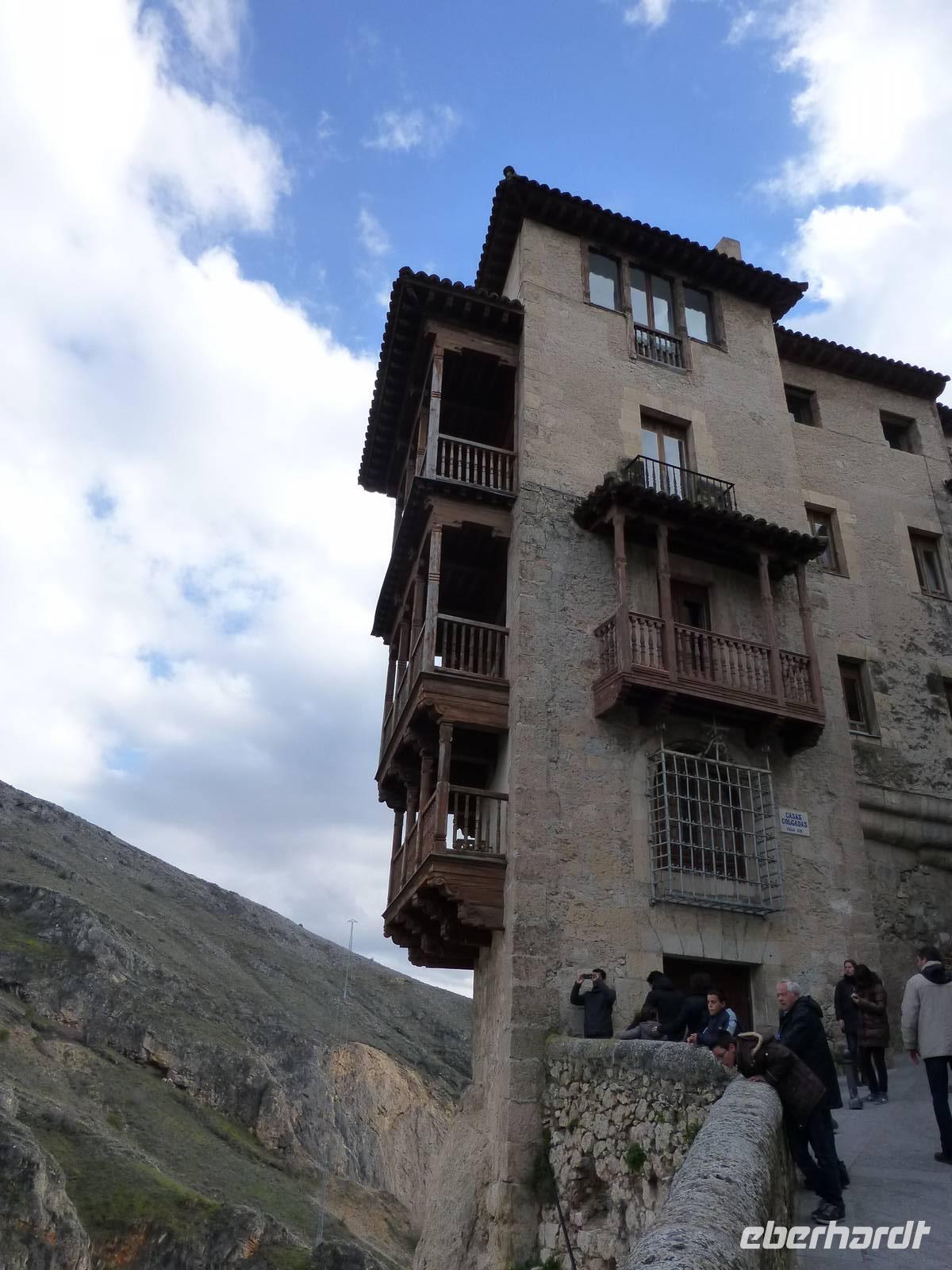 Am Vormittag statteten wir dem Atocha Bahnhof noch einen Besuch ab. Im Anschluss fuhren wir weiter nach Cuenca in 1000 m Meereshöhe. Cuenca liegt überaus schön auf den steilen Felsen der Serrania de Cuenca über den tiefen Tälern des Rio Jucar und des Rio Huecar. Sie ist eine der malerischsten spanischen Städte und berühmt für die „hängenden Häuser" („Casas Colgadas"). Nach dem Zimmerbezug in unserem Hotel Alfonso VIII. trafen wir uns mit unserem Stadtführer Pablo. Er brachte uns seine Heimatstadt auf sehr unkomplizierte Art und Weise näher. Wir fuhren durch die wunderschöne Huecarschlucht und spazierten anschließend durch die Altstadt. Während der Stadtführung froren wir sehr, doch wir ließen uns nicht beirren und folgten Pablo. Er zeigte uns auch die wunderschöne Kirche. Am Torre Mangana, dem Wachturm der einstigen arabischen Festung beendeten wir unsere Führung. Pablo überraschte uns mit einigen Spezialitäten von Cuenca in seinem Geschäft. Ein kurzer Spaziergang brachte uns zurück an unser Hotel. Während des Abendessen konnten wir von der Terrasse des Hotels einen schönen Blick auf das beleuchtete Cuenca genießen.