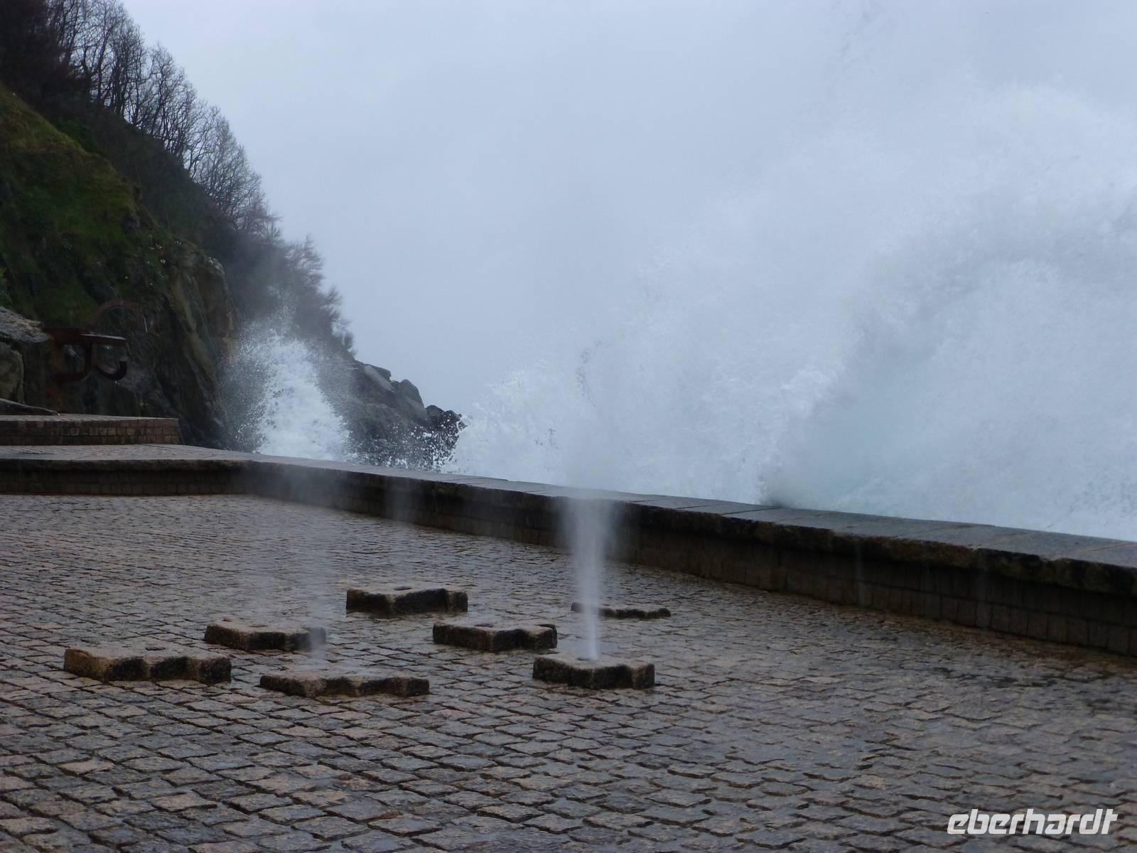Am Fuße des Monte Igueldo befindet sich das Wahrzeichen von San Sebastian das Kunstwerk „El Peine de los Veinte" (Der Kamm der Winde). Wuchtige gekrümmte Arme aus schwerem Metall, die aus dem dunklen Gestein zu wachsen scheinen, verklammern Felsküste und Himmel über dem Horizont des Meeres. Die Brandung toste an die Mauern. Ein Schauspiel, das bei schlechtem Wetter sehr beeindruckend ist. Der „Kamm der Winde" ist ein Werk des zeitgenössischen Künstlers Eduardo Chillida.