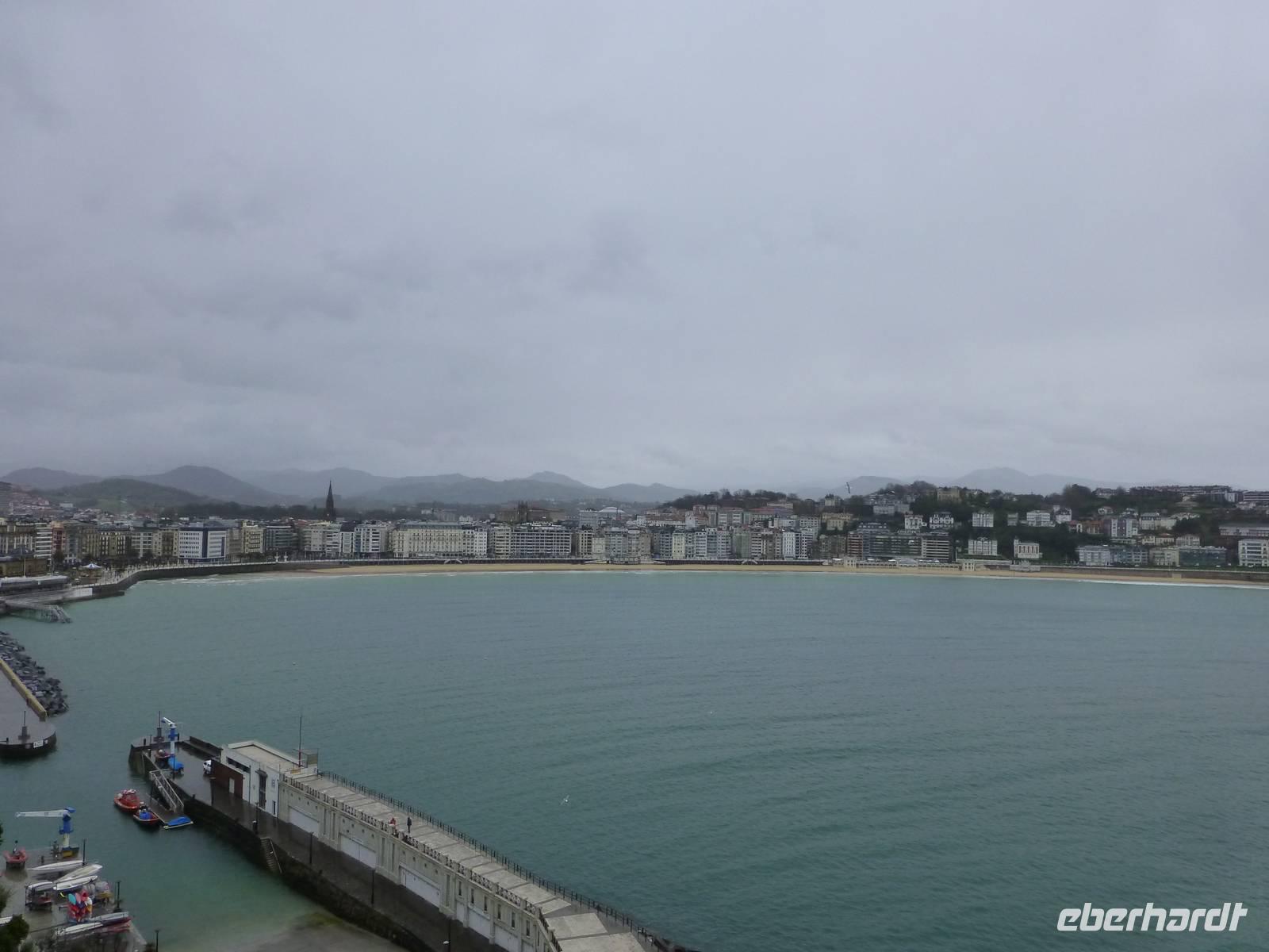 Nach einem reichhaltigen Frühstücksbuffet setzen wir unsere Reise in den Süden fort. An Orléans vorbei erreichten wir die Hauptstadt der Tourraine Tours. Wir überquerten den längsten Fluss Frankreichs, die Loire und setzten die Fahrt über Poitiers und Saintes nach Bordeaux fort. Die Sonne zeigte sich jetzt öfters und das Thermometer hielt sich in den Plusbereichen. Nach Bordeaux durchfuhren wir die großen Kiefernwälder der Gascogne und erblickten schon bald die Westpyrenäen. Die gute Sicht erlaubte uns das Panorama auf den Berg La Rhune, den Heiligen Berg der Basken sowie die französischen und spanischen Pyrenäen. Nach der französischen - spanischen Grenzen erreichten wir sehr bald unser heutiges Ziel, das Hotel Codina in Donostia - San Sebastian. Die kurze Freizeit bis zum Abendessen nutzten wir für einen ersten Eindruck der „Perle der Biskaya". In der abendlichen Sonne glänzte La Concha (die Muschel), die halbkreisförmige Strandbucht umgeben von dem Monte Urgull sowie dem Igueldo in einem besonderen Licht. Nach diesem ersten und sehr beeindruckenden Anblick freuten wir uns auf das Abendessen in einem typischen Restaurant. Zu unserem Abendessen genossen wir nicht nur den lokalen Wein, sondern vor allem den Sidra (Apfelwein). Bei der besonderen Art des Einschenkens wird der Sidra in einem möglichst weiten und hohen Bogen ins Glas gegossen, um den Wein zum Schäumen zu bringen. Einige probierten selbst ihr Glas zu füllen. Wir verlebten einen sehr angenehmen Abend und genossen die Gastfreundlichkeit der Basken.