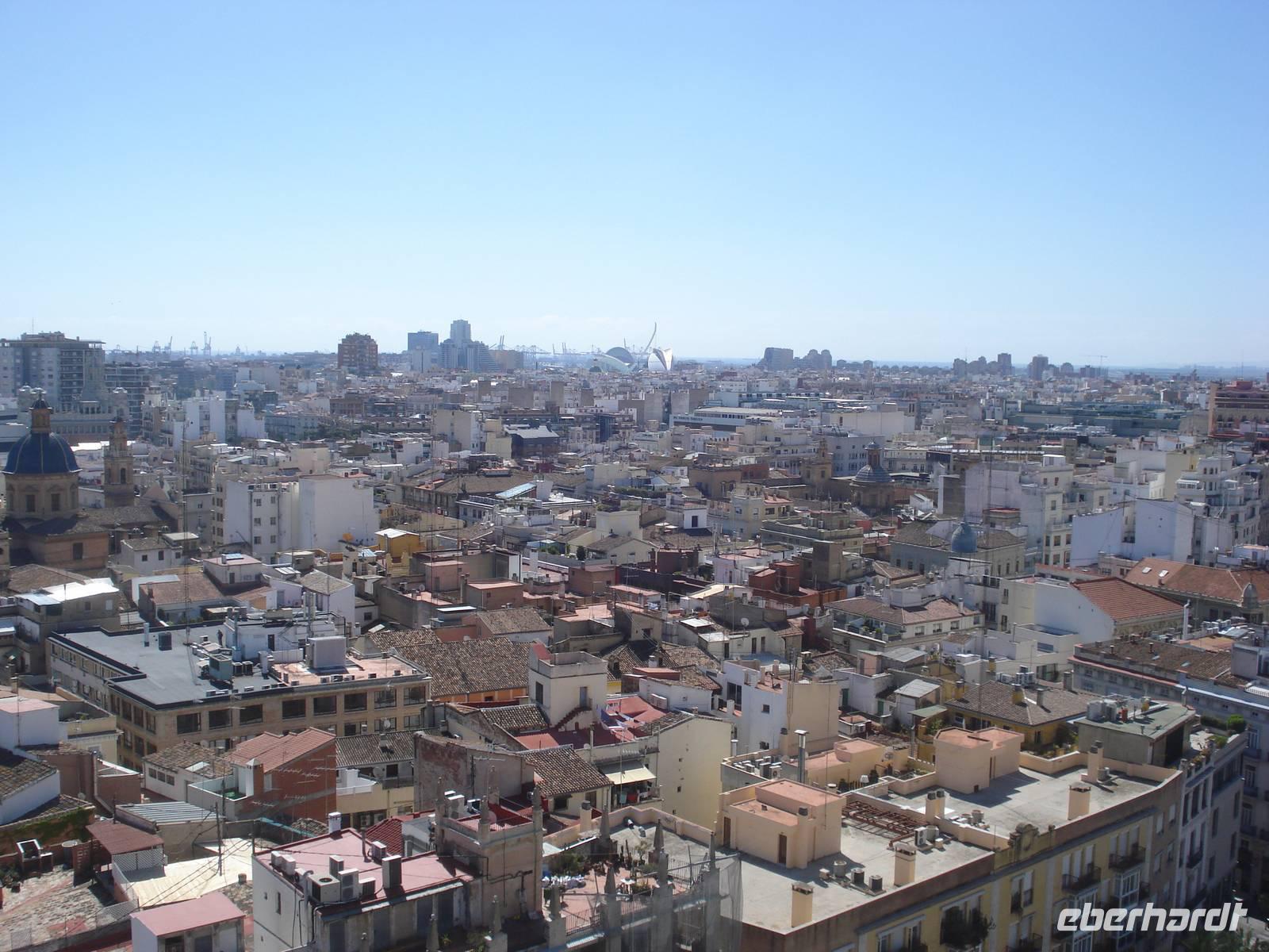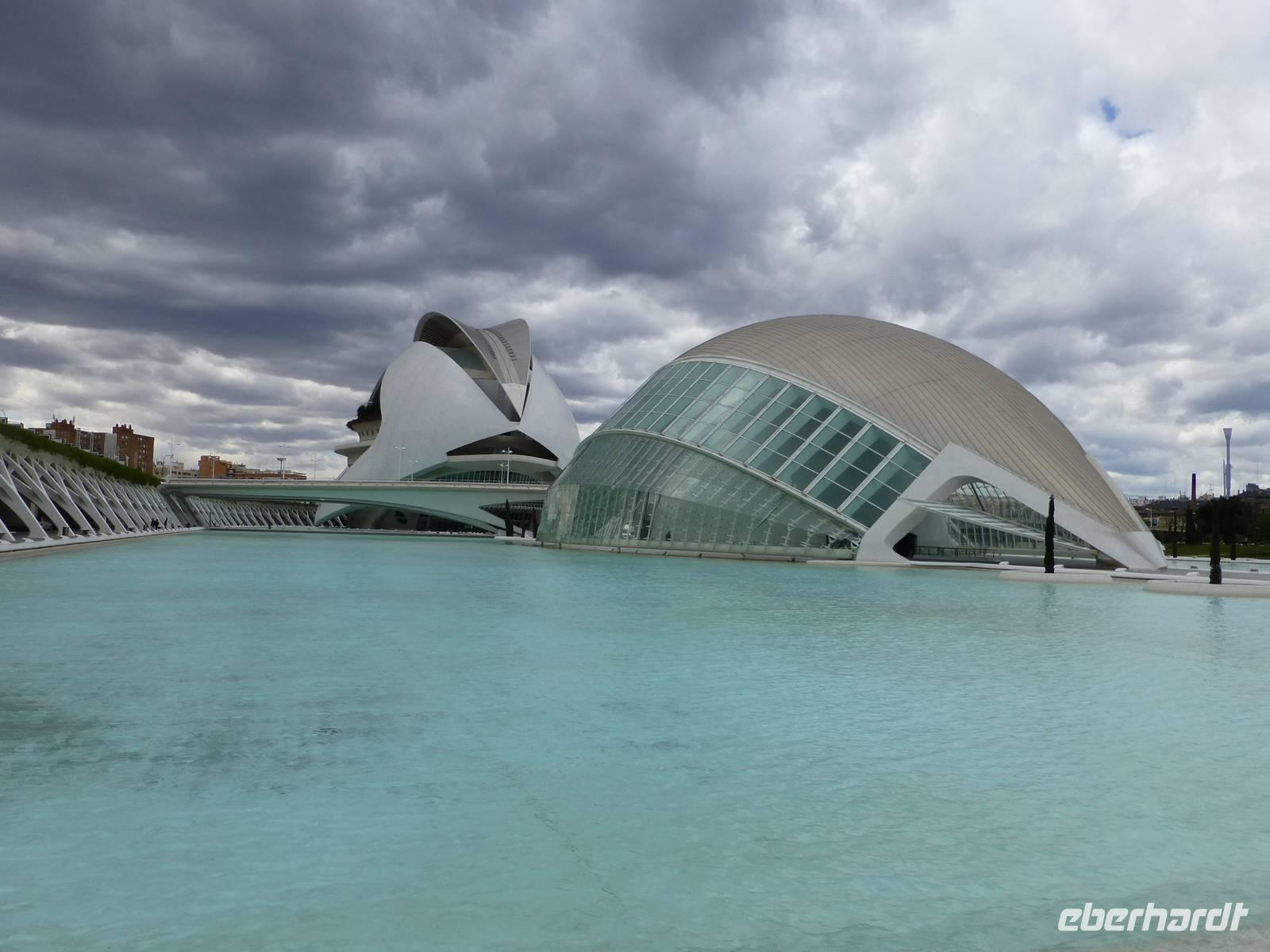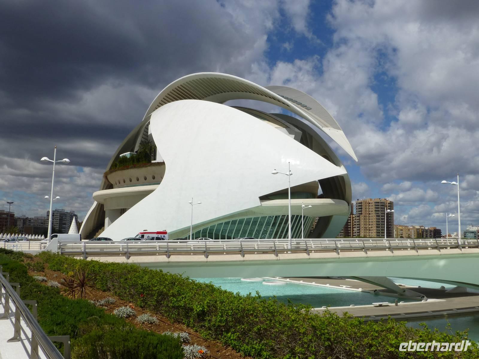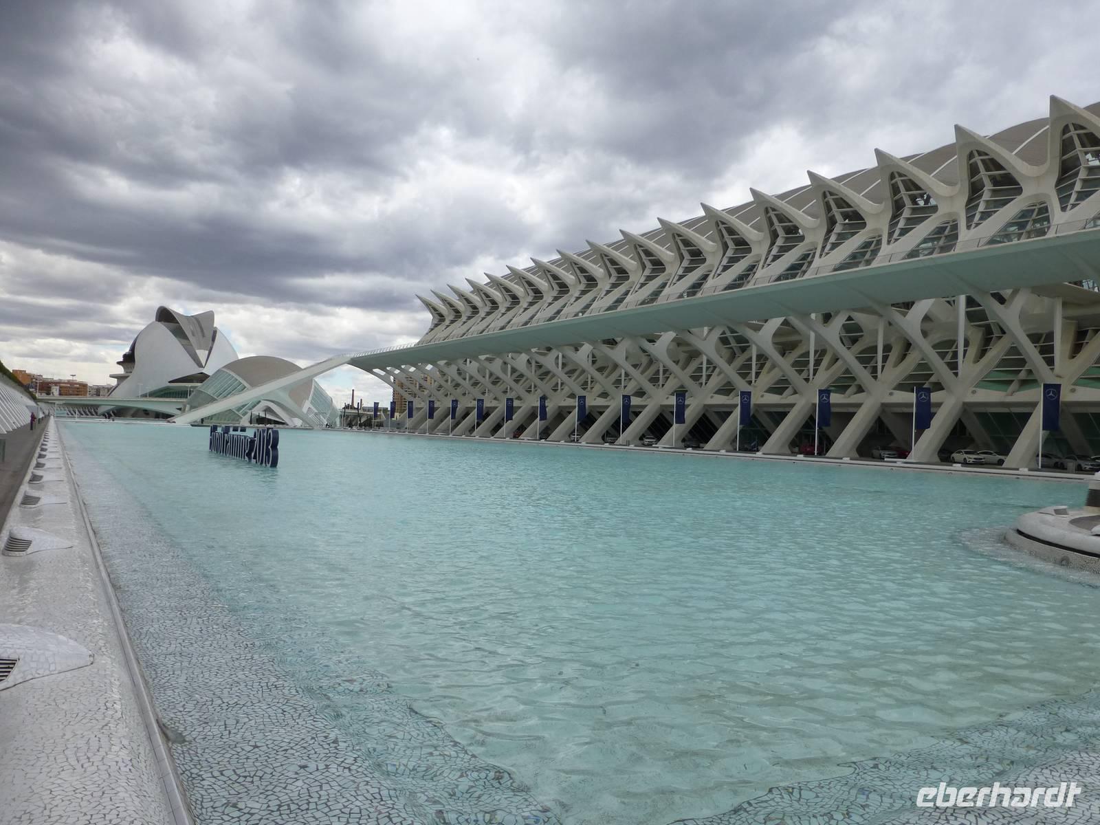 Vor unserer Stadtführung erkundeten wir die drittgrößte Stadt Spanien auf eigene Faust. In der Markthalle oder auf dem Plaza de Virgen stärkten wir uns zur Mittagspause bevor unsere örtliche Stadtführerin Angela uns dann alle Sehenswürdigkeiten der Stadt zeigte. Wir begannen mit der Rundfahrt und legten unseren ersten Stopp im neuen Valencia von Santiago Calatrava, einem Sohn der Stadt, ein. Der Fluß Turia zerstörte 1957 bei einer Überschwemmung einen Teil der Stadt. Auf dieser Fläche wurde die Stadt der Wissenschaften und Künste neu konzipiert. Es entstanden ein neues Opernhaus, ein Planetarium mit Kino, das Wissenschaftsmuseum sowie ein Aquarium. Mit diesem Projekt wurde eine Verbindung zwischen dem Hafen und der Altstadt geschaffen.