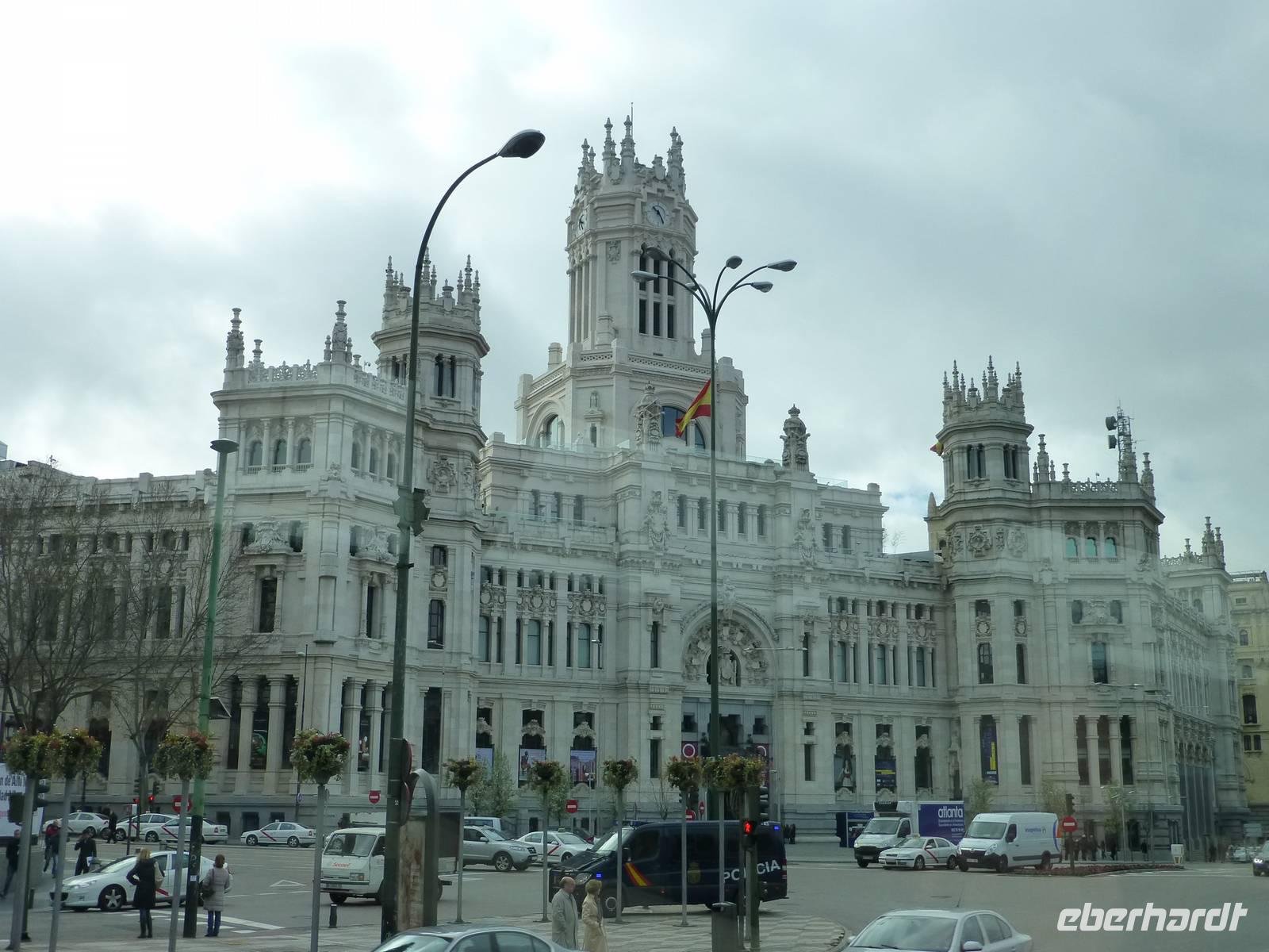 Bei einer Stadtrundfahrt mit unserer Reiseleiterin Isabel lernten wir die spanische Metropole kennen. Entlang der prachtvollen Nord-Süd-Achse entdeckten wir u.a. den Kybeles Brunnen, das monumentale Postamt sowie die zahlreichen Museen (Prado, Sammlung Thyssen - Bomemizsa). Über die Gran Via, die Hauptgeschäftsstraße und Inbegriff des großstädtischen Geistes Madrids erreichten wir den Plaza Espana. Diesen Platz als Schnittpunkt des habsburgischen und bourbonischen mit dem modernen Madrid prägt das Denkmal für Miguel de Cervantes mit den Figuren seiner Romanhelden Don Quijote und Sancho Pansa. Höhepunkt der Besichtigung war sicherlich der Besuch des Königlichen Schlosses. Über das imposante Treppenhaus erreichten wir die Räume von Karl III. sowie den prunkvollen Thronsaal. Gegenüber dem Königlichen Palast erhebt sich die Hauptkirche Madrids, die Nuestra Senora de Almudena. Am Königlichen Schloss begannen wir unseren gemeinsamen Stadtrundgang. Dieser führte uns durch die Gassen der Altstadt über das Rathaus zum Plaza Mayor. Die bemerkenswerte architektonische Geschlossenheit sowie dem Reiterstandbild von Philipps III. prägen den Hauptplatz der Altstadt. Am Platz erhebt sich die freskengeschmückte Casa Panaderia, ehemalige Verkaufsstelle für Brot. Unsere Reiseleiterin Isabel verabschiedete uns in die Mittagspause.