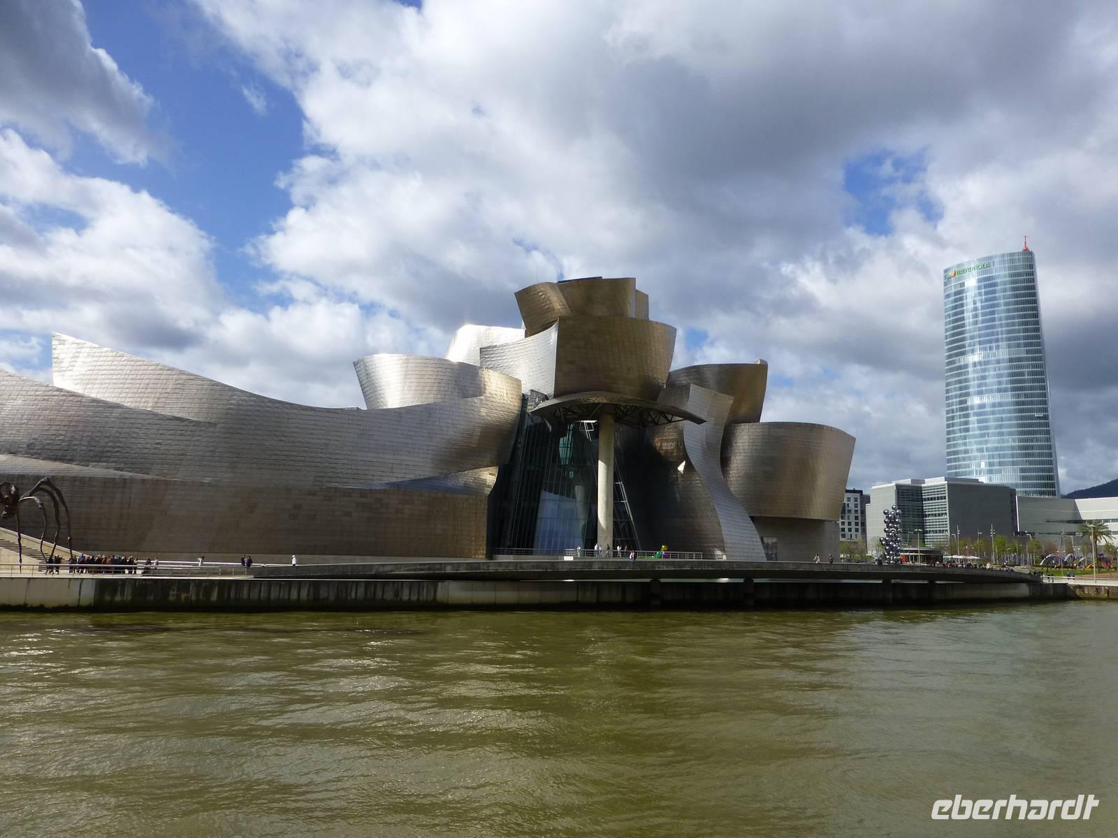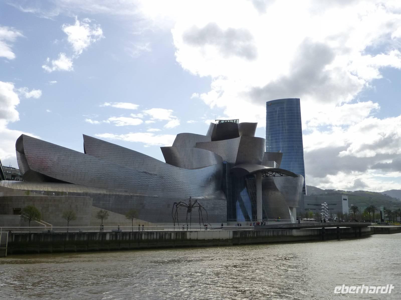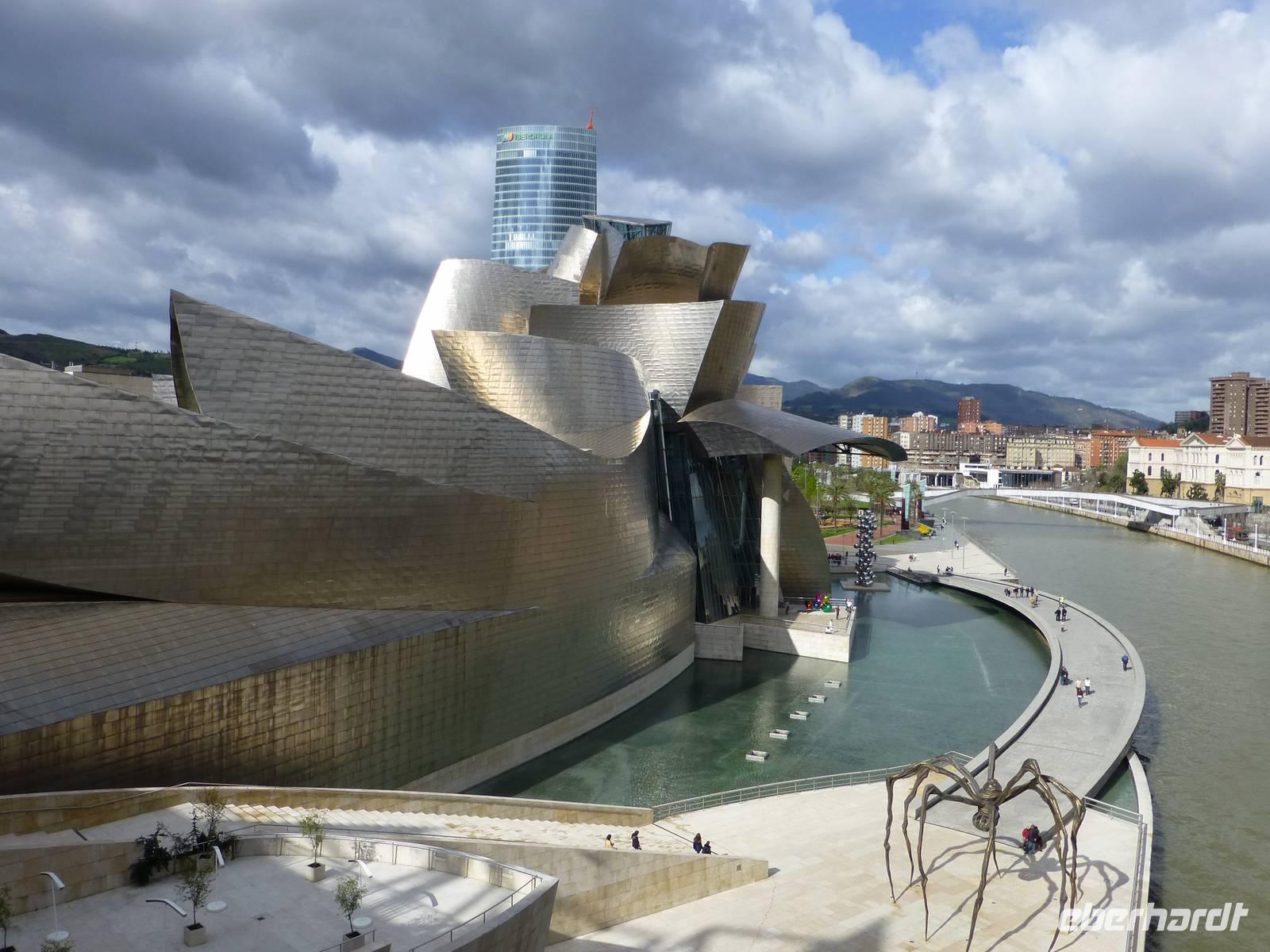 Gestärkt durch das reichhaltige Frühstücksbuffet besichtigten wir am Vormittag das Guggenheim Museum. Das Guggenheim Bilbao rief eine der tiefgreifendsten Umwandlungen hervor, die eine europäische Stadt je erlebte. Nach dem Zusammenbruch der Industrie von Bilbao in den 80er Jahren setzten sich die baskischen Verwaltungsorgane mit der Guggenheim Foundation in Verbindung. Seit der Eröffnung 1997 hat sich Frank O. Gehrys einzigartiges Meisterwerk zu einem neuen Anziehungspunkt der Stadt entwickelt. Nicht nur von außen auch von innen faszinierte uns dieses Gebäude.